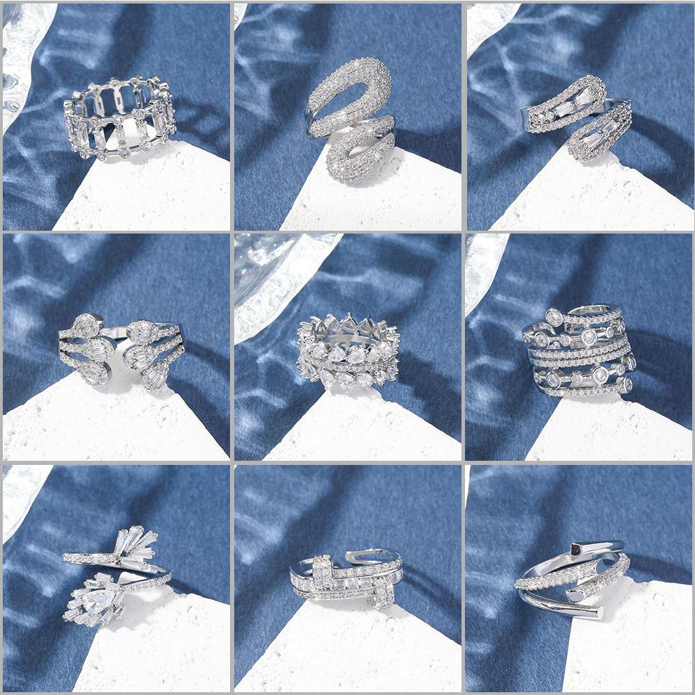 Anillo de Cobre con Circonita Incrustada de Venta Caliente Transfronteriza que No se Desvanece, Anillo Niche de Alta Gama para el Dedo Índice, Anillo Abierto Incrustado Moderno y Versátil