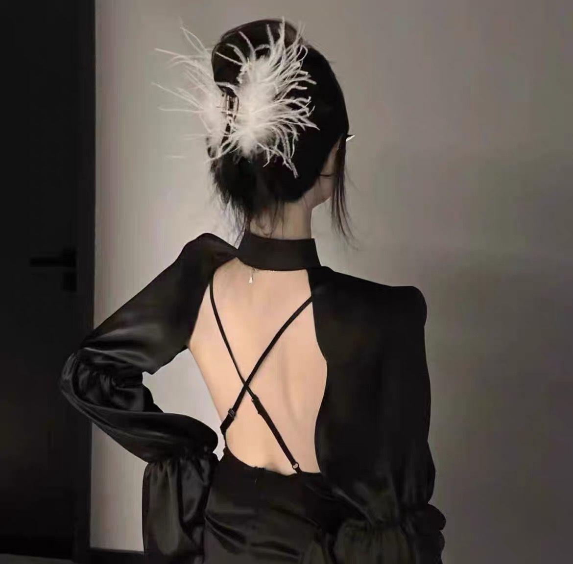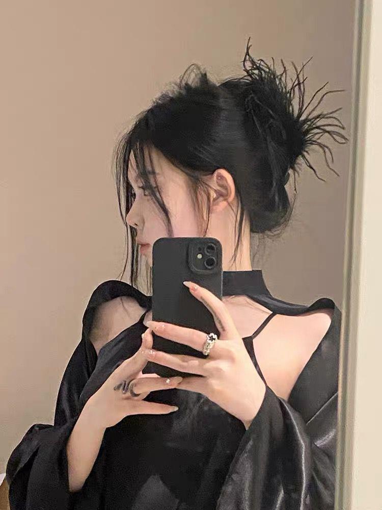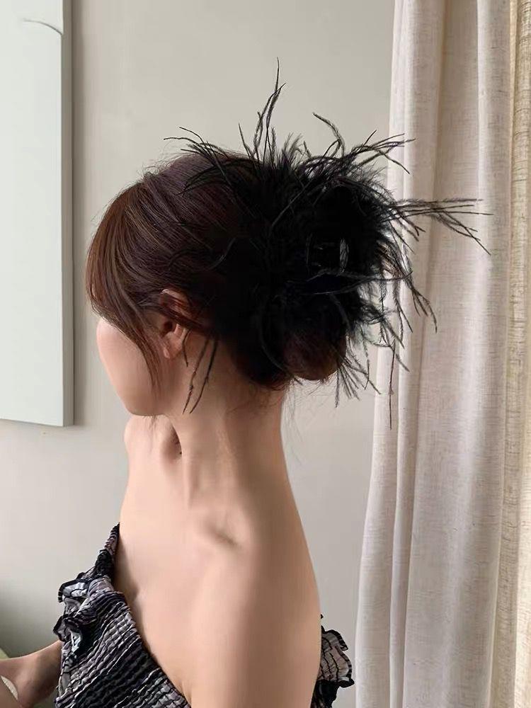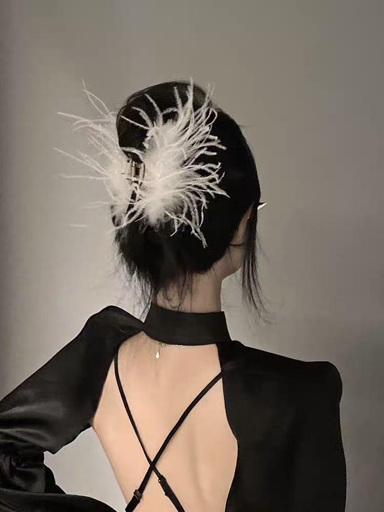 Pinza de pelo de avestruz puro con forma de tiburón, súper hada, alta sensación, pinza para el pelo con forma de pluma, horquilla para la parte trasera de la cabeza, tocado femenino