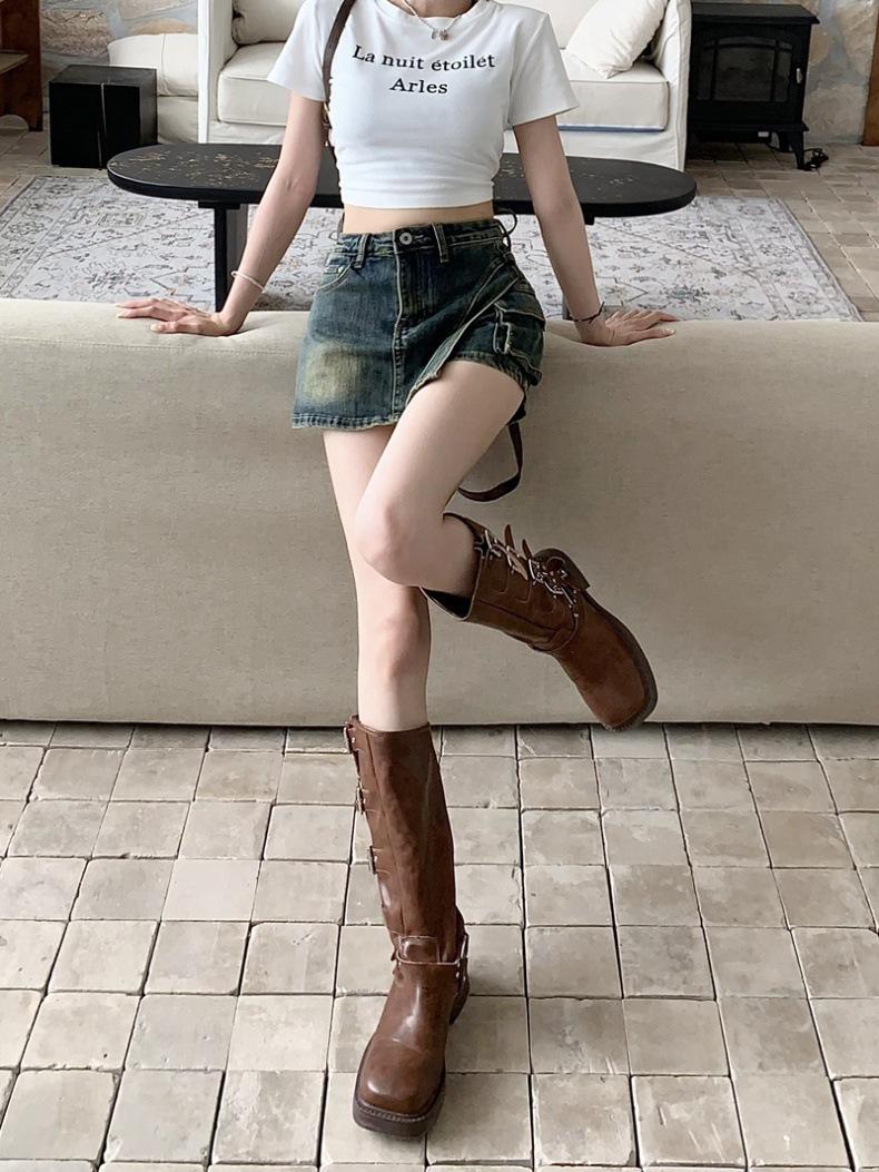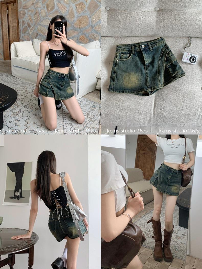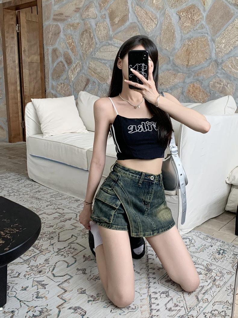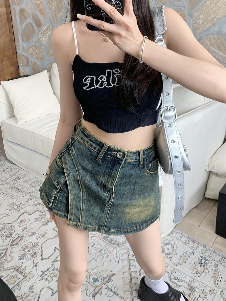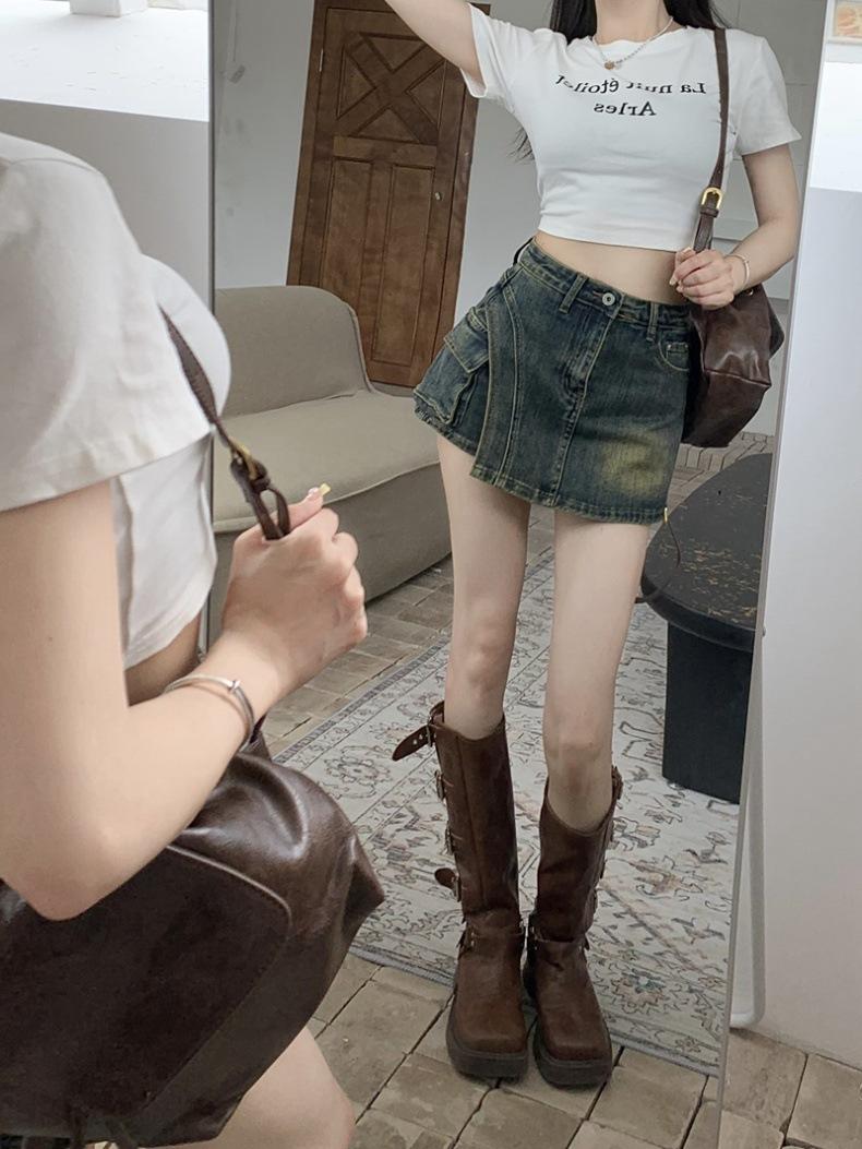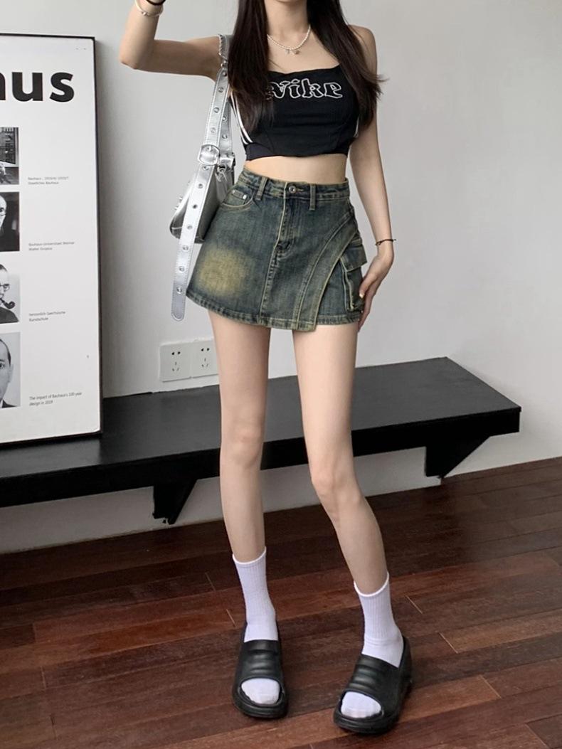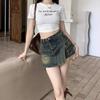 Falda vaquera vintage Spice Girl, falda a la cadera para mujer, estilo americano, cintura alta, corta, línea A, falda antiluz para mujer
