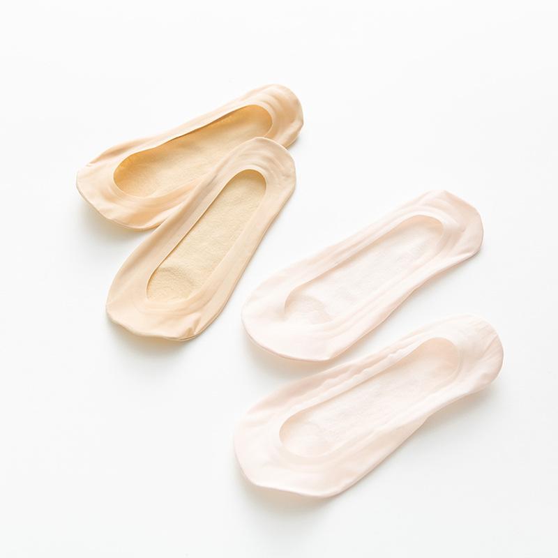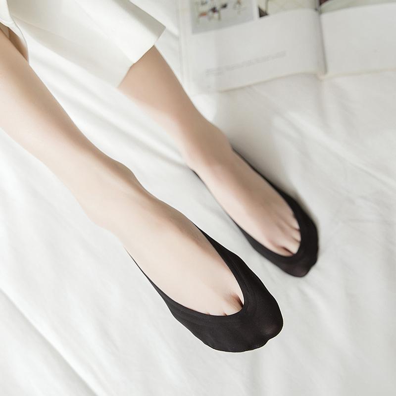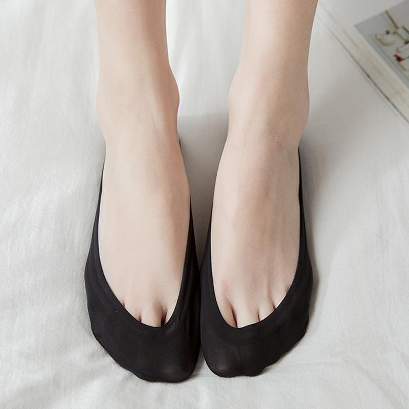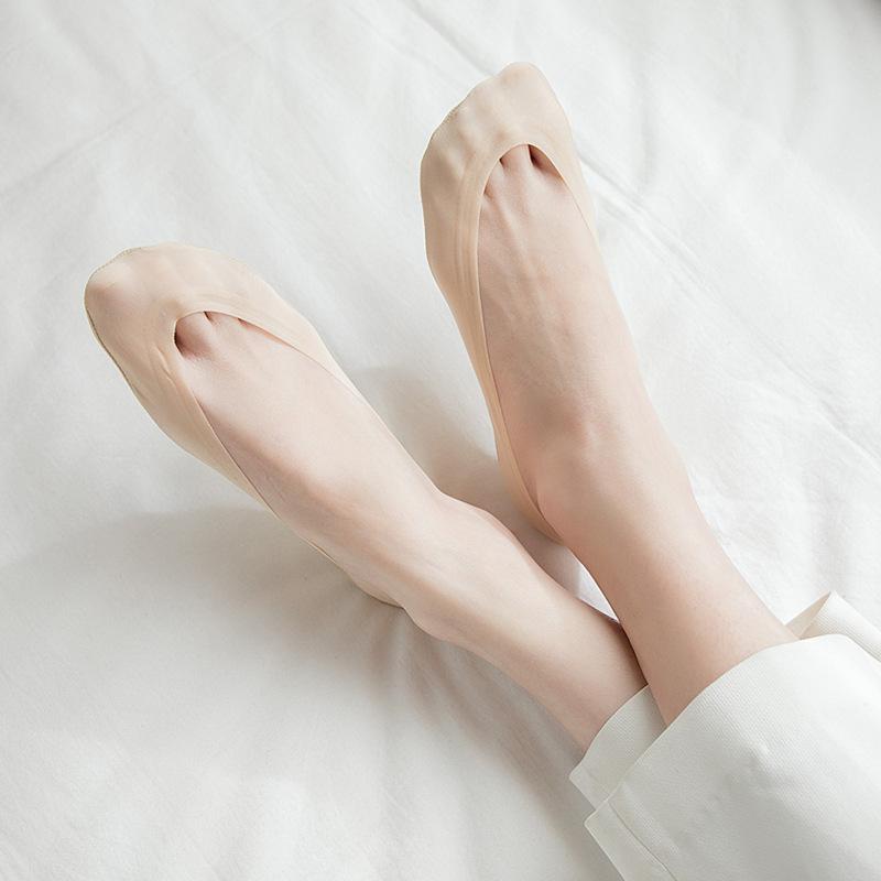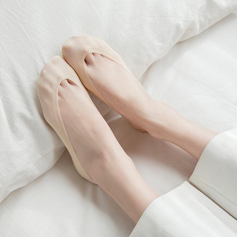 Calcetines de seda de hielo para mujer, de verano, finos, invisibles, de silicona, antideslizantes, de algodón de color liso, calcetines de verano para mujer