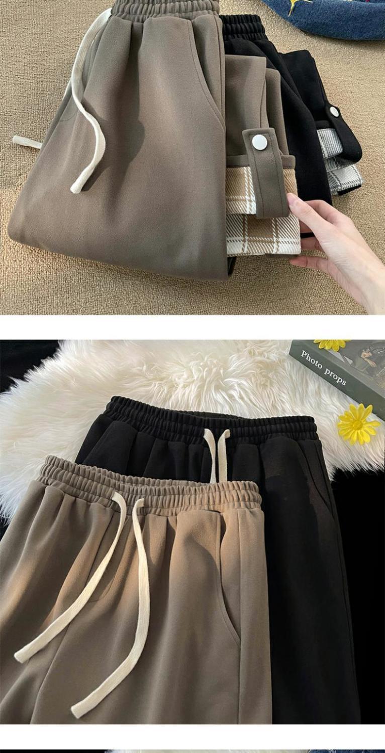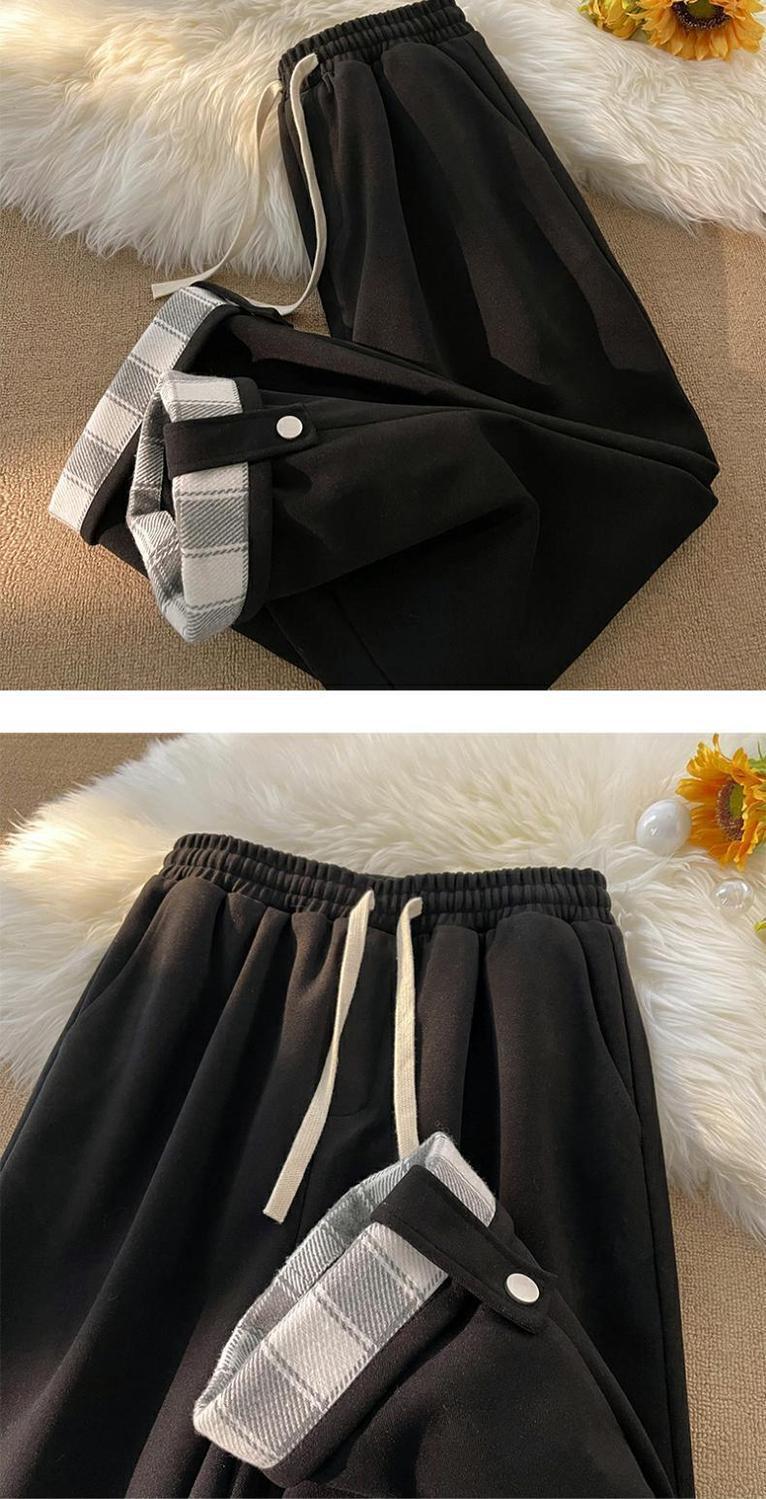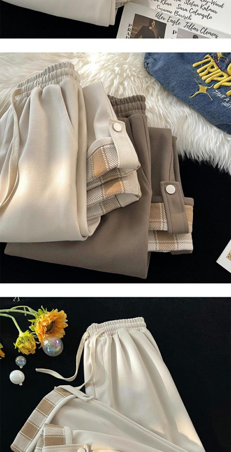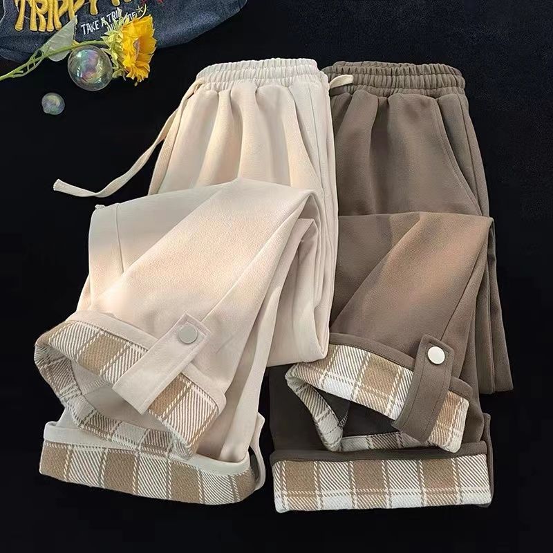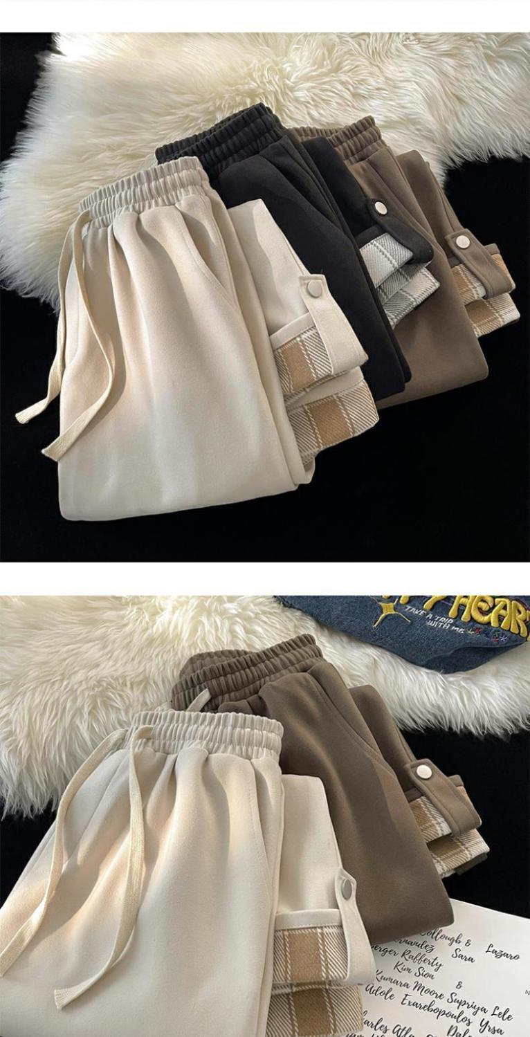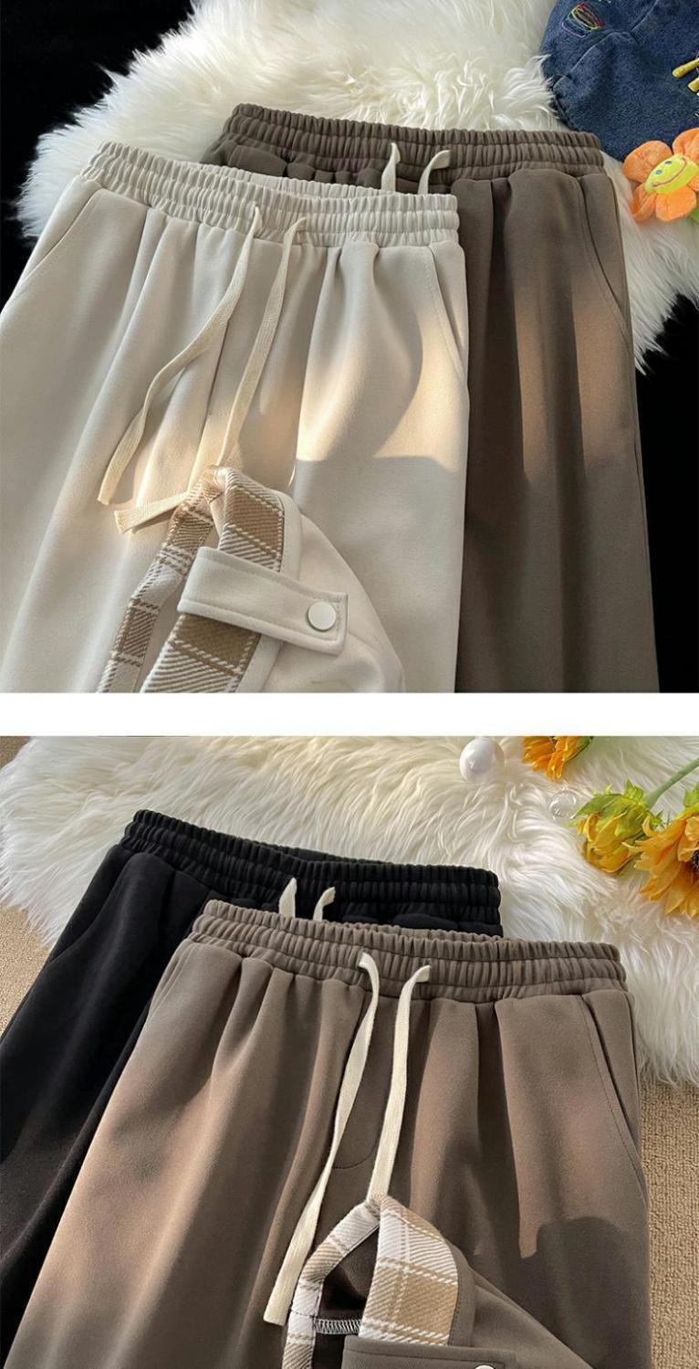 Pantalones con reborde de primavera y otoño para mujer, estilo japonés, holgados, de pierna ancha, casuales, rectos, para estudiantes de moda, para combinar con todo, deportivos.