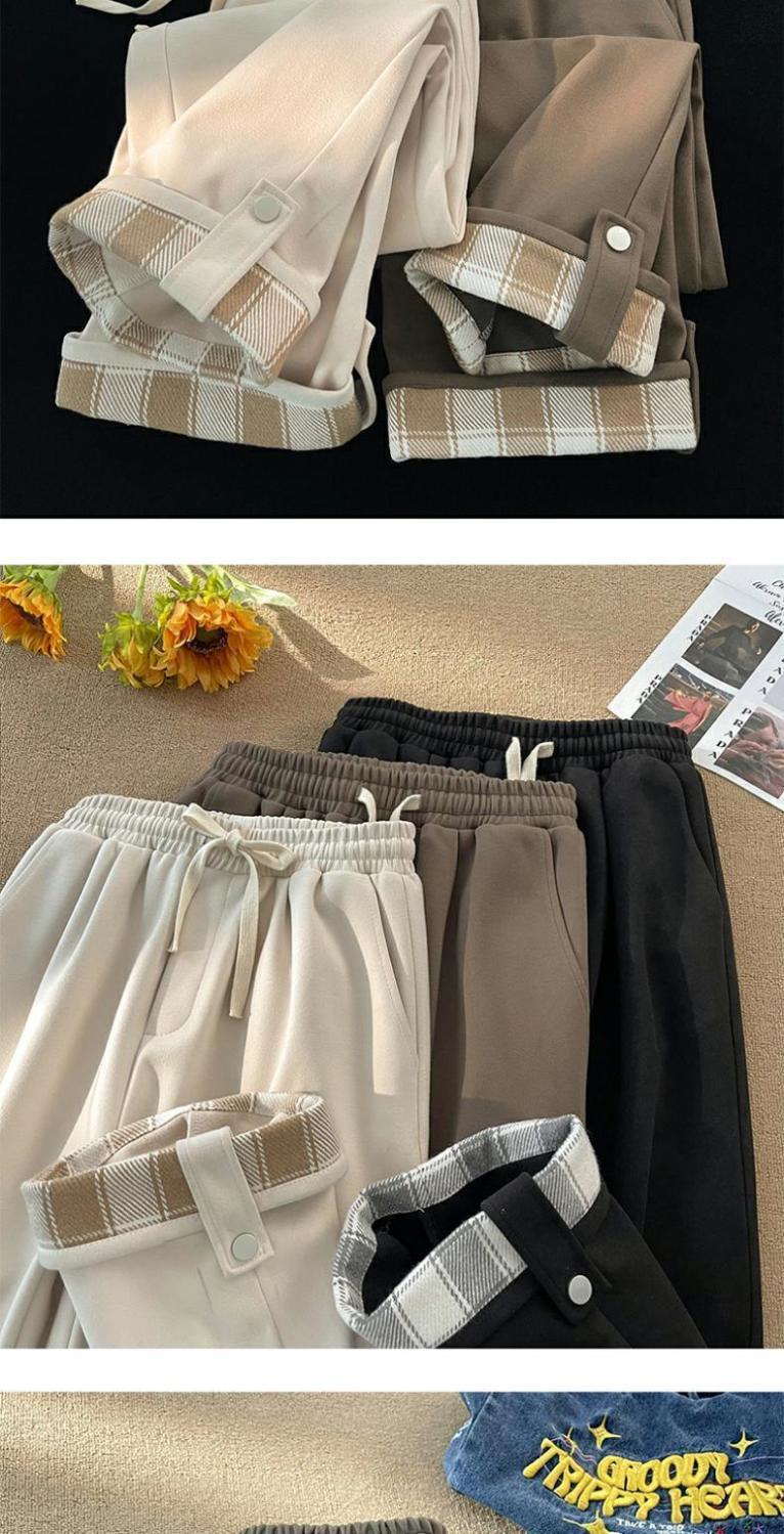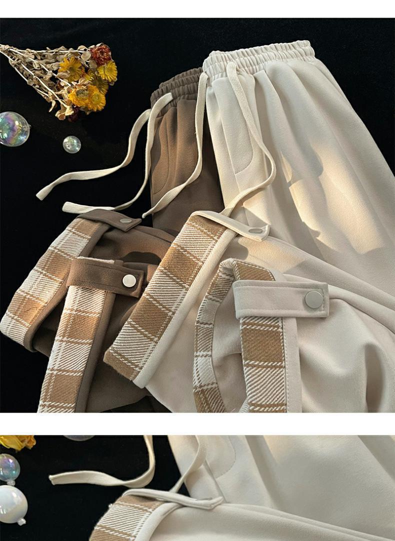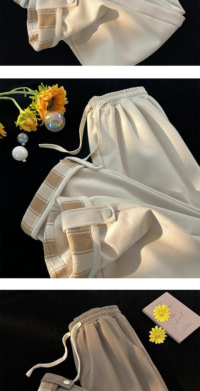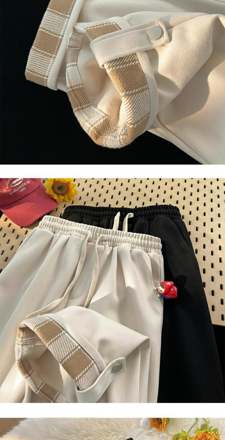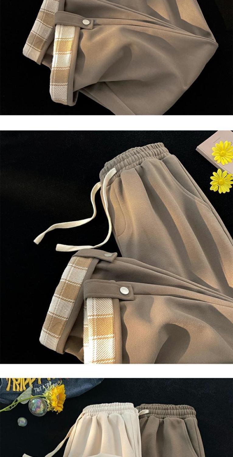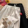 Pantalones con reborde de primavera y otoño para mujer, estilo japonés, holgados, de pierna ancha, casuales, rectos, para estudiantes de moda, para combinar con todo, deportivos.