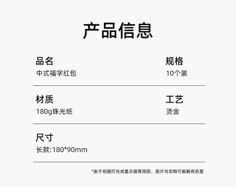 Chinese fu character 003-red envelope long (10 PCs/bag)