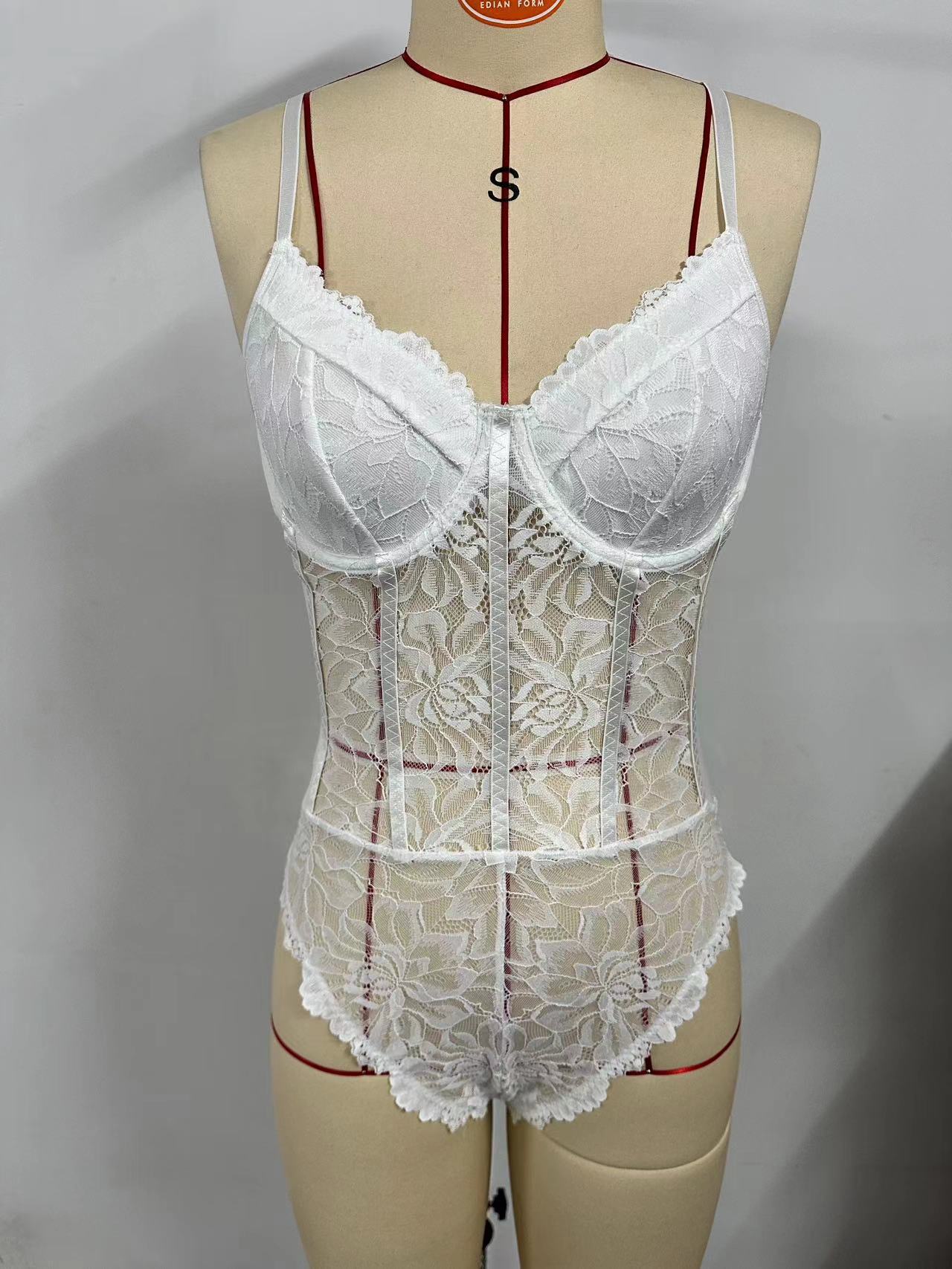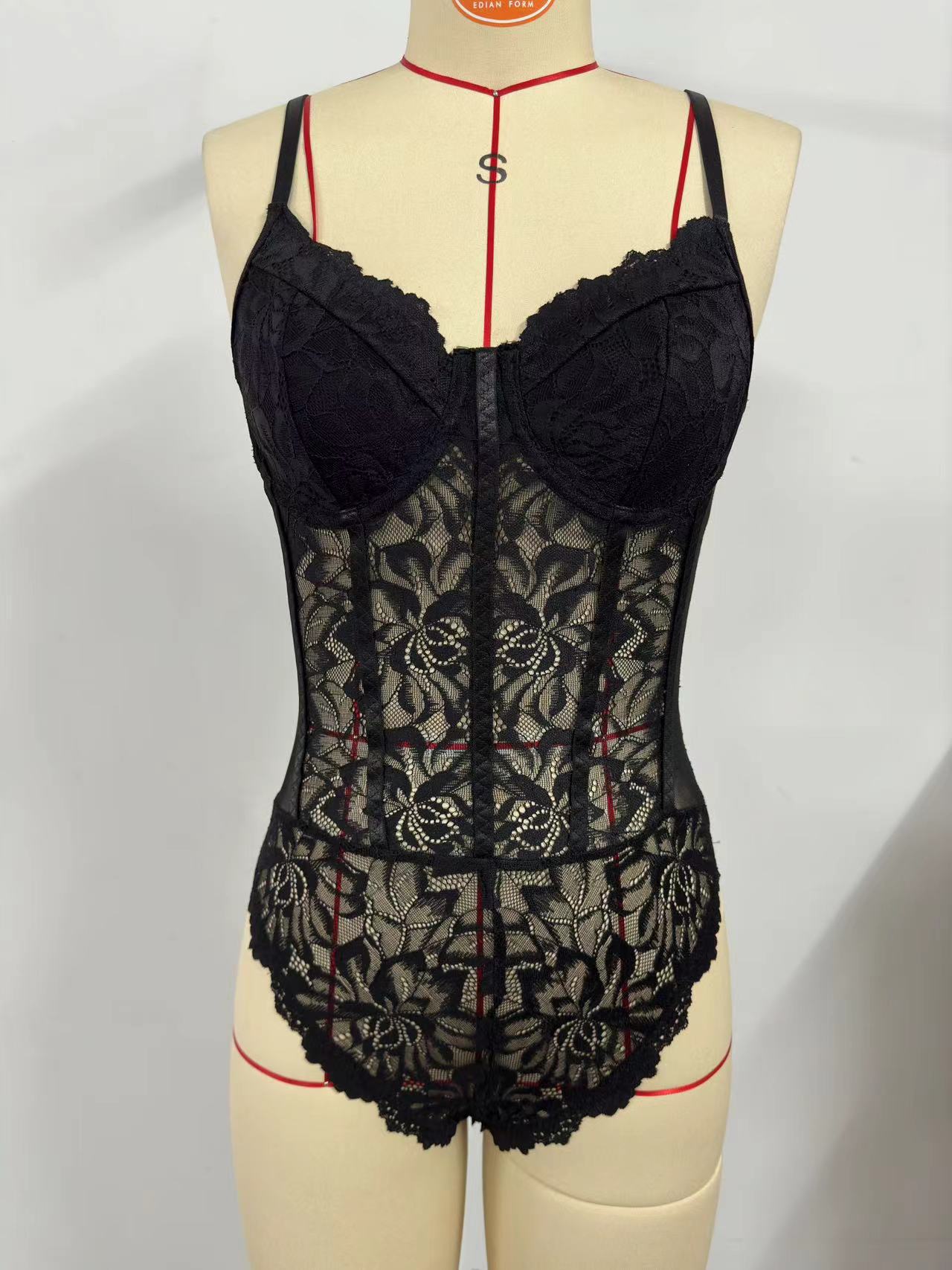 Jumpsuit Sexy Europeo y Americano Transfronterizo de Encaje de Malla de Deseo Puro Irregular Ins Ajustado Adelgazante Sin Espalda Moldeador de Cuerpo