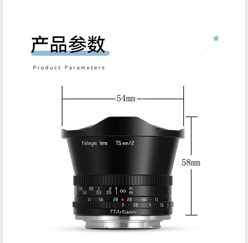 Lente ojo de pez micro single TTArtisan Mingjiang optical 7.5mm F2 adecuado para Fuji FX Nikon Z R