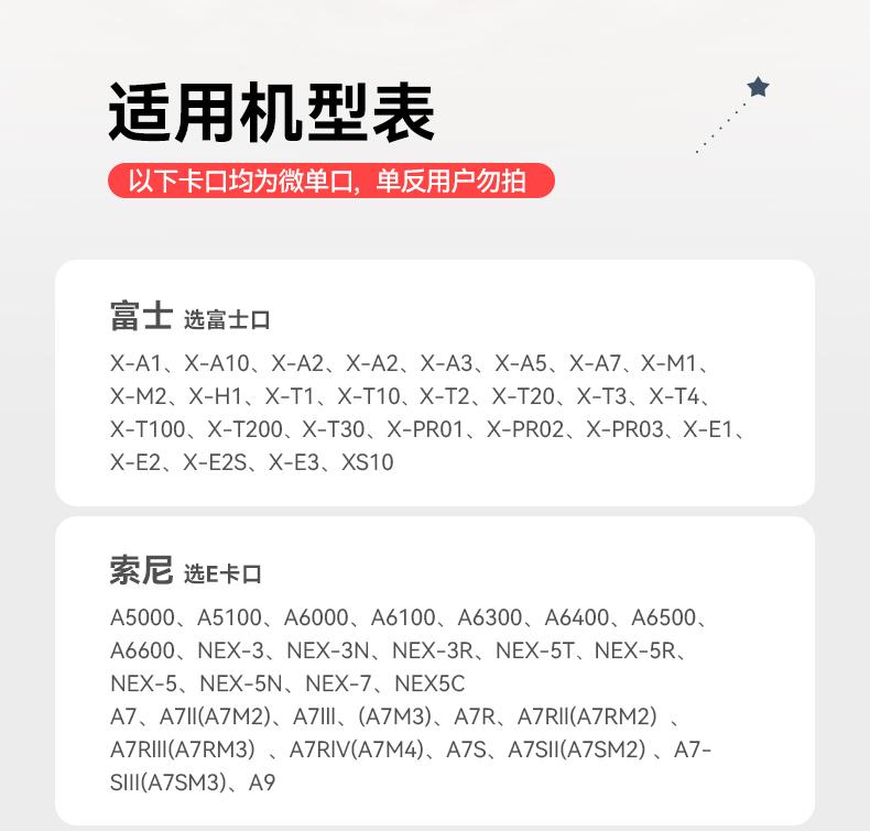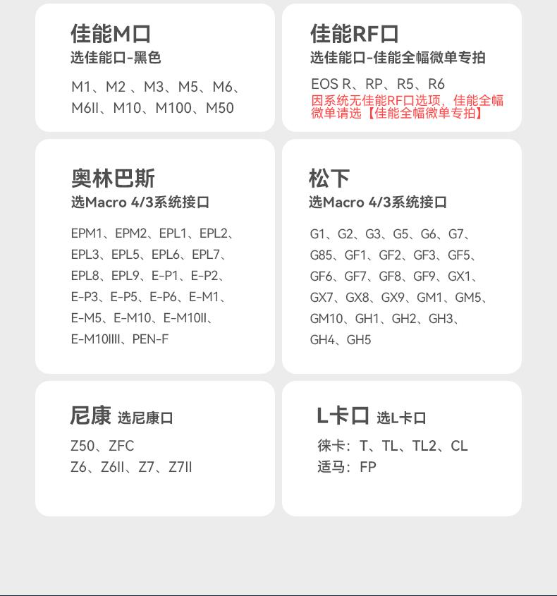 Sony e port, Fuji x port, Panasonic m43 port, Marathon l mouth, Nikon z mount, Canon r port