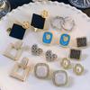 Pendientes triangulares cuadrados geométricos con microincrustaciones, modernos y elegantes, ideales para mujer, con broche de plata, fáciles de combinar.