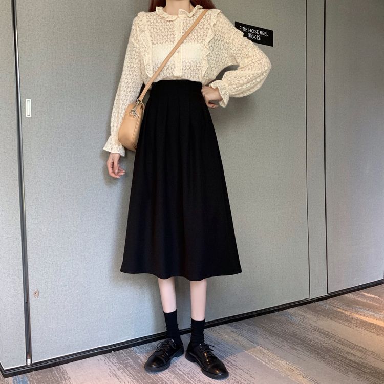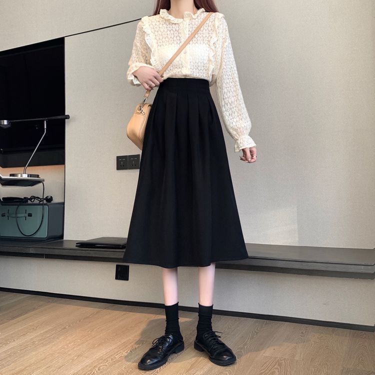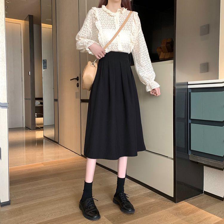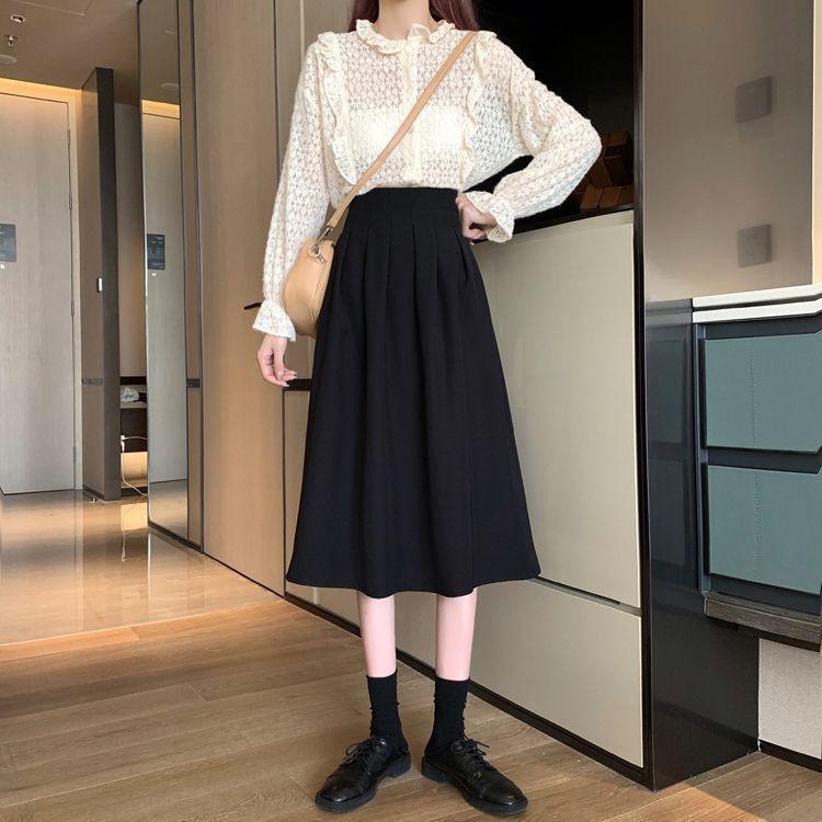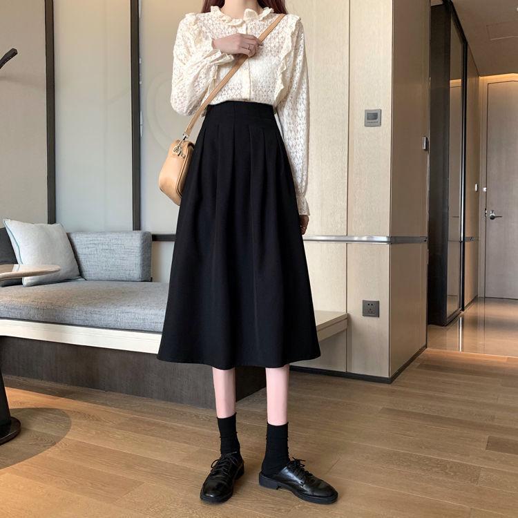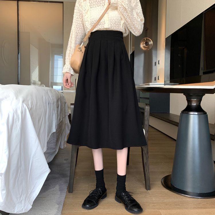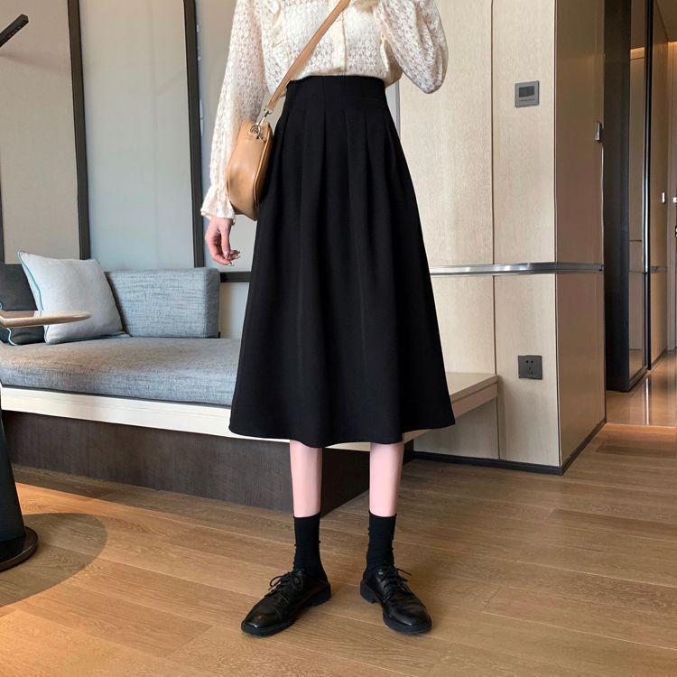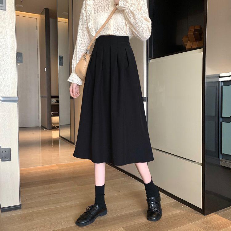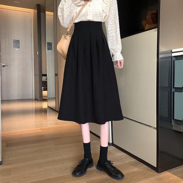 Falda gordita de talla grande para mujer, falda de cintura alta, longitud media, línea A, negra, pequeña, para verano, 2022
