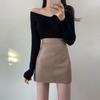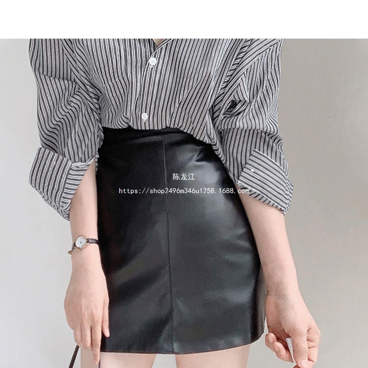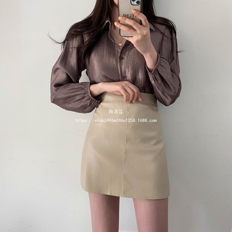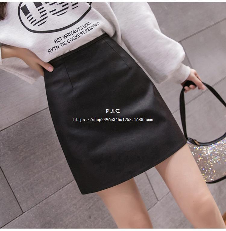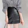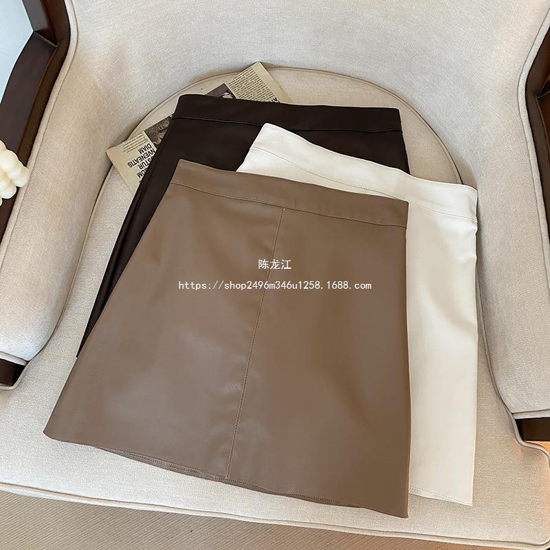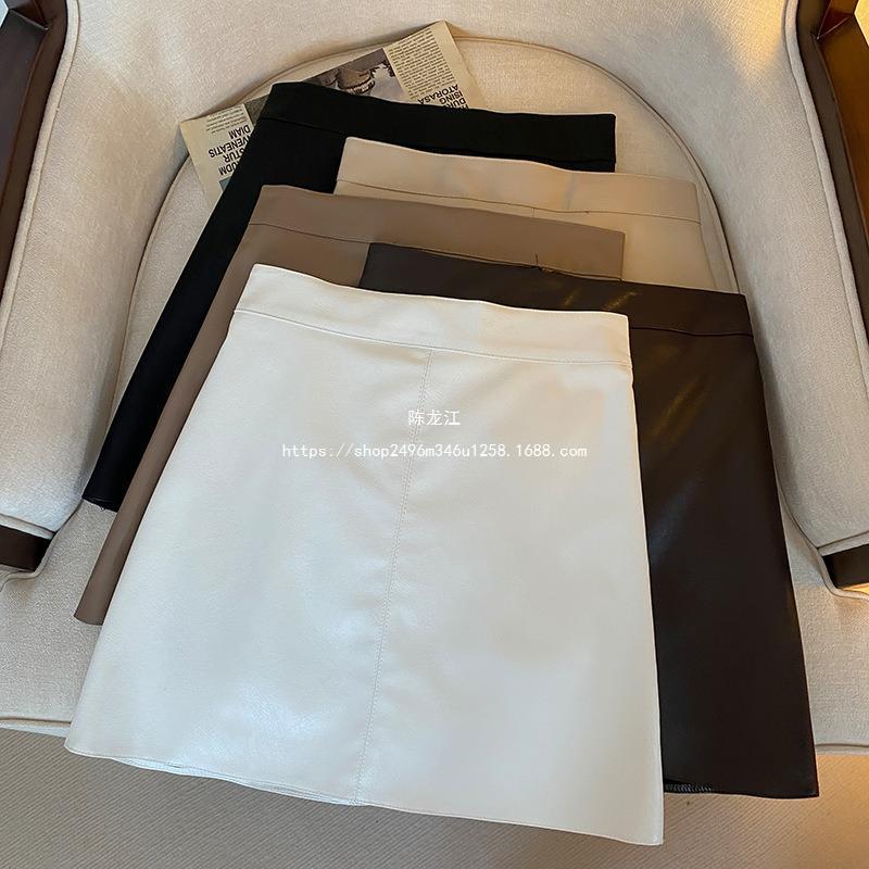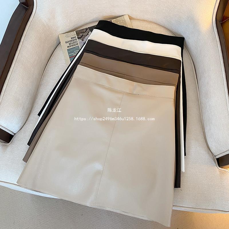 Falda negra de estilo nuevo para mujer de cuero de PU 2023, falda pequeña de otoño e invierno, falda acampanada, cintura alta, adelgazante, elegante