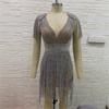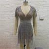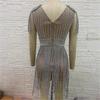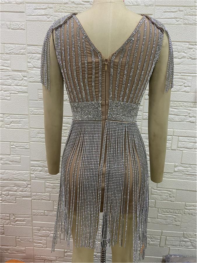 Vestido corto sexy con escote en V y borlas de diamantes de imitación, de lujo, con purpurina y fiesta de celebridades.