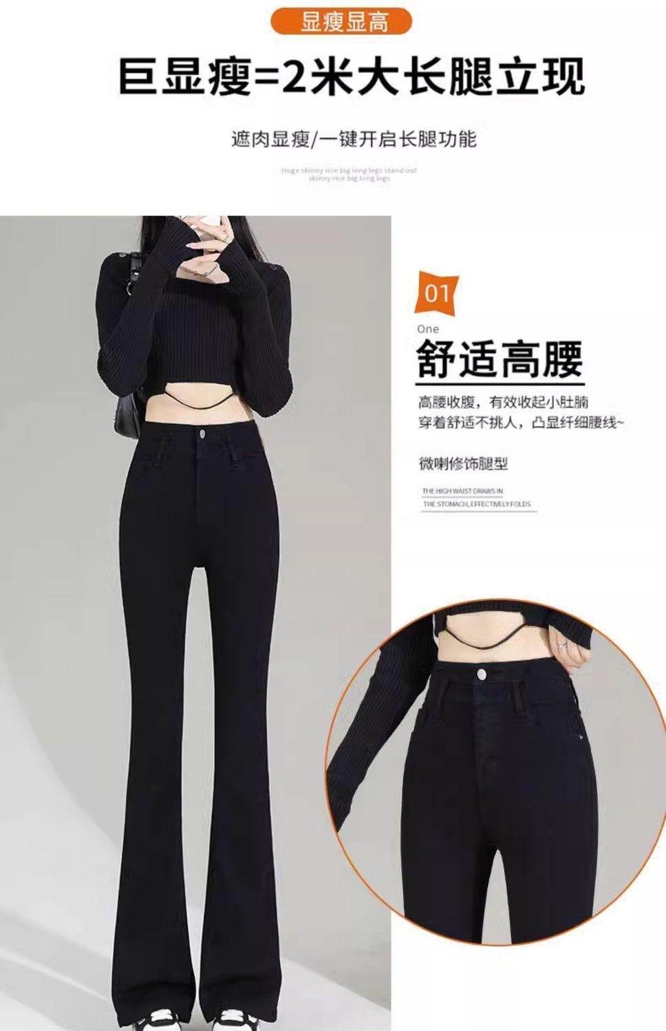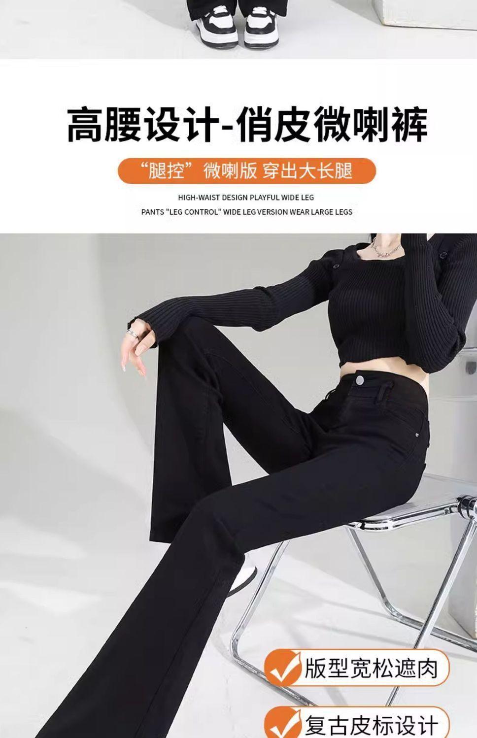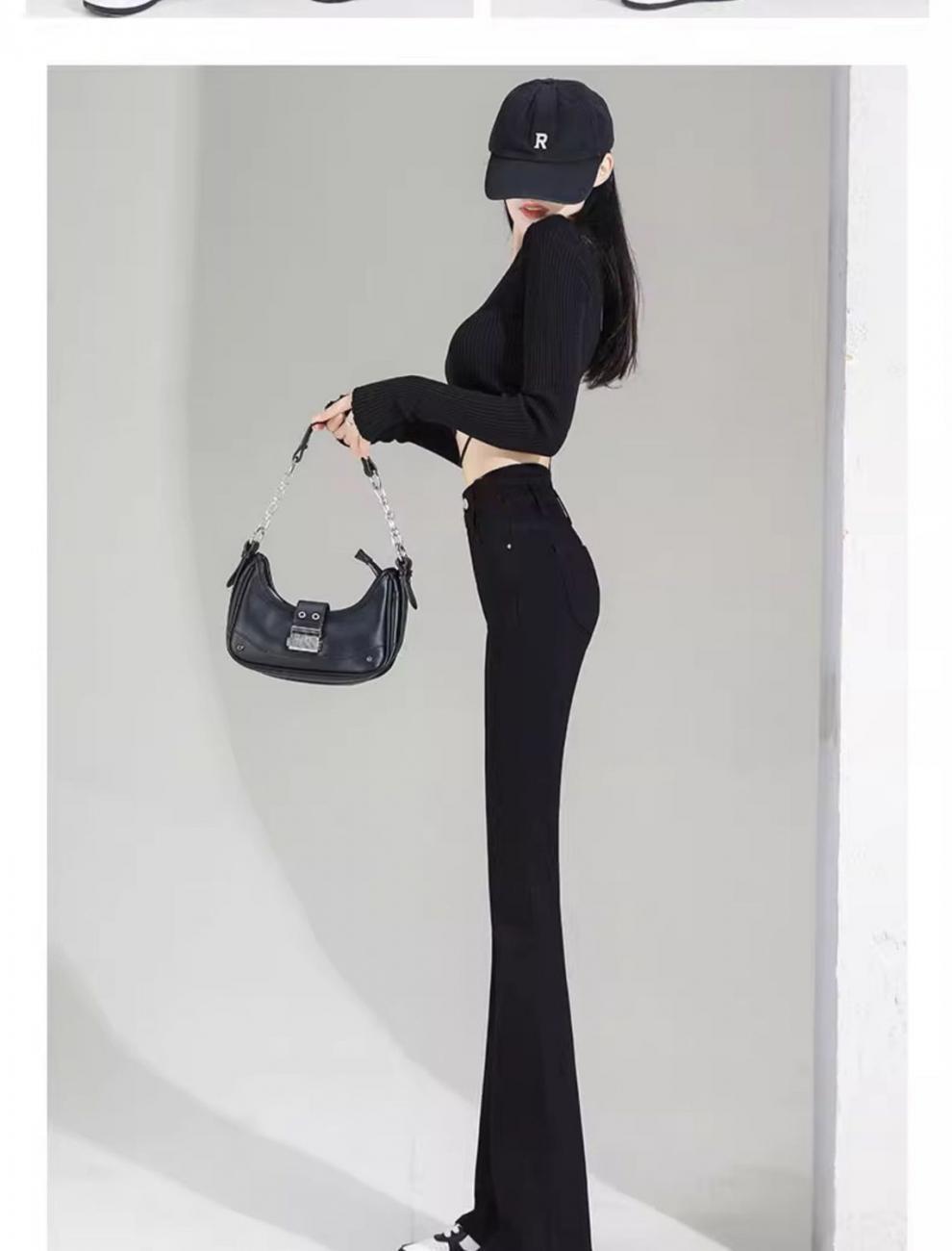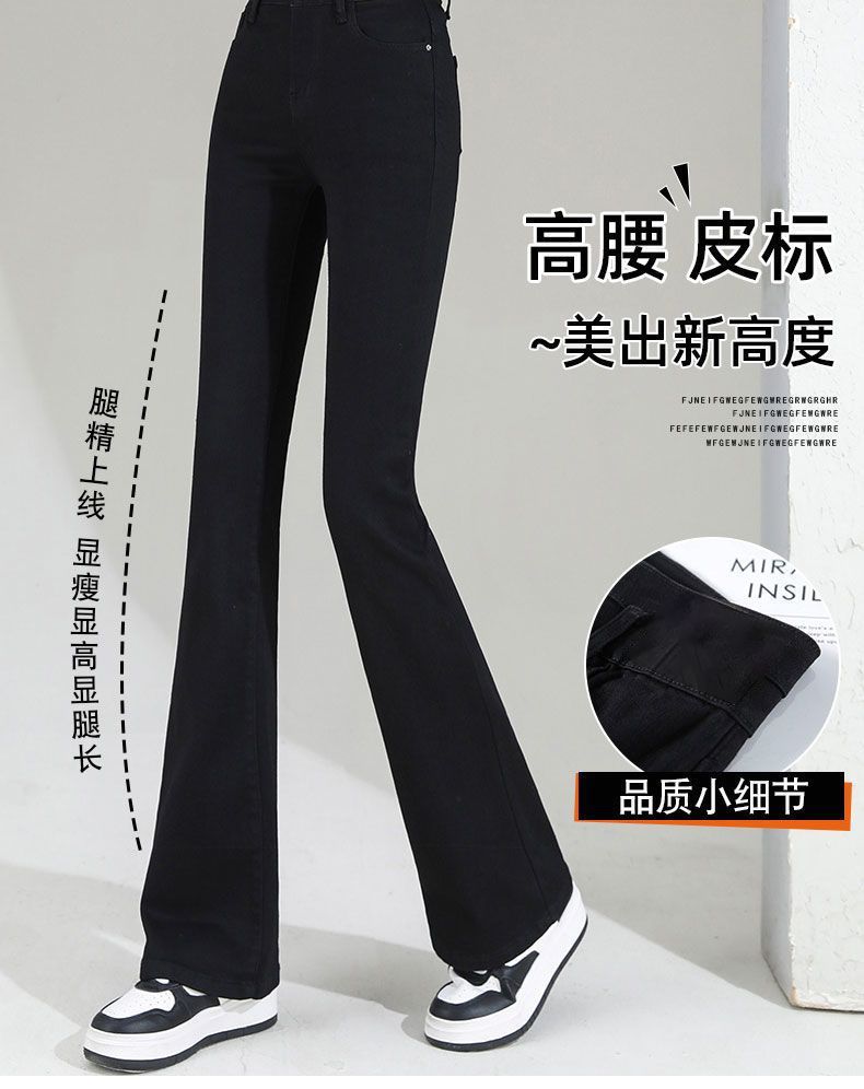 Vaqueros negros de cintura alta con microacampanado para mujer, temporada de verano 2024, pantalones finos elásticos con microacampanado, pantalones de herradura para mujer