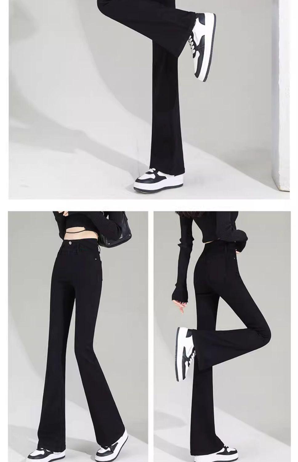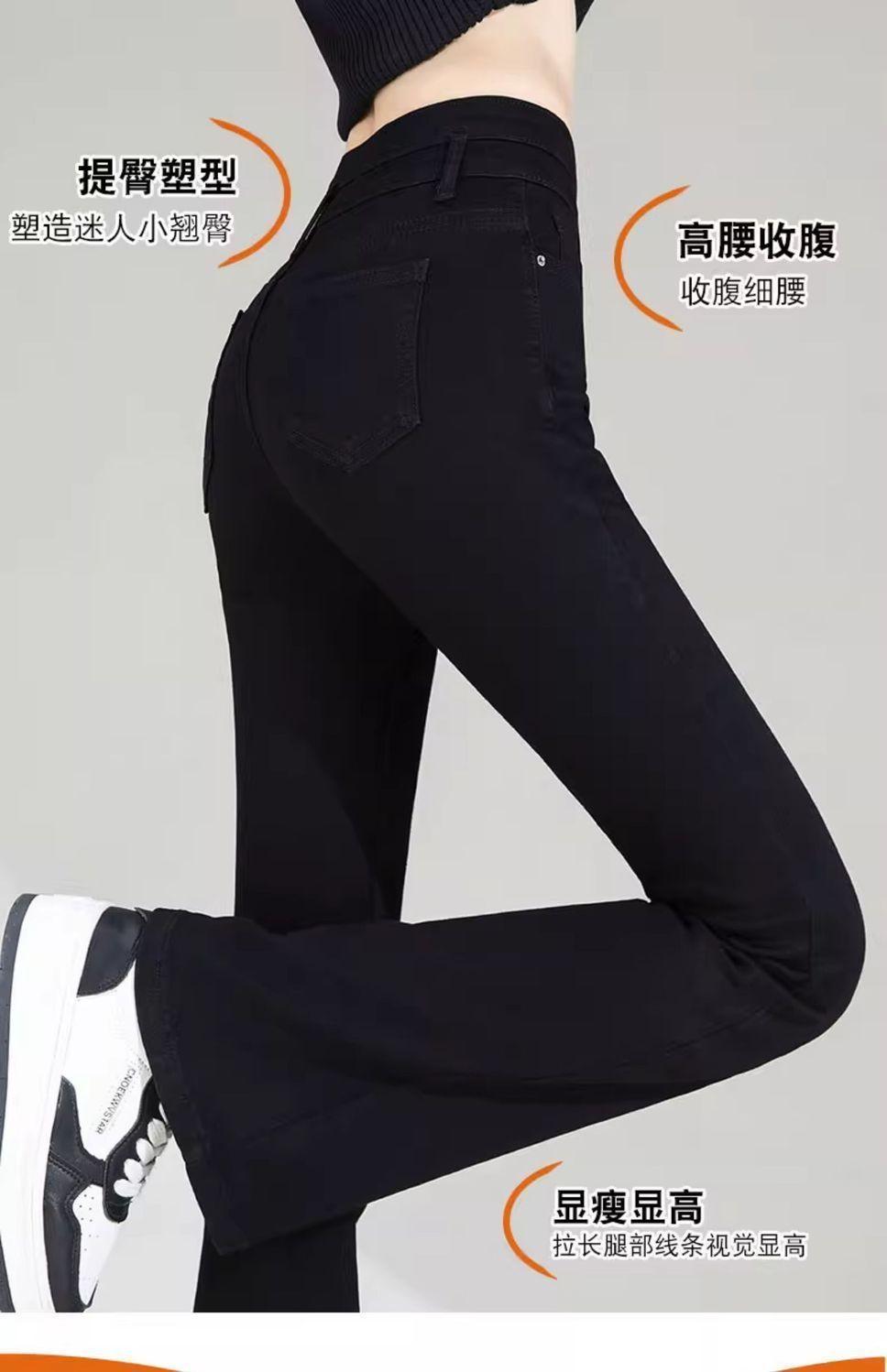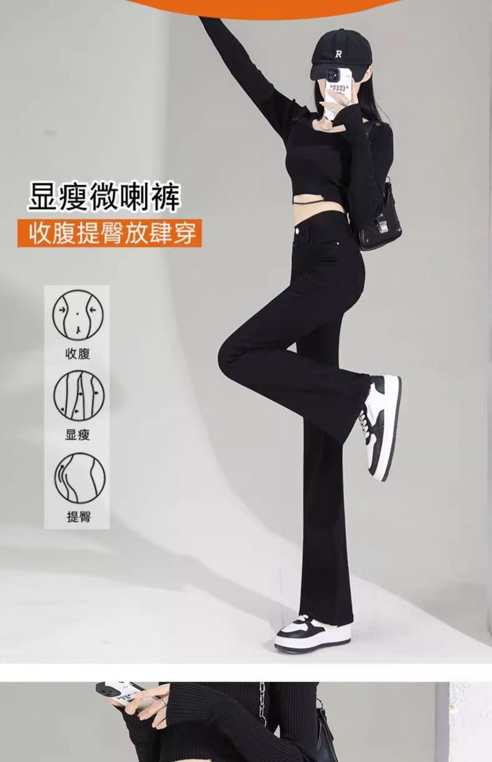 Vaqueros negros de cintura alta con microacampanado para mujer, temporada de verano 2024, pantalones finos elásticos con microacampanado, pantalones de herradura para mujer