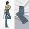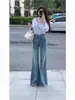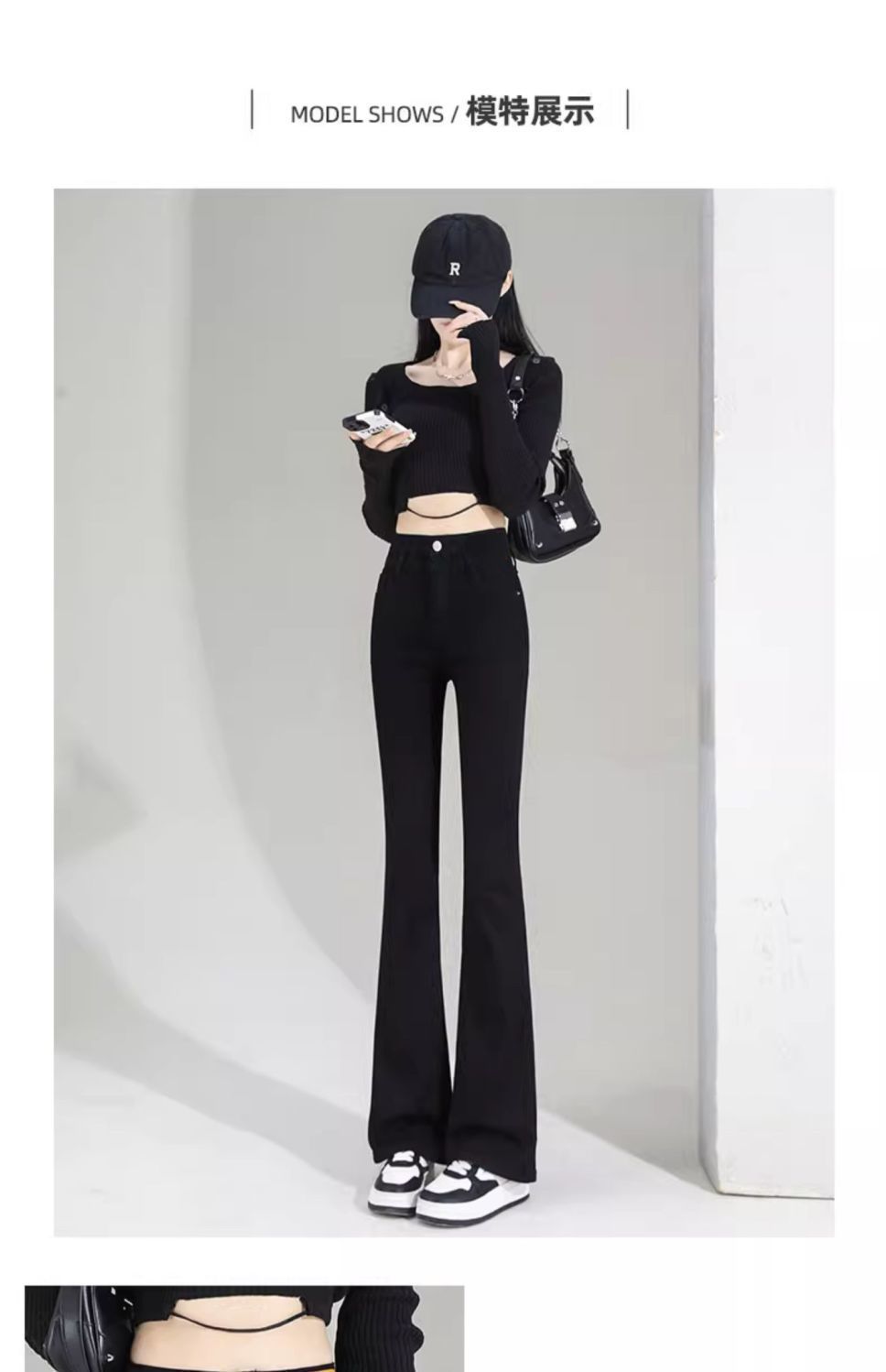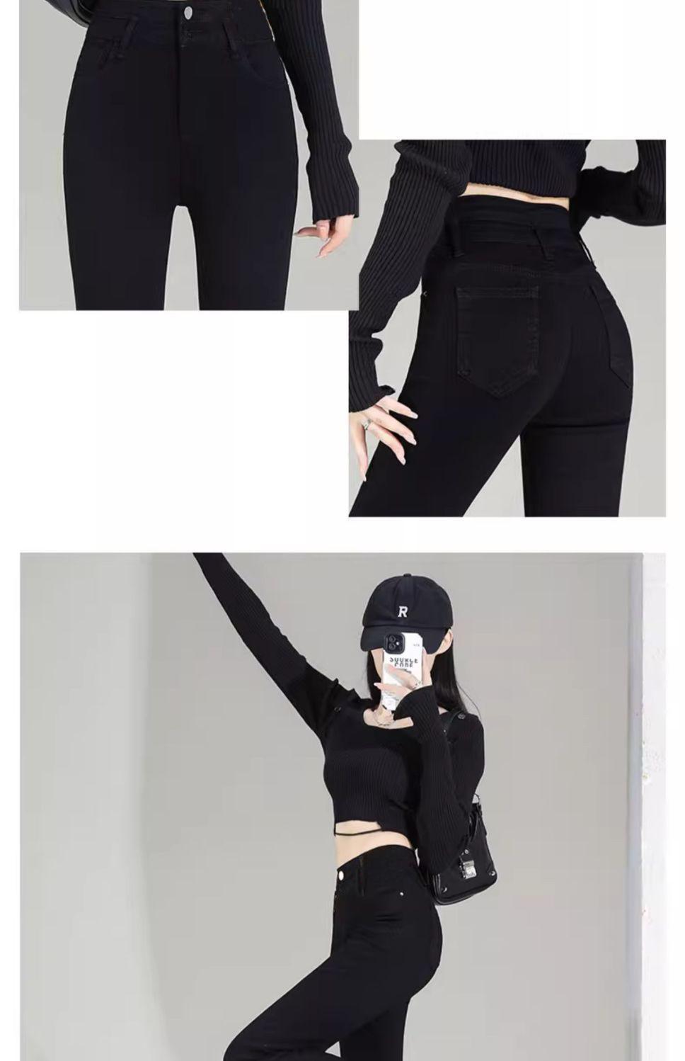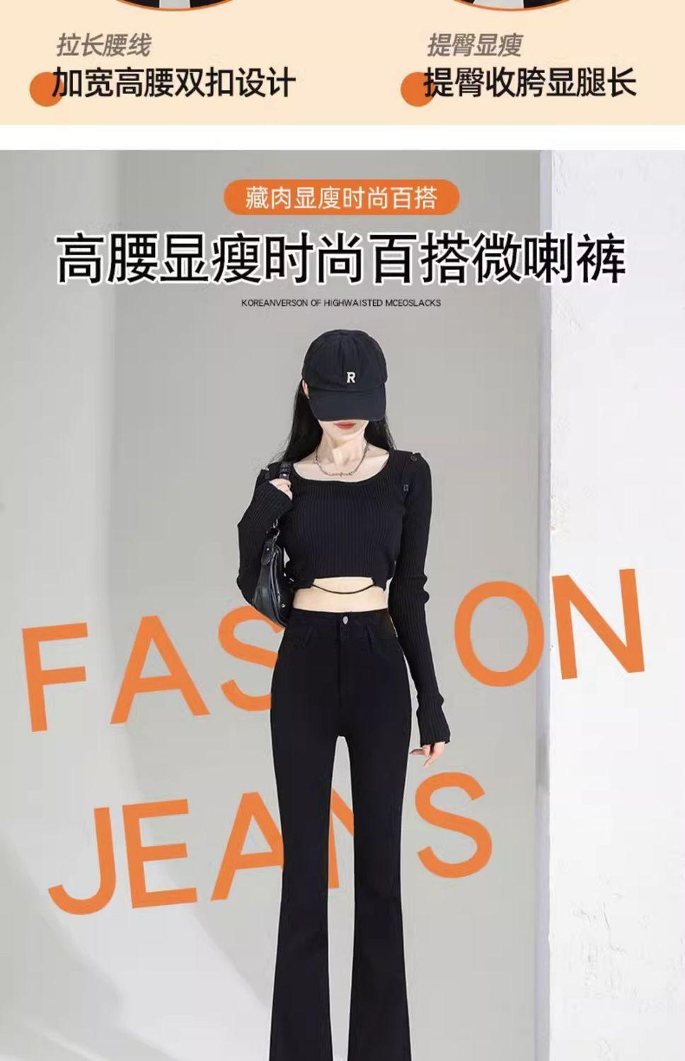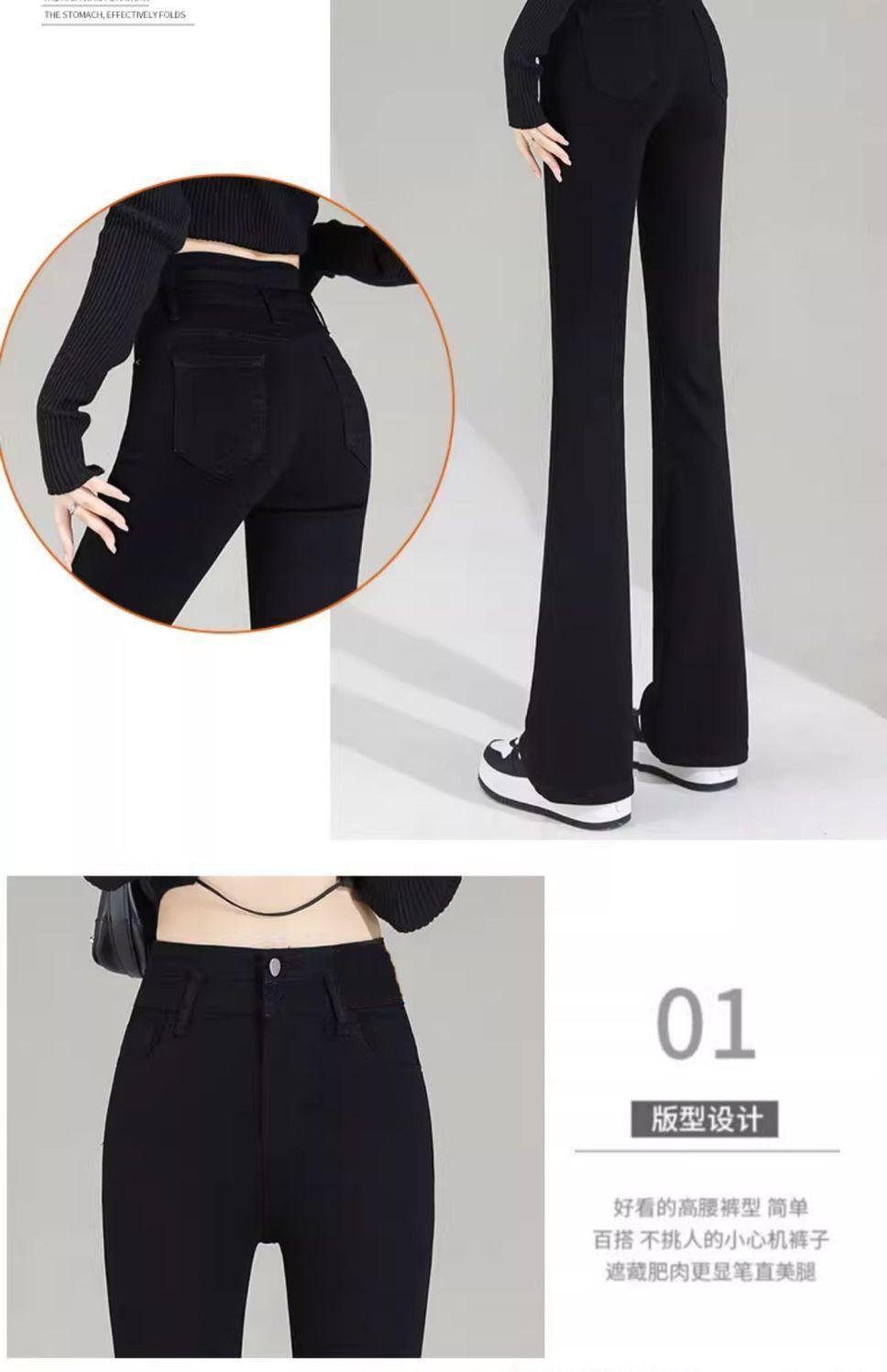 Vaqueros negros de cintura alta con microacampanado para mujer, temporada de verano 2024, pantalones finos elásticos con microacampanado, pantalones de herradura para mujer