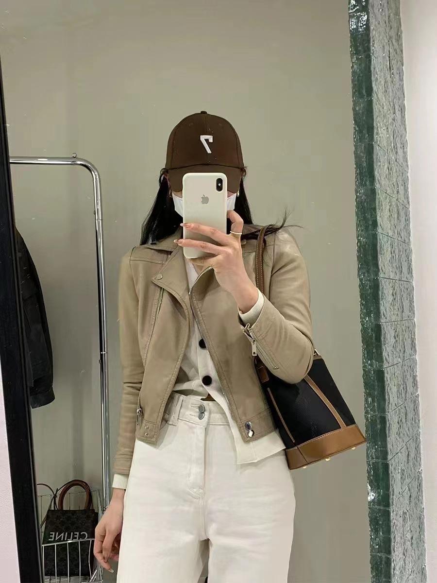2023 primavera diseño de cuero nicho cremallera negro cuero PU manga larga chaqueta motocicleta abrigo corto pequeño