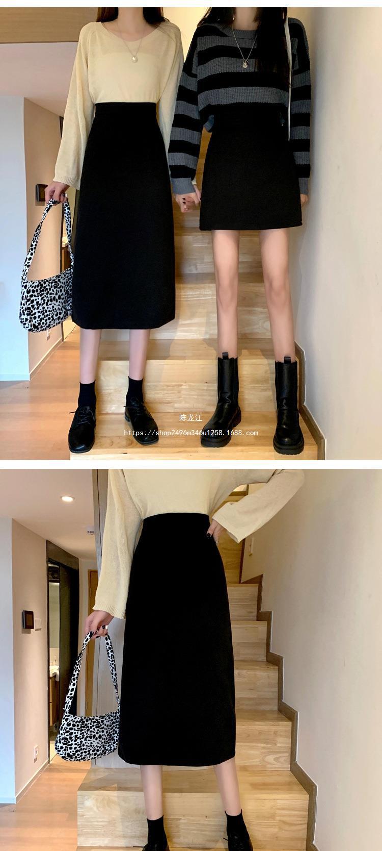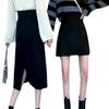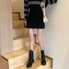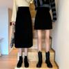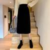 Falda de cintura alta para mujer, estilo acampanado, de lana negra, para invierno, 2023