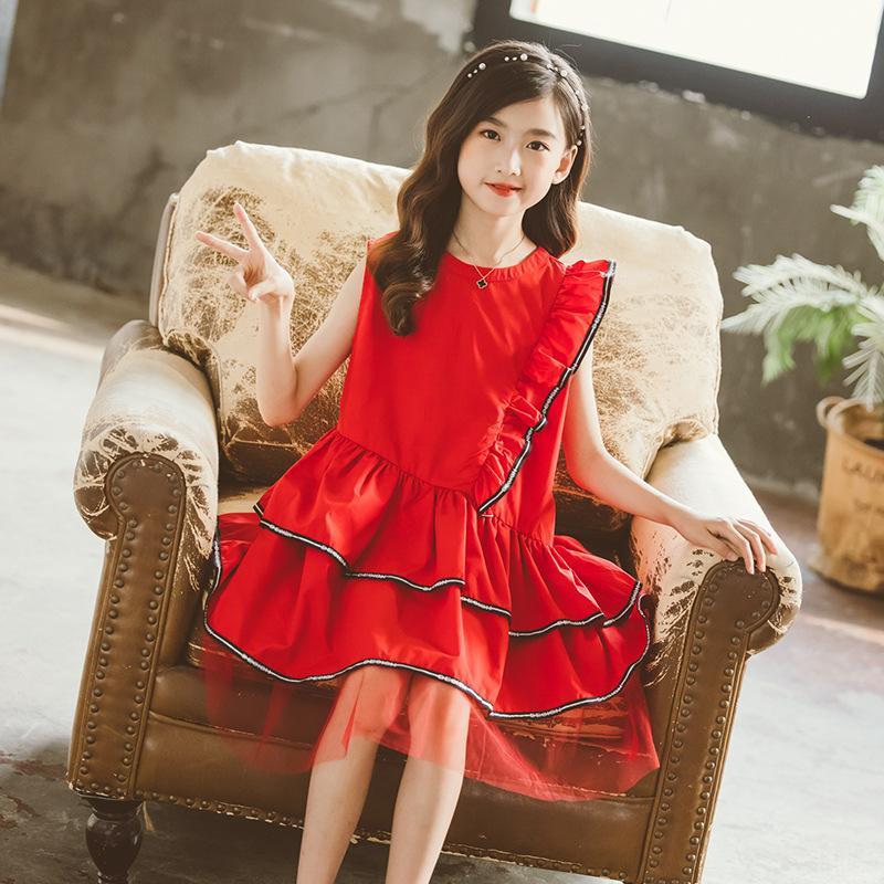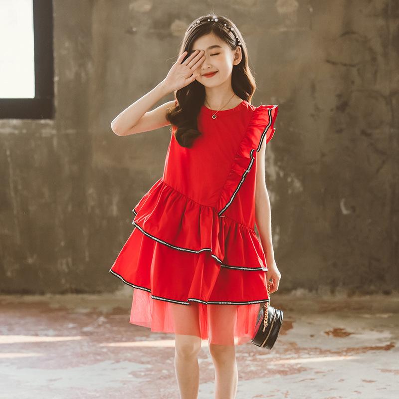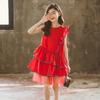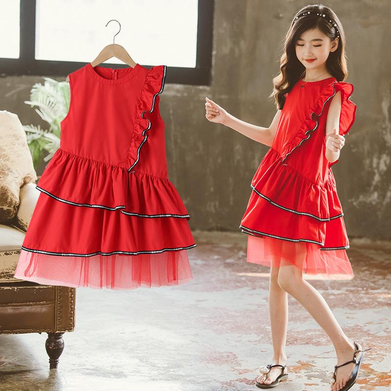 Vestido para niña, verano 2025, nuevo, estilo coreano, para niñas medianas y grandes, vestido de princesa, vestido de malla con costuras para niñas.