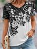 Amazon Transfronterizo Verano Nuevo Estilo Europeo y Americano Top Pulóver con Estampado de Plantas y Floral Camiseta Casual de Manga Corta con Cuello en V