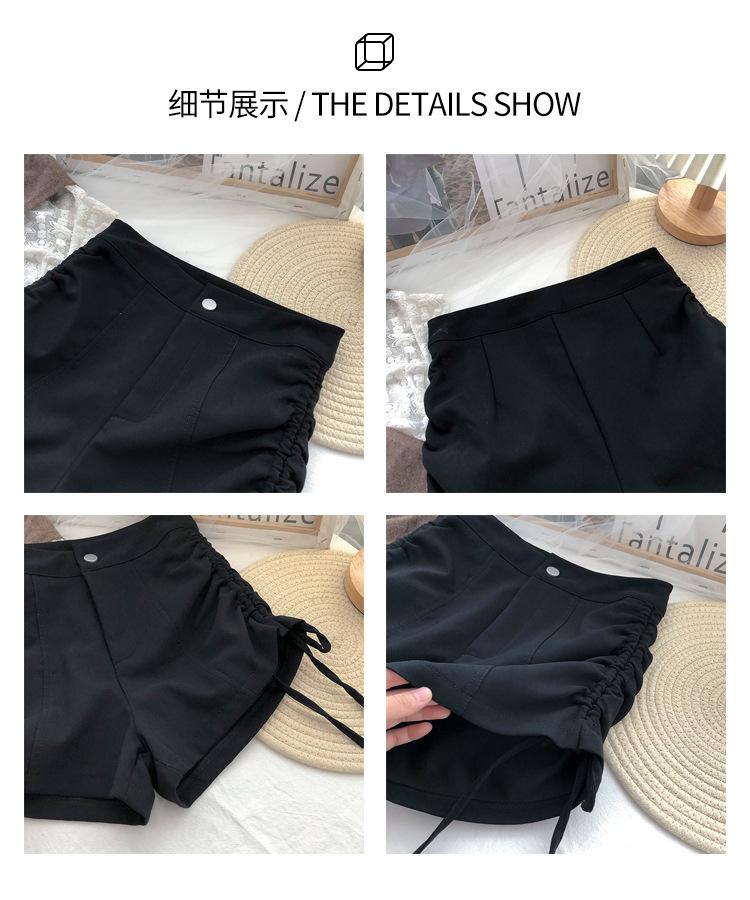 Pantalones casuales adelgazantes de cintura alta con cordón de verano 2023, pantalones cortos hot pants, pantalones cortos para chica hot, diseño pumpty para mujer, pantalones negros