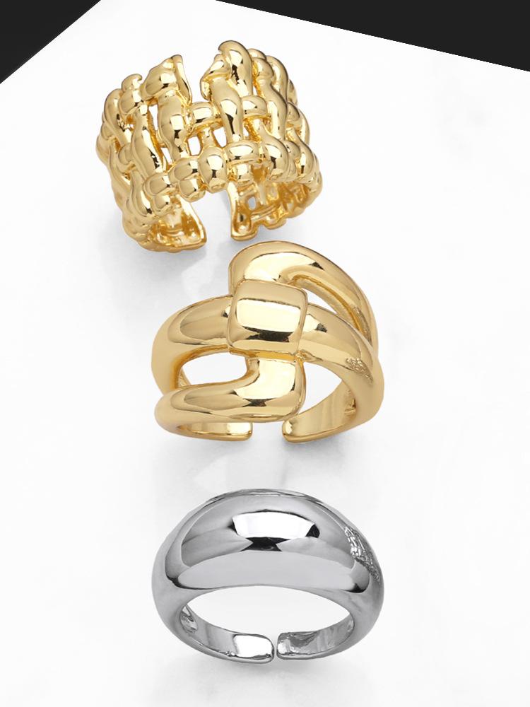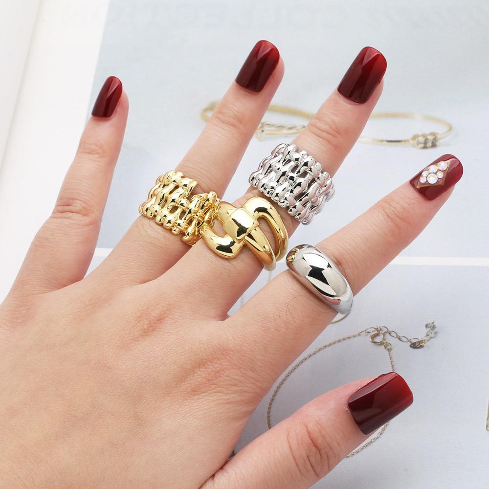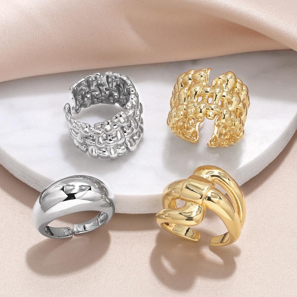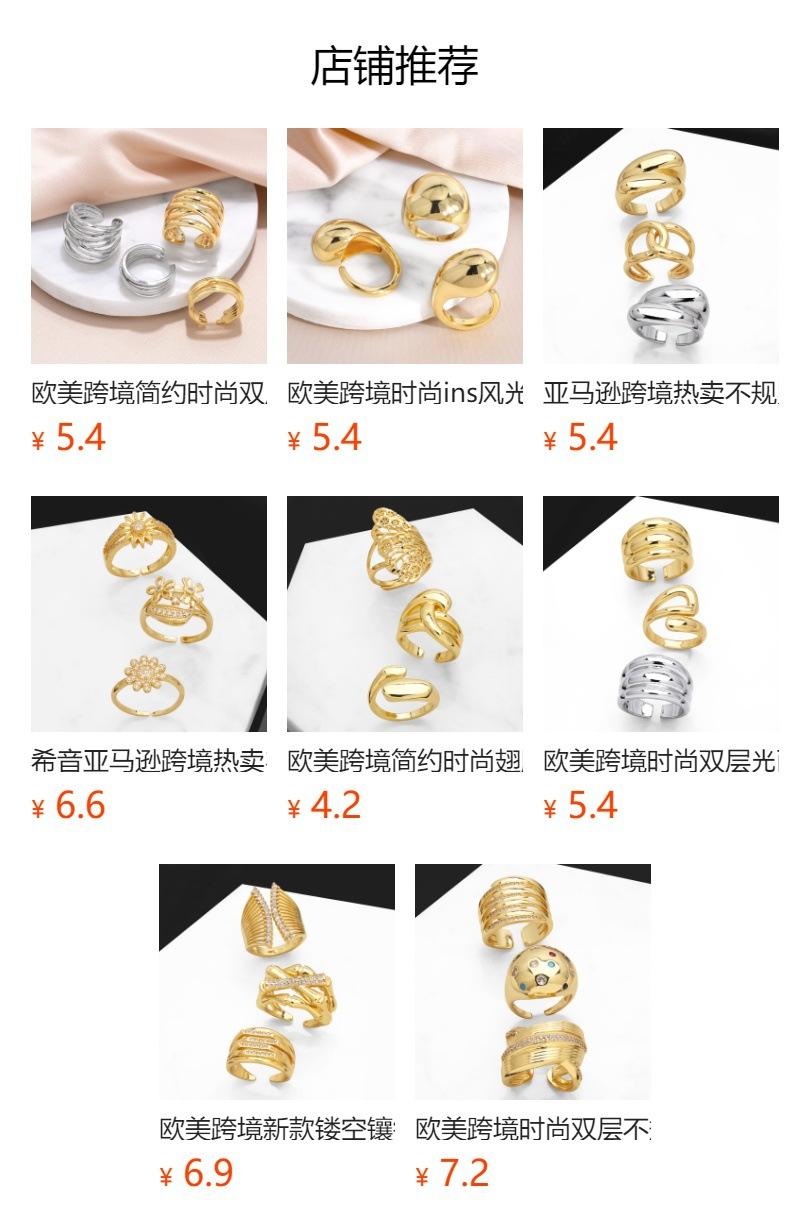 AliExpress venta caliente transfronteriza moda Anillo abierto personalizado creativo brillante doble capa chapado en oro joyería ris44