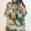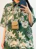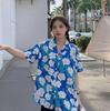 Comercio Exterior Transfronterizo Verano Americano Vintage Estilo Hong Kong Vintage Camisa Floral de Manga Corta Femenina Diseño Nicho Camisa