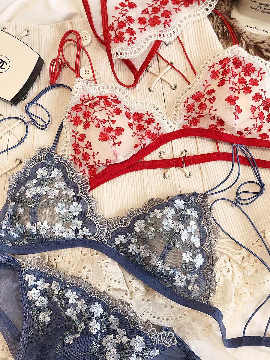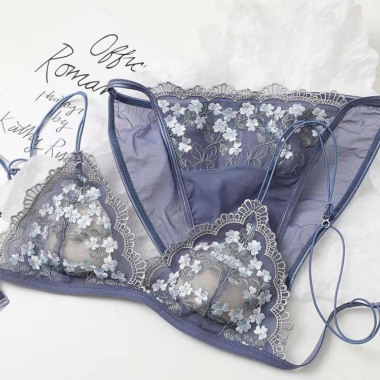 Ropa interior de estilo francés para chicas, pecho grande, llamativa, de verano, fina, estilo francés, sexy, de encaje, antiflacidez