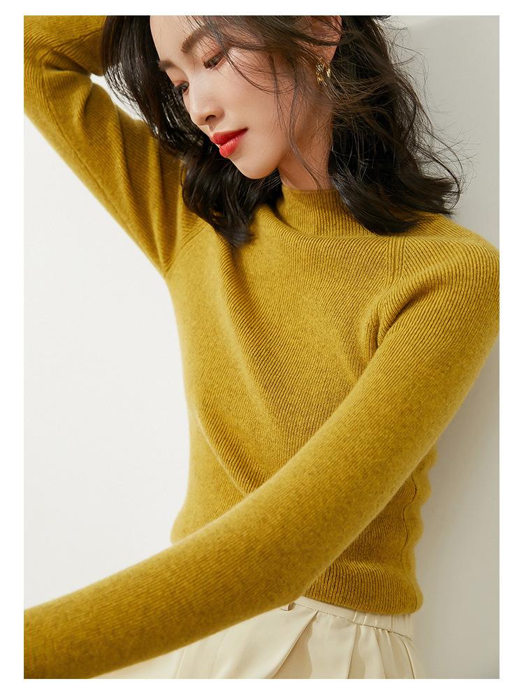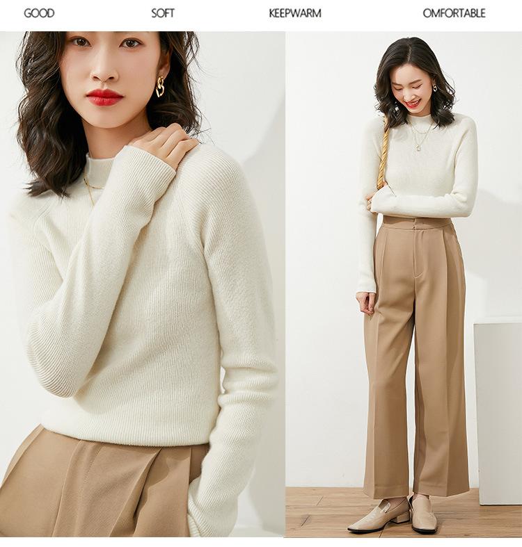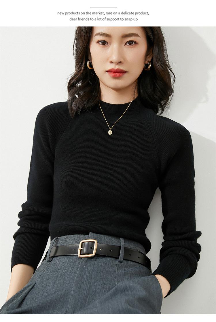 Suéter Corto de Punto de Cuello Medio Alto para Otoño e Invierno al por Mayor, Top de Capa Interior Elegante y Adecuado para Ir al Trabajo en Blanco y Negro