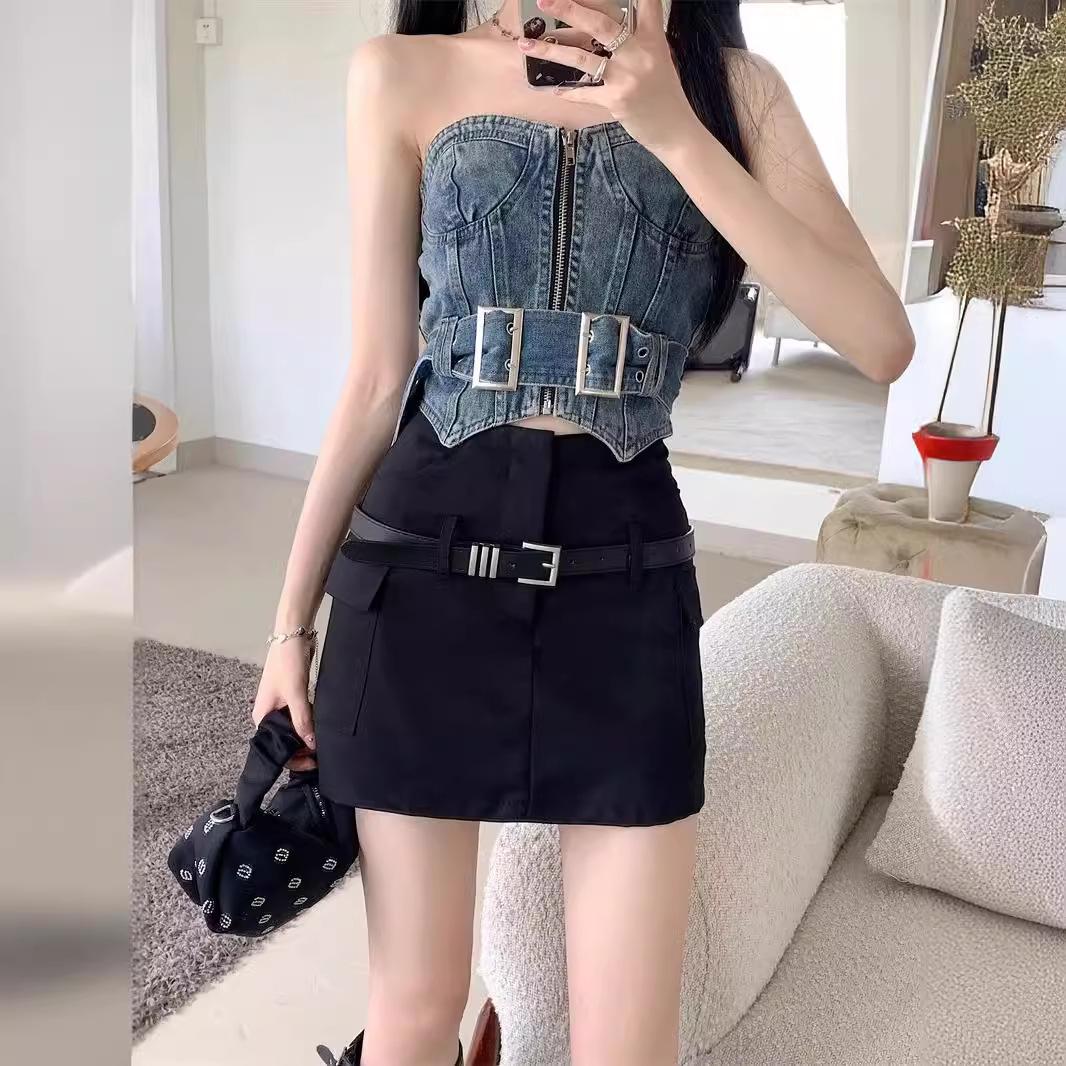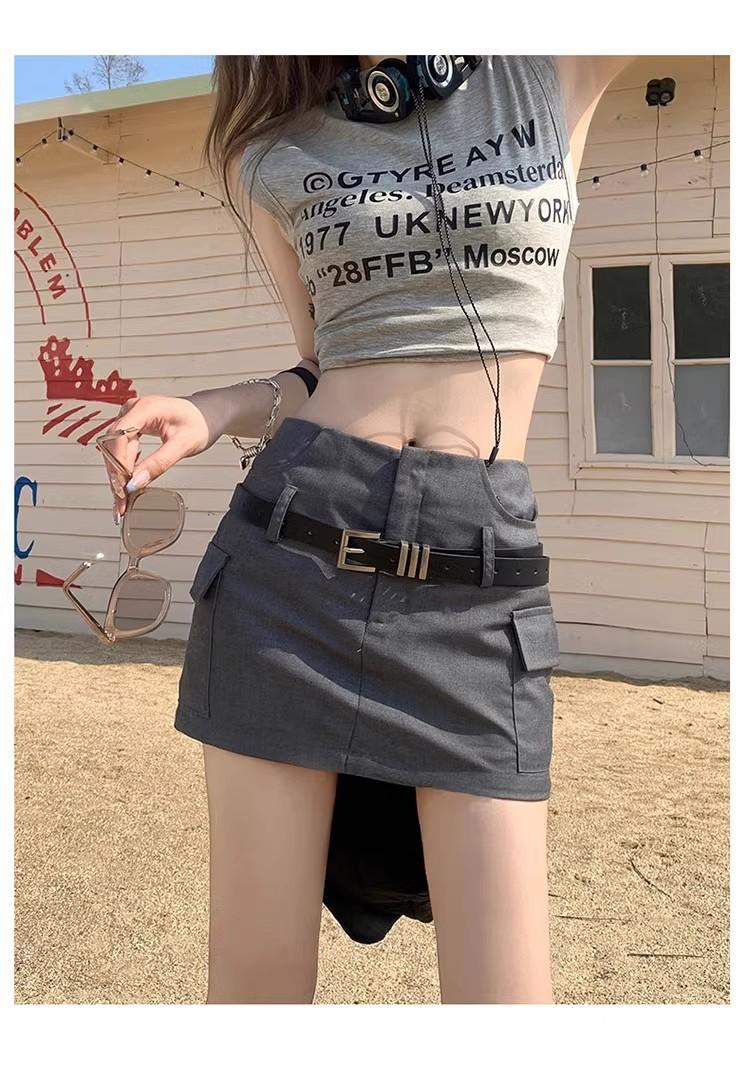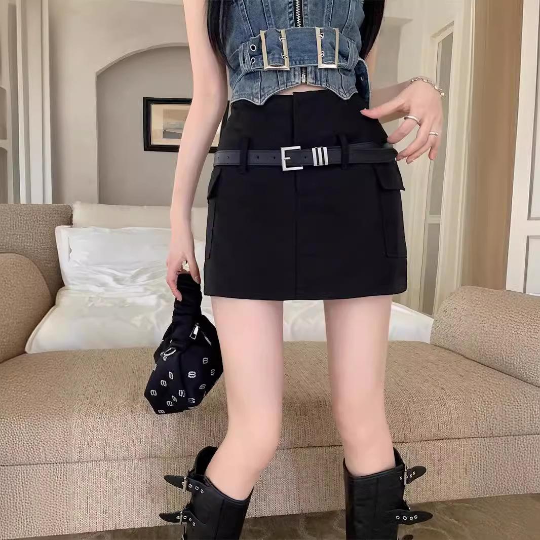 Falda de traje de cintura alta con diseño de cinturón para mujer, estilo americano, a la moda, elegante y ajustada, 2024