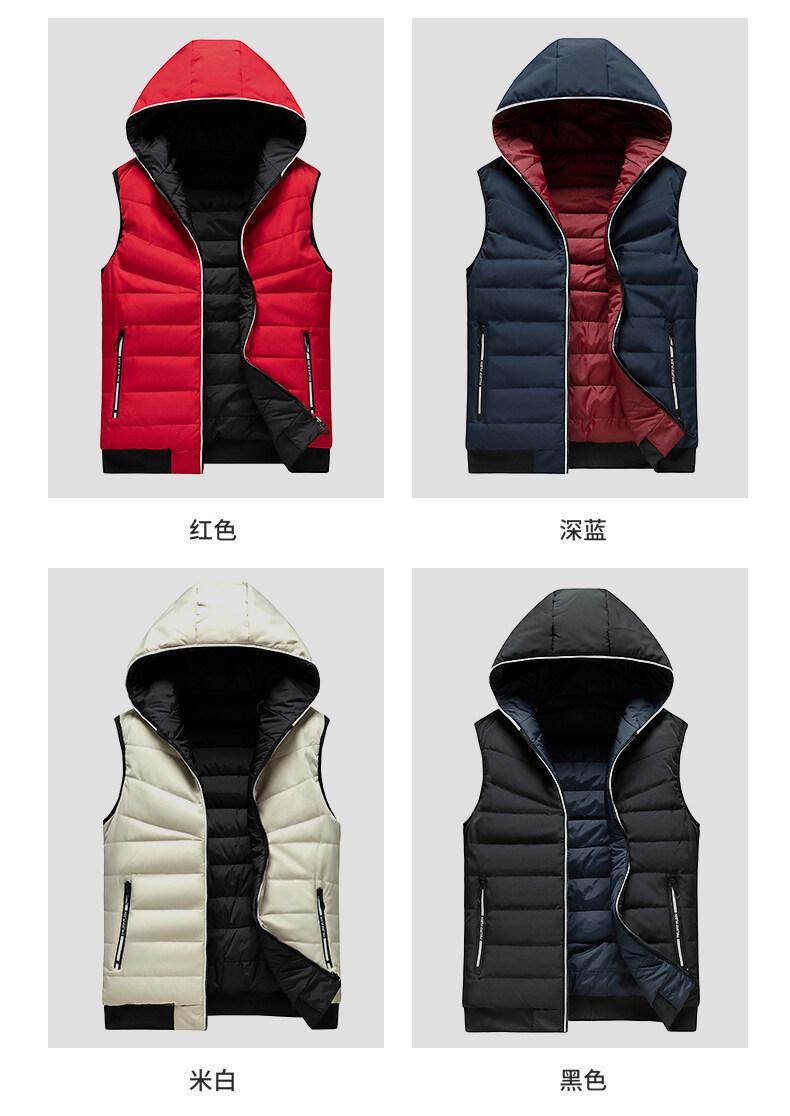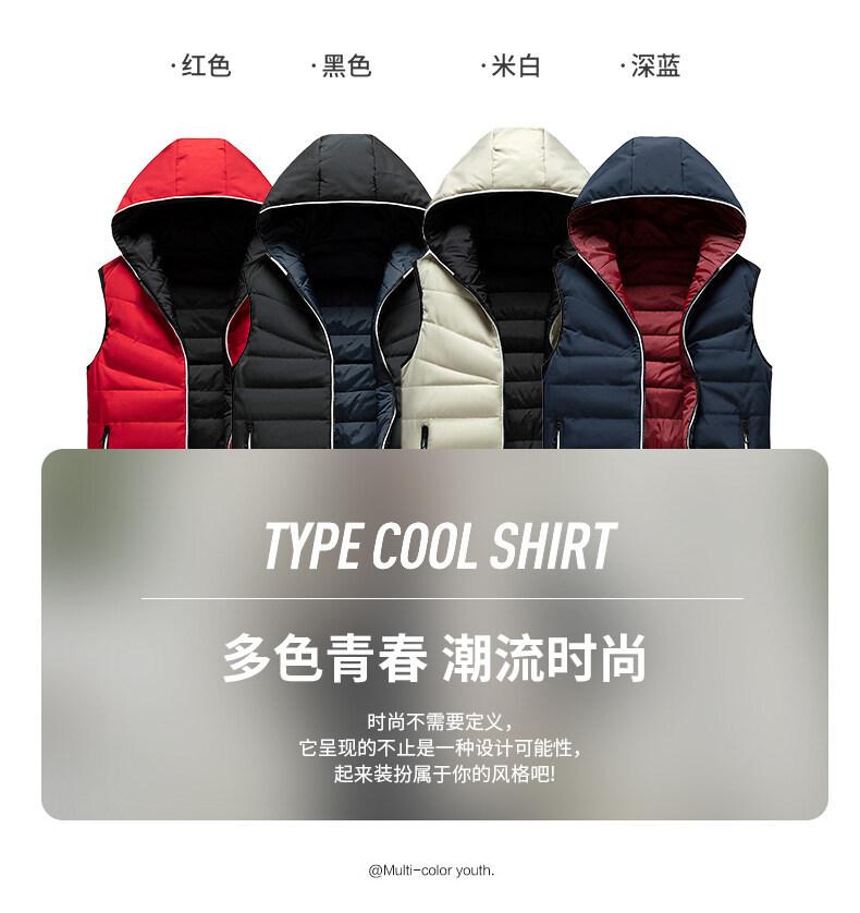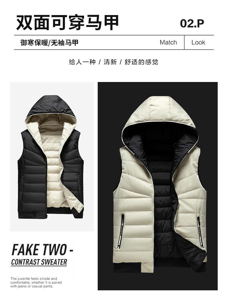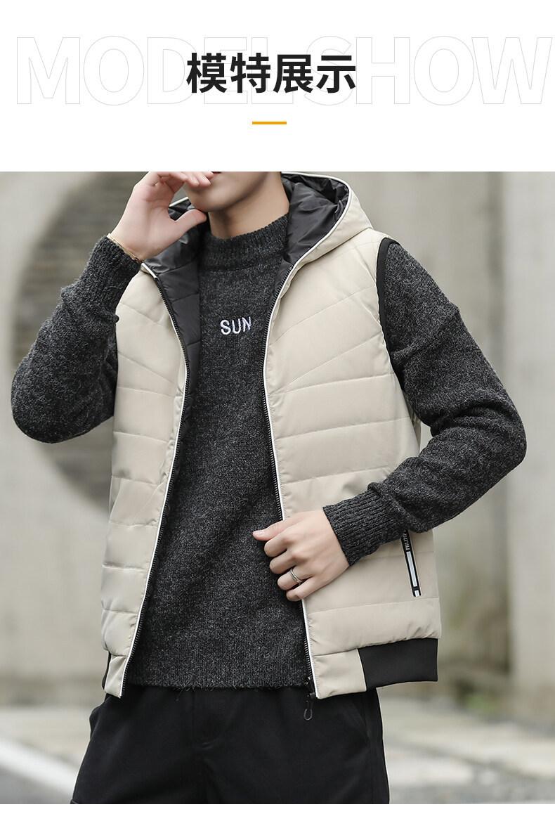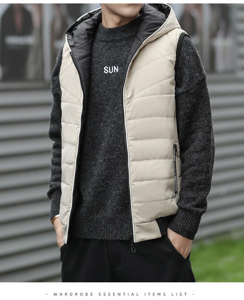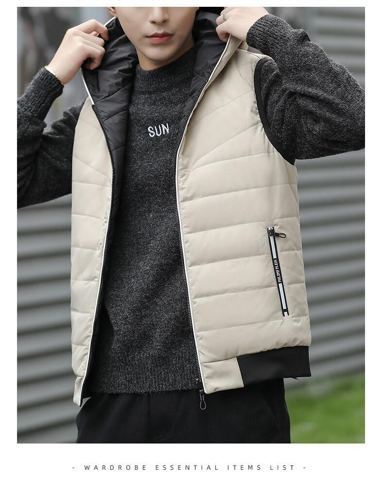 Chaleco con Capucha Doble para Hombre Otoño e Invierno Estilo Coreano Casual Chaqueta Acolchada de Algodón Chaleco Cálido Sin Mangas Chaqueta de Estudiante