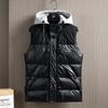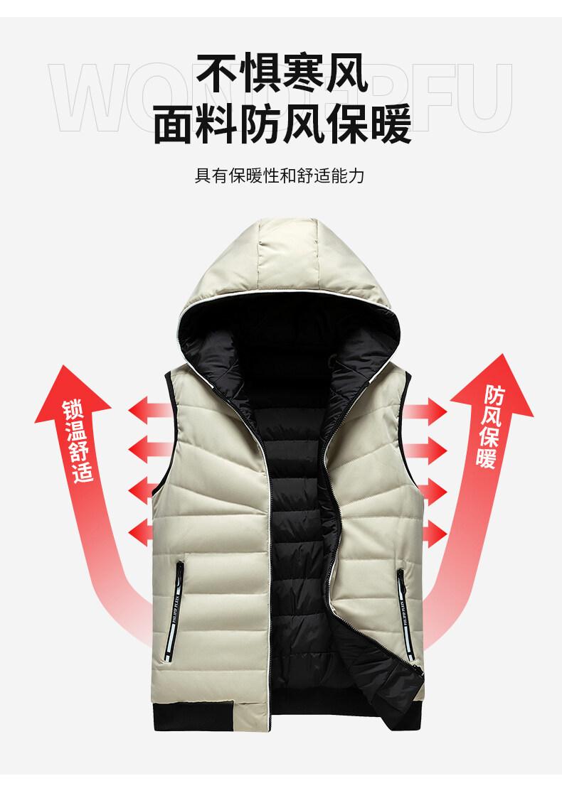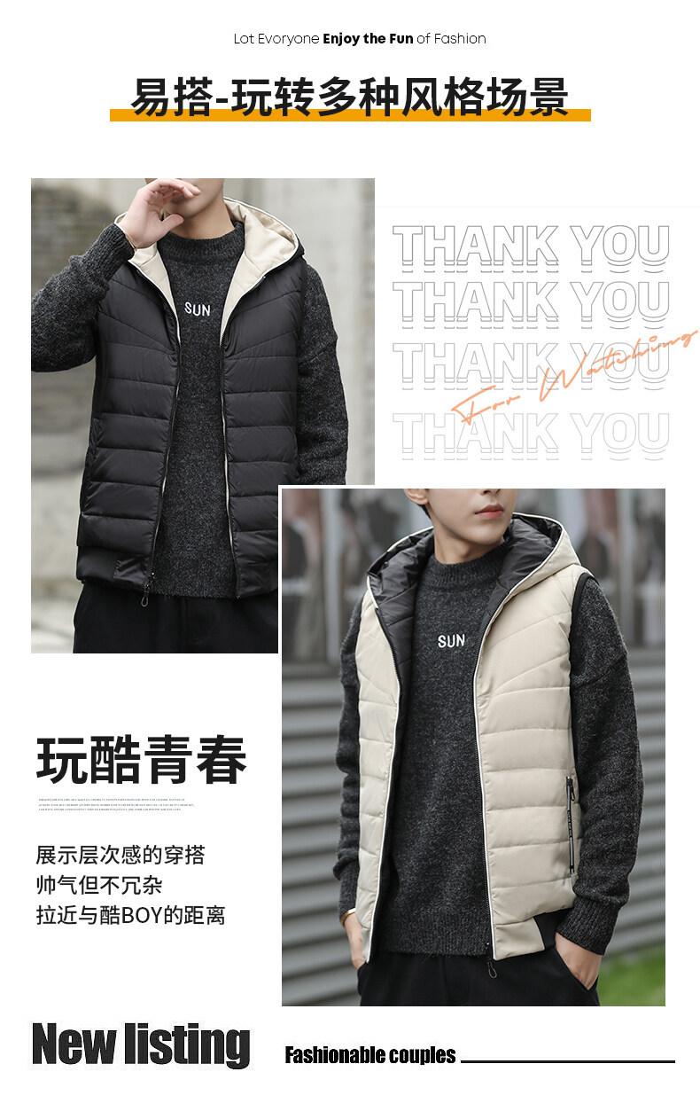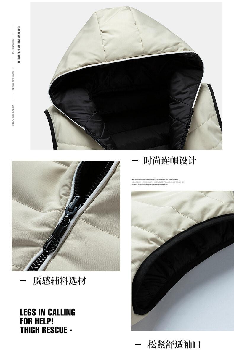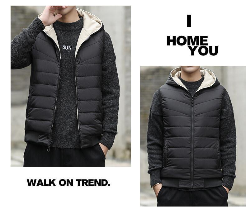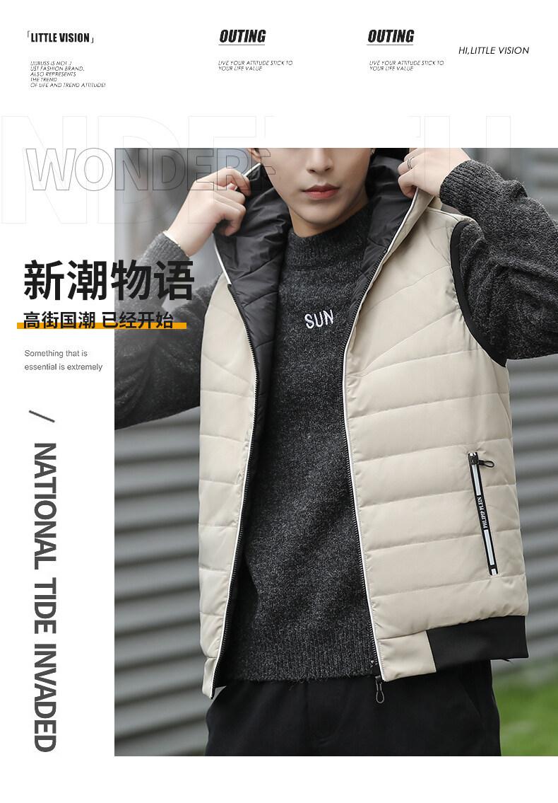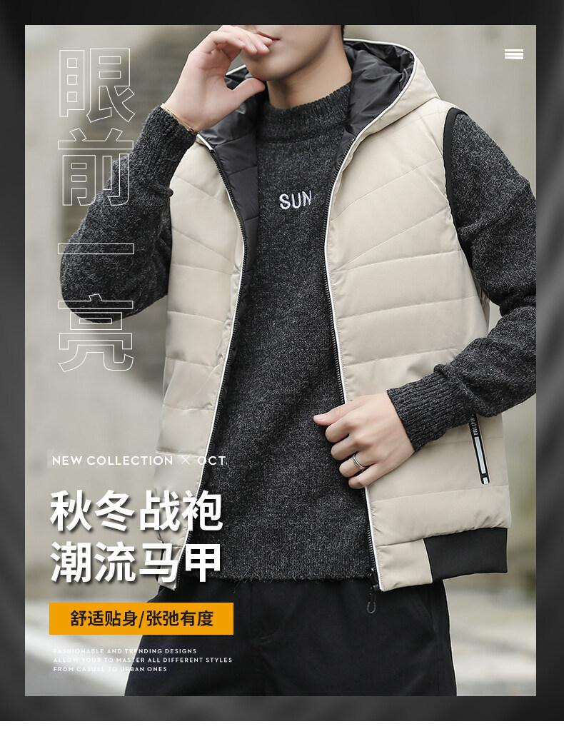 Chaleco con Capucha Doble para Hombre Otoño e Invierno Estilo Coreano Casual Chaqueta Acolchada de Algodón Chaleco Cálido Sin Mangas Chaqueta de Estudiante