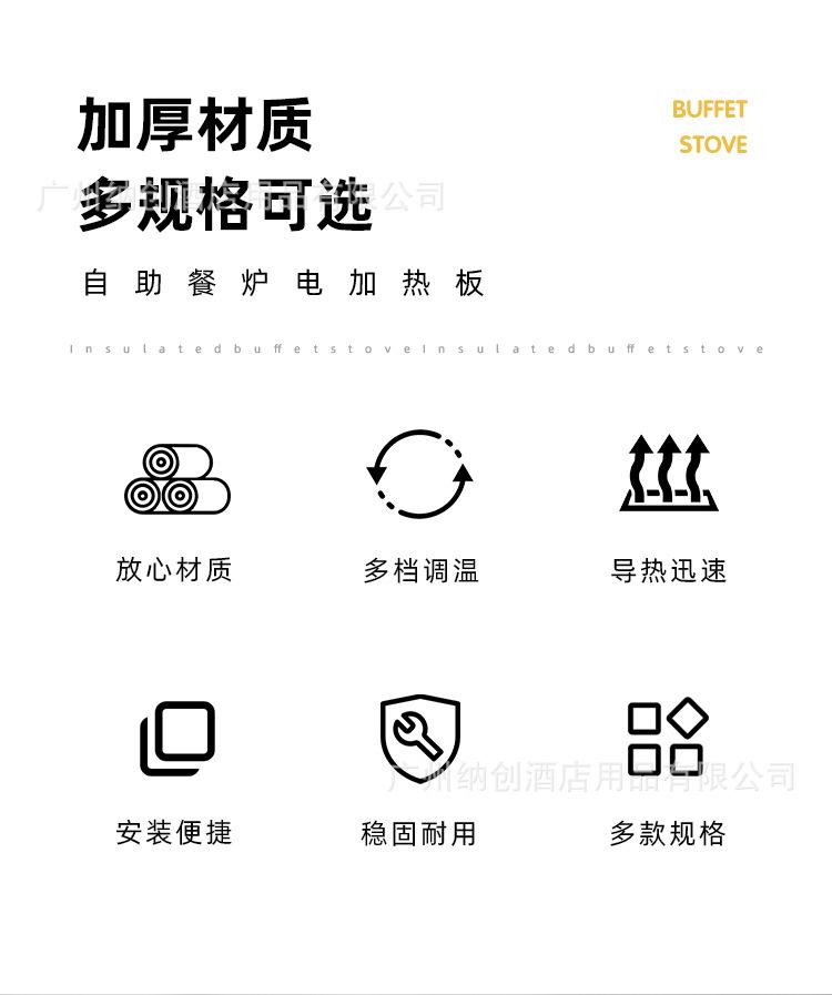 Estufa de aislamiento tipo buffet, placa calefactora eléctrica cuadrada, estufa de buffet de acero inoxidable, placa calefactora de horno Buffy con placa calefactora de control de temperatura
