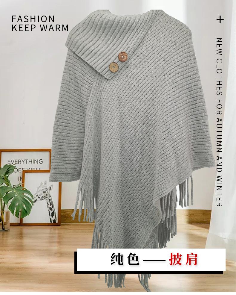 Capa nueva de otoño e invierno para mujer, estilo coreano, moda, combina con todo, suéter de punto con borlas, chal grueso de color sólido con botones exteriores