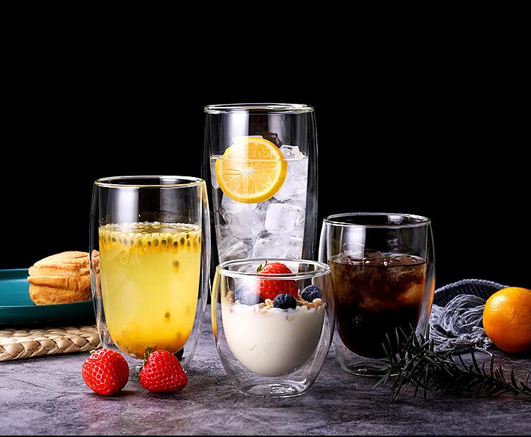 Vaso de agua con aislamiento de doble capa de vidrio transparente de doble capa Vaso de leche Vaso de agua de vidrio creativo Vaso de leche para jugo