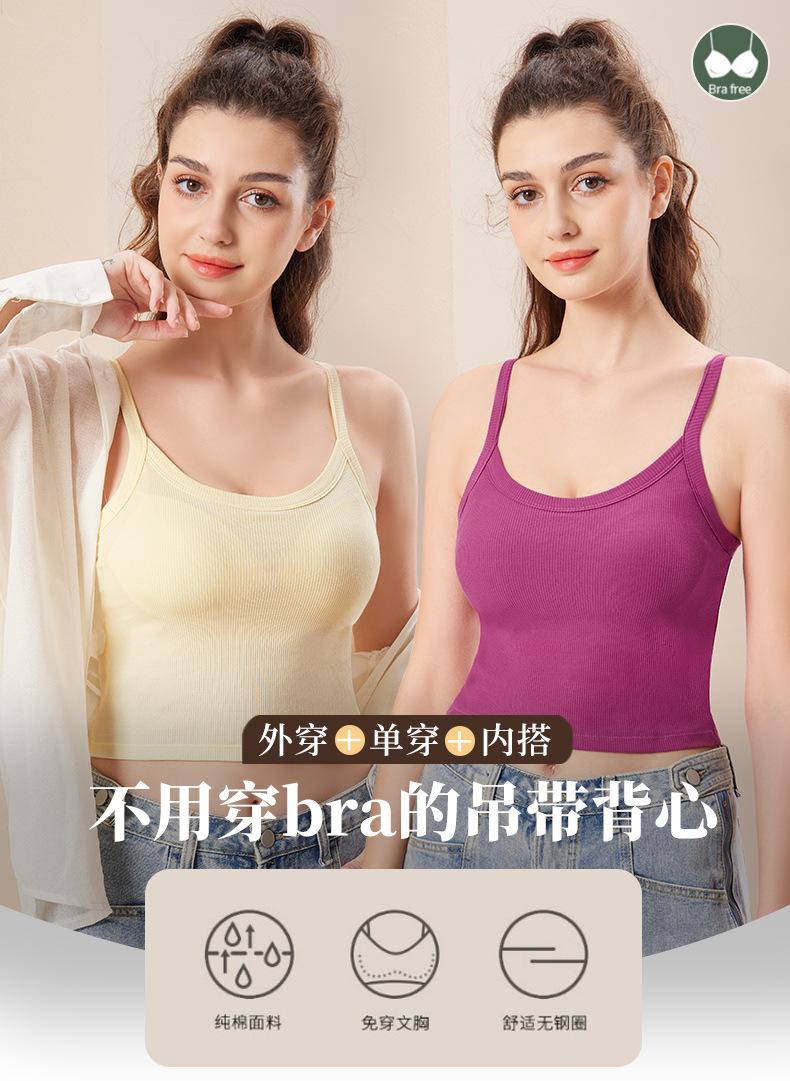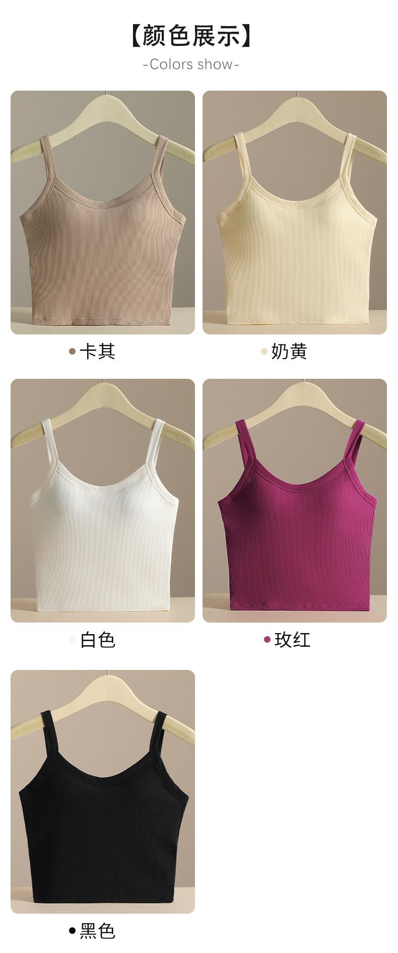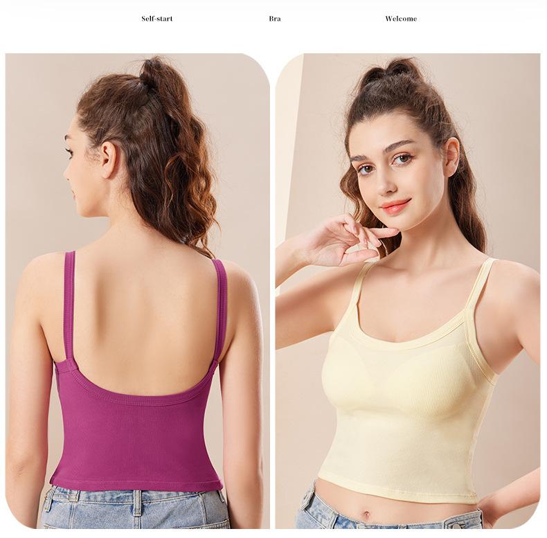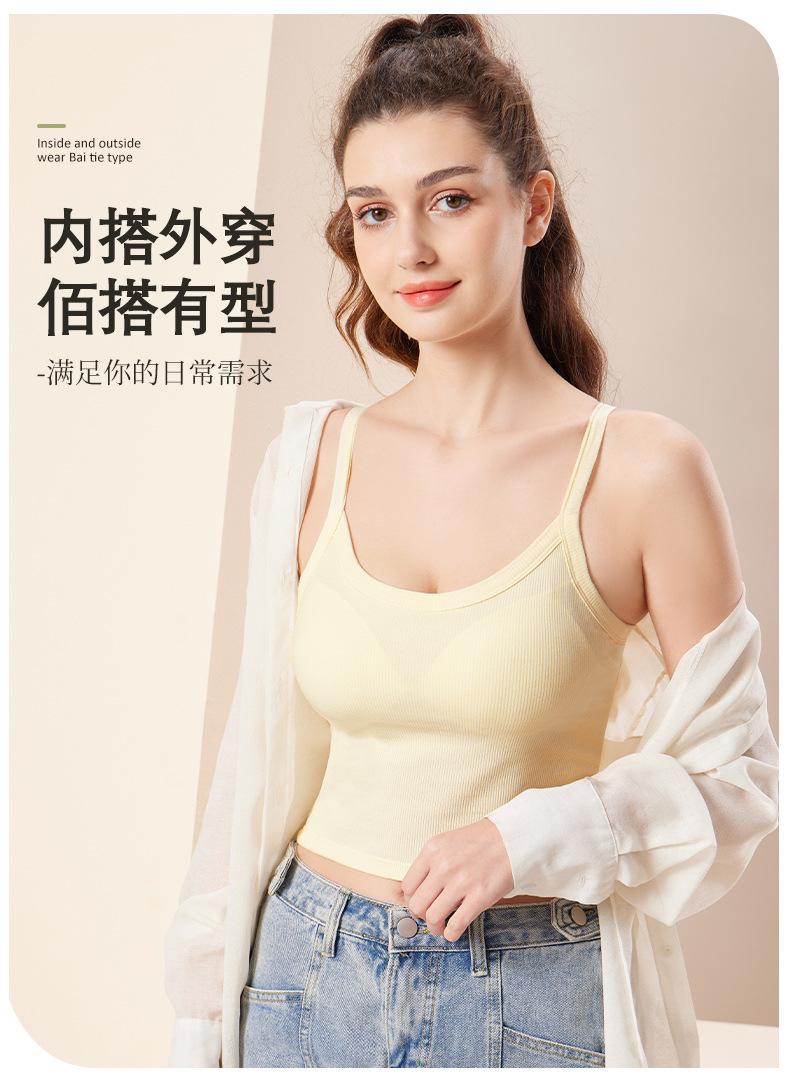 Top de verano de algodón puro con tirantes finos y almohadilla para el pecho, de una pieza, pequeño, sexy, con tirantes para el ombligo, ideal para uso interior y exterior en Internet.