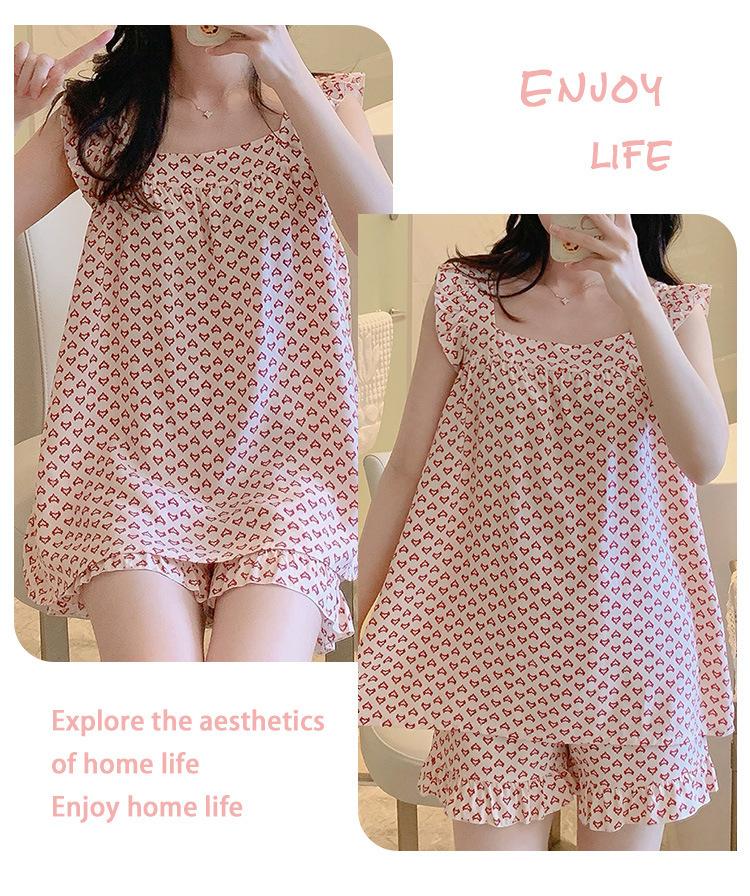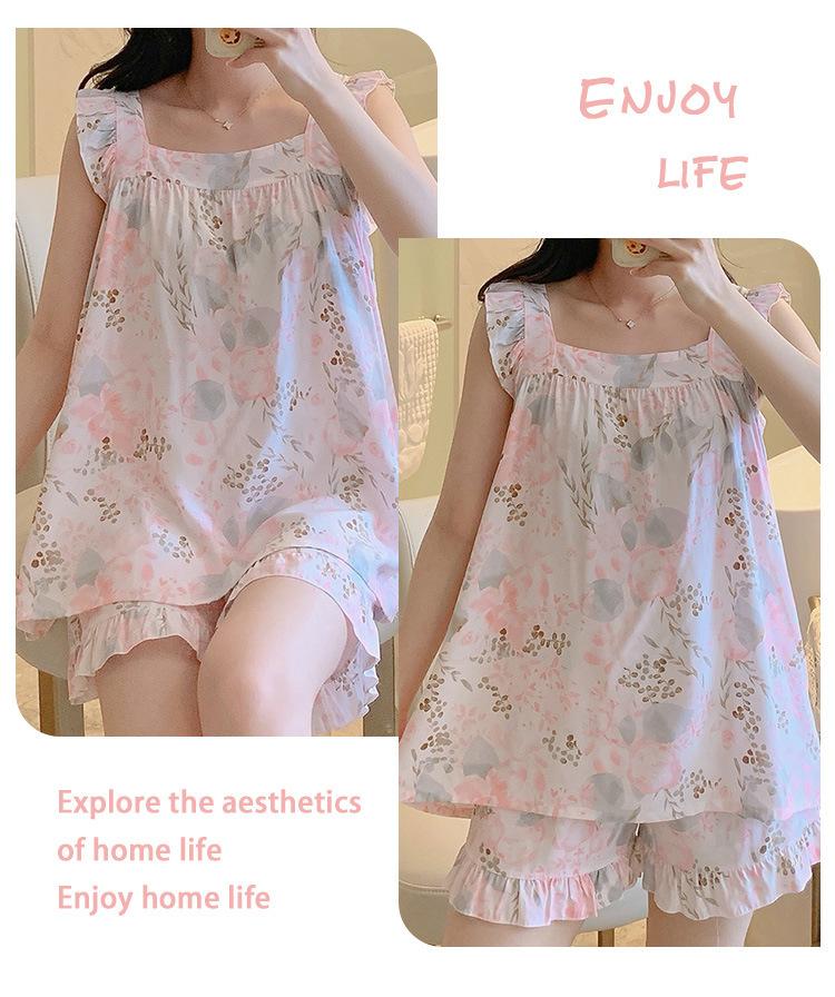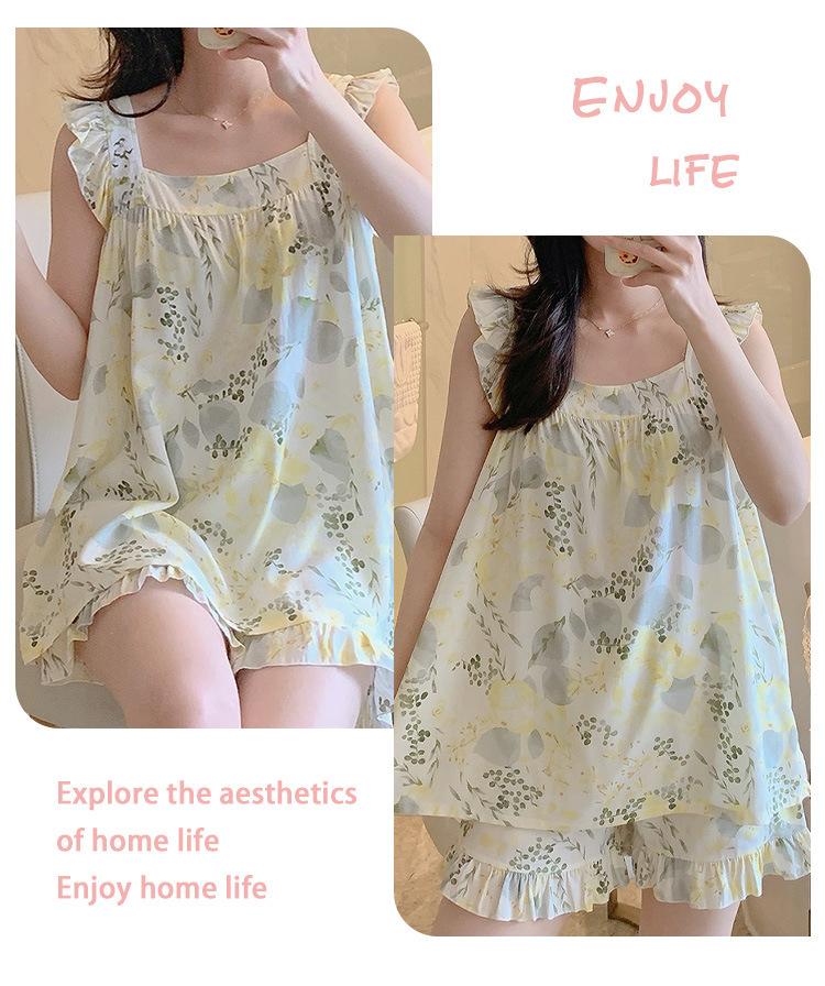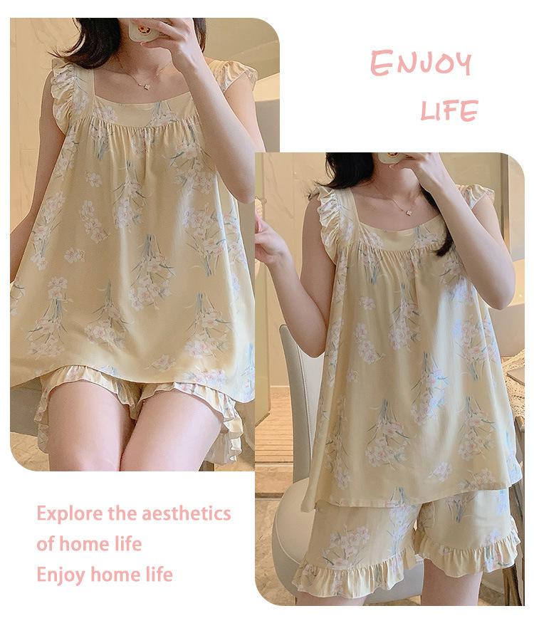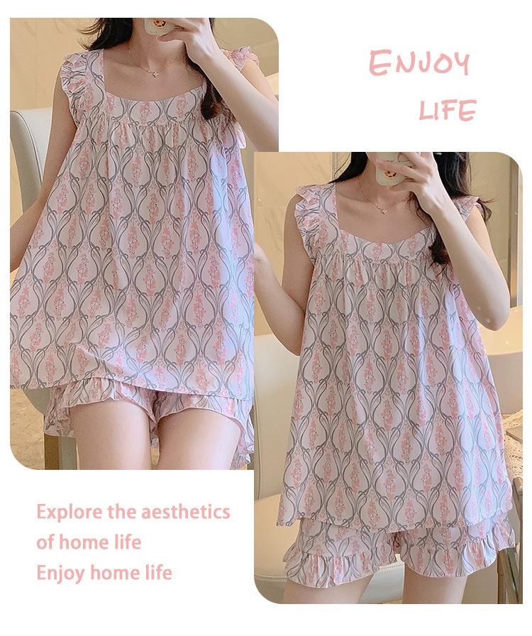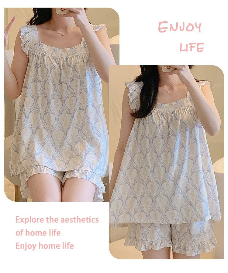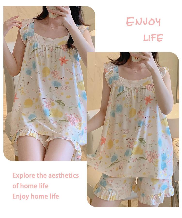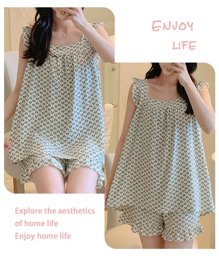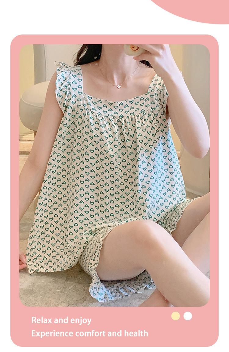 Pijama de algodón y seda para mujer, novedad de verano, con estampado dulce, para estudiantes al aire libre, traje corto fino sin mangas de algodón y seda, ropa para el hogar