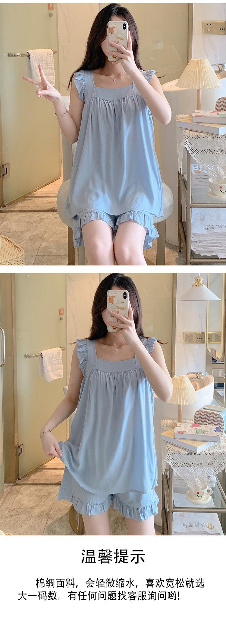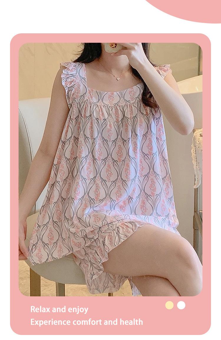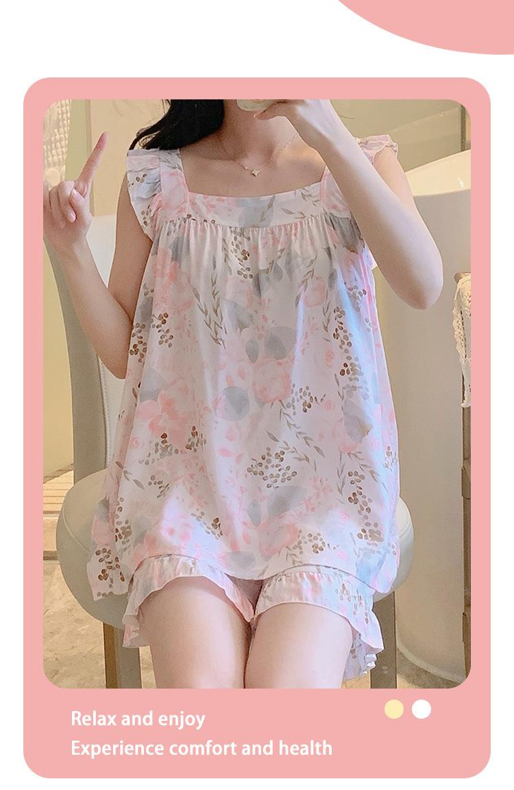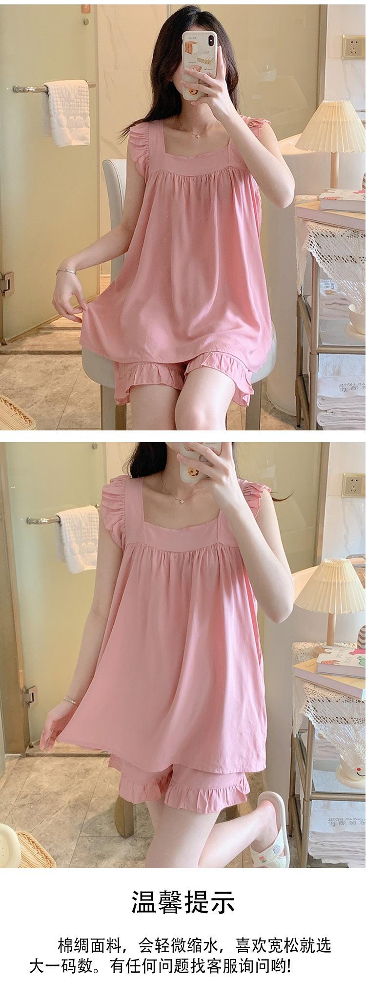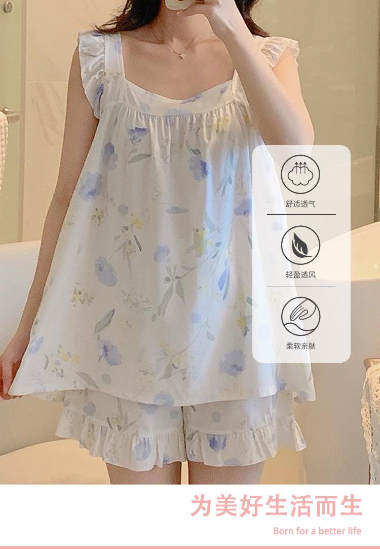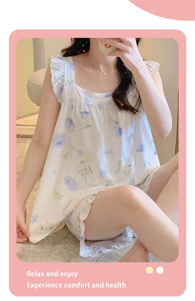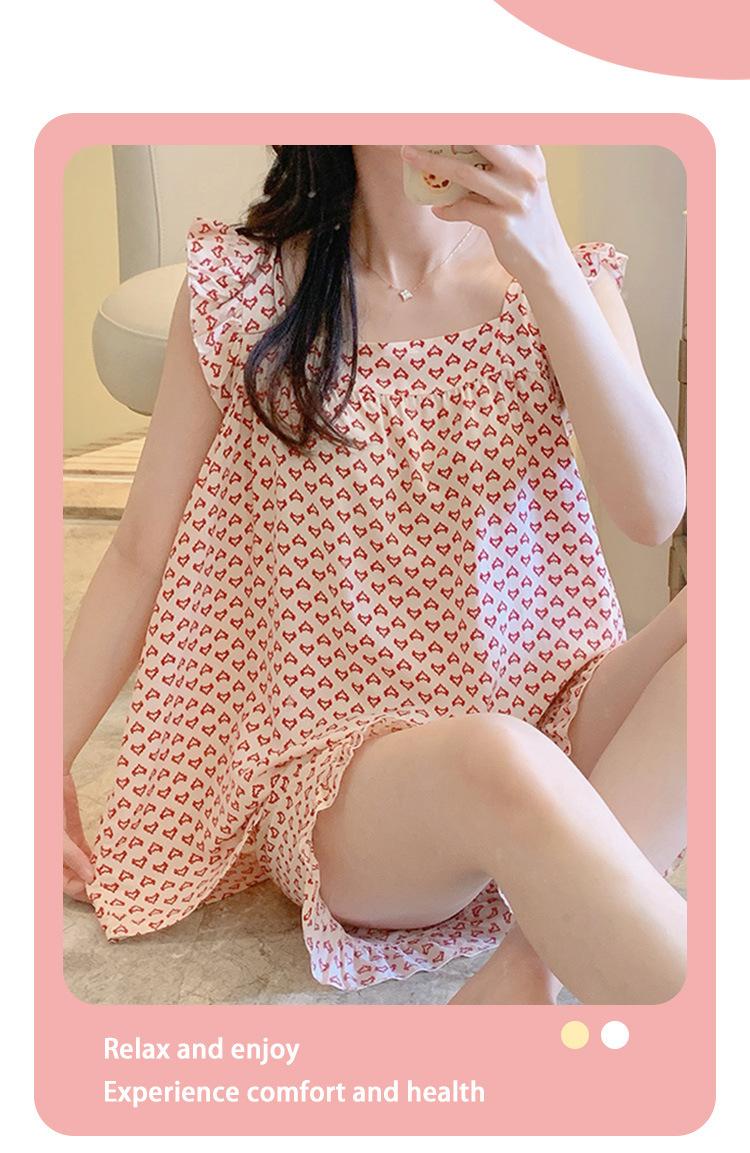 Pijama de algodón y seda para mujer, novedad de verano, con estampado dulce, para estudiantes al aire libre, traje corto fino sin mangas de algodón y seda, ropa para el hogar