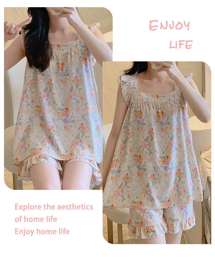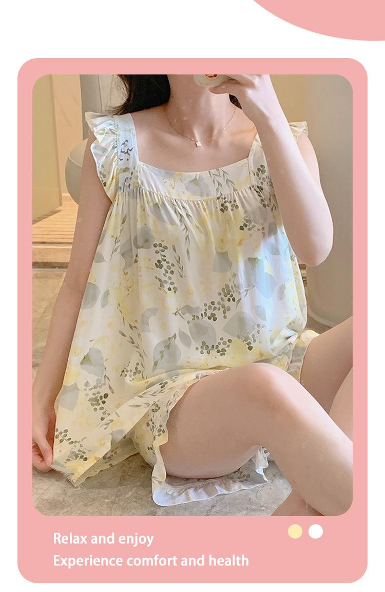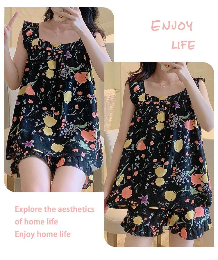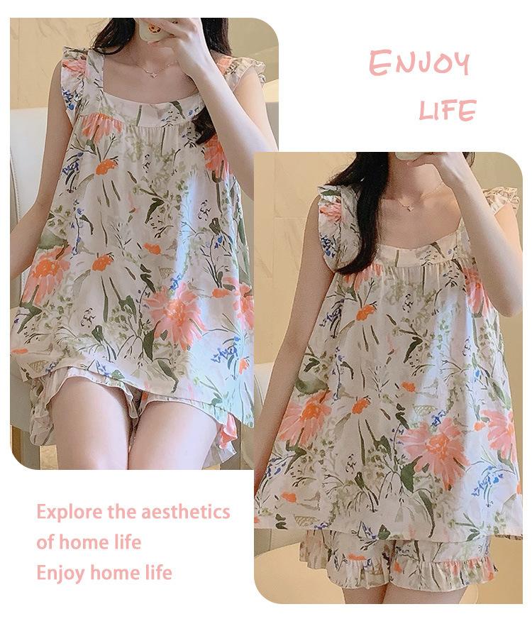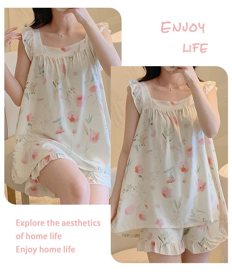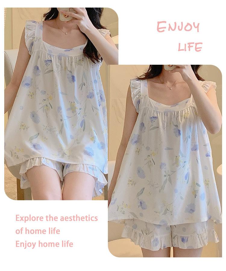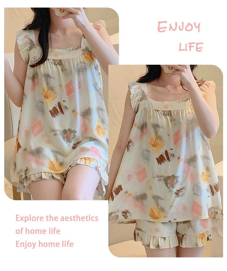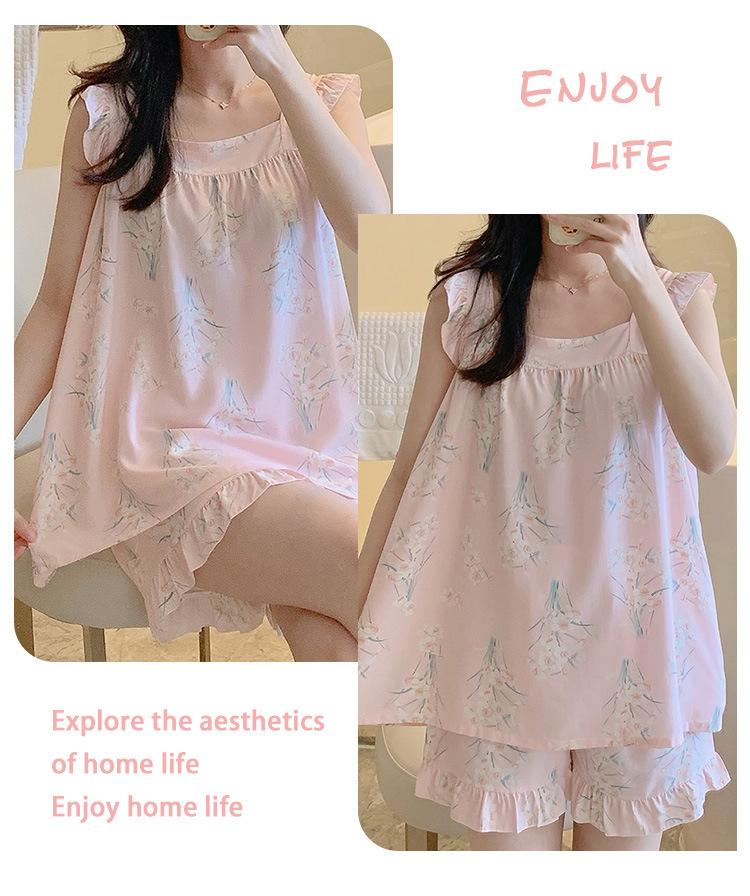 Pijama de algodón y seda para mujer, novedad de verano, con estampado dulce, para estudiantes al aire libre, traje corto fino sin mangas de algodón y seda, ropa para el hogar