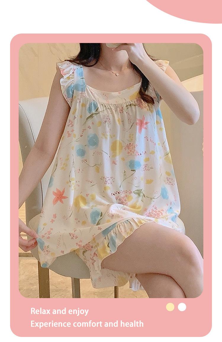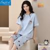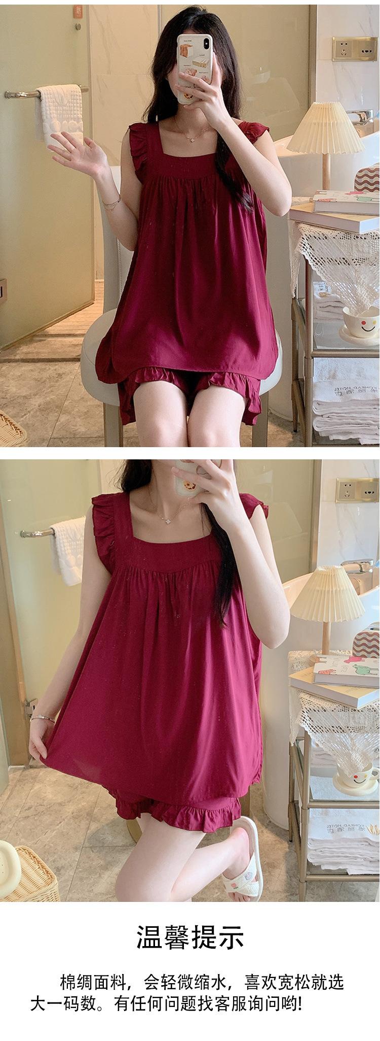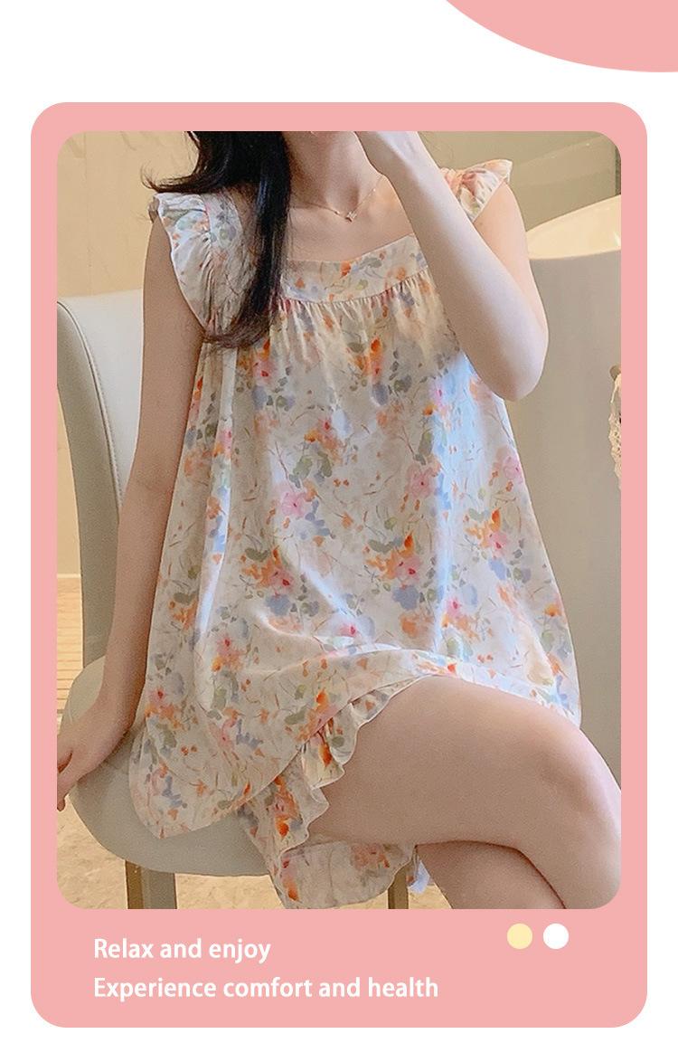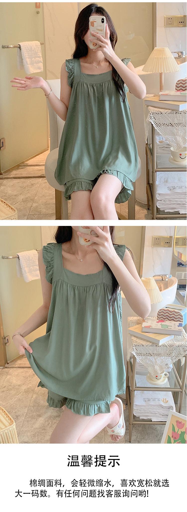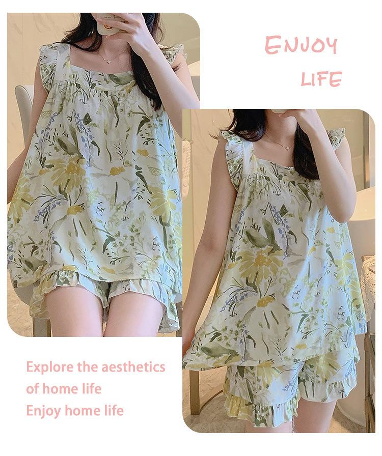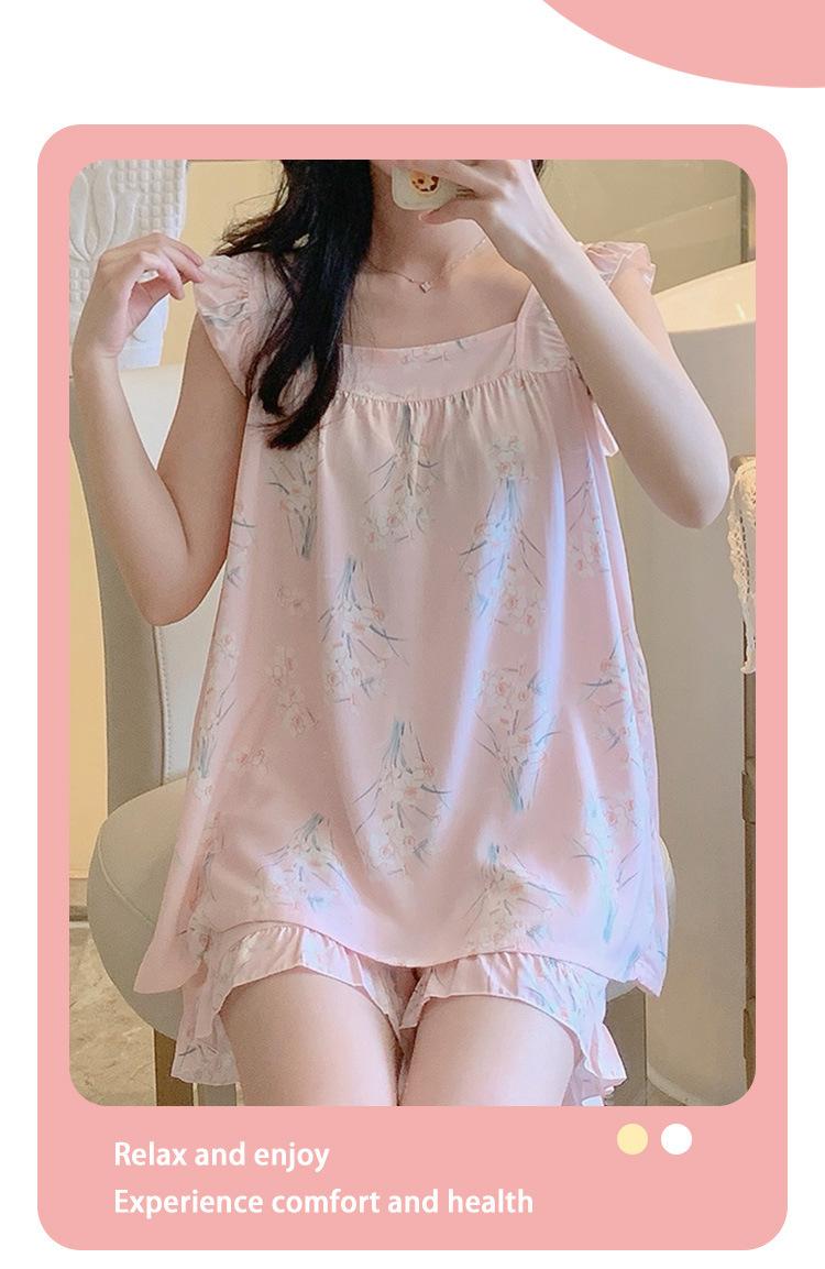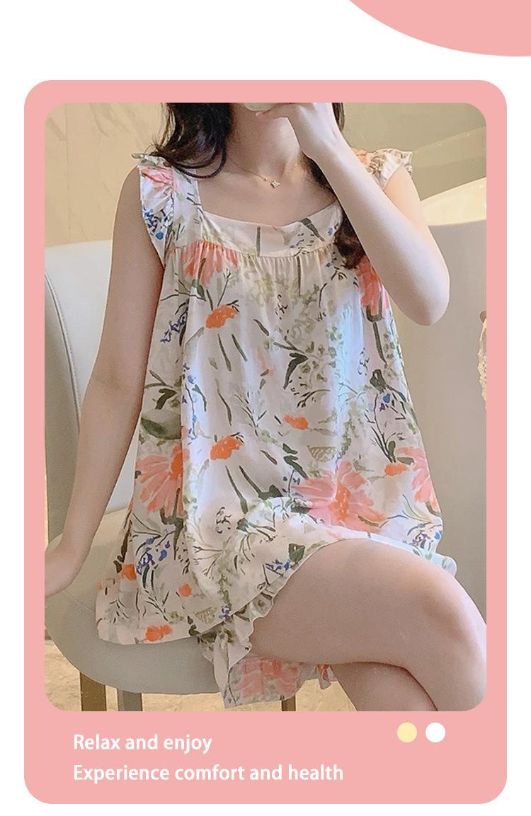 Pijama de algodón y seda para mujer, novedad de verano, con estampado dulce, para estudiantes al aire libre, traje corto fino sin mangas de algodón y seda, ropa para el hogar