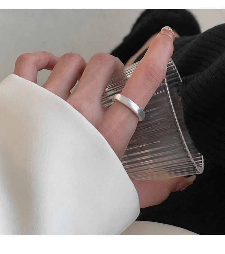 Anillo de Apertura de Dibujo de Alambre Simple para Mujer, Versátil, Personalizado, Moda Nicho Ins, Plata S925, Anillo de Apertura, Anillo para Dedo de Comida, Trendy