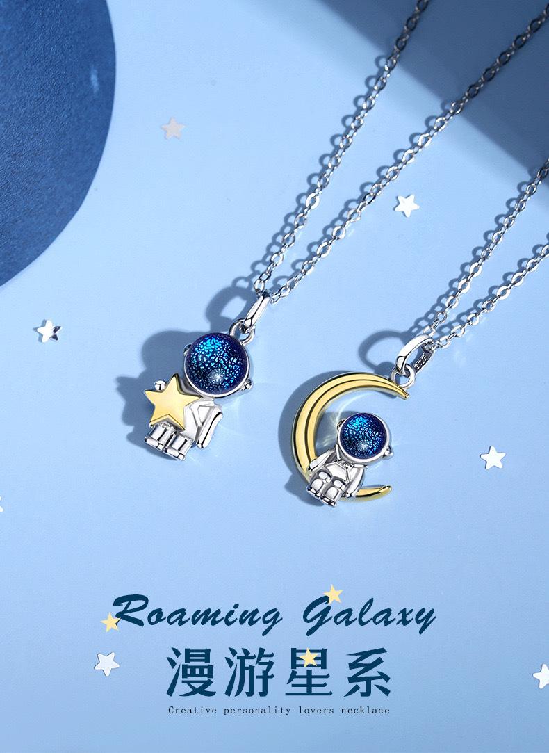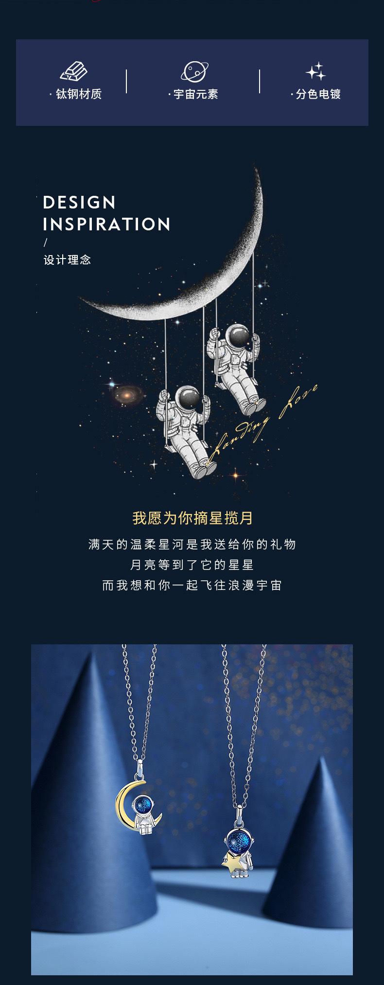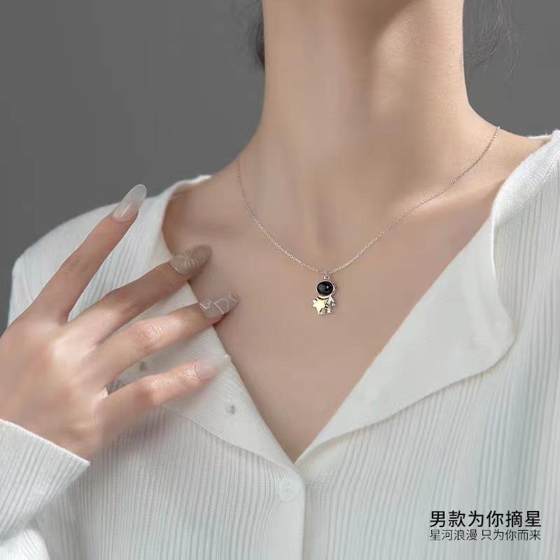 Collar de pareja de astronautas para mujer, colgante de astronauta para hombre y mujer, cadena de clavícula, regalo de estilo Mori simple, cadena de acero de titanio