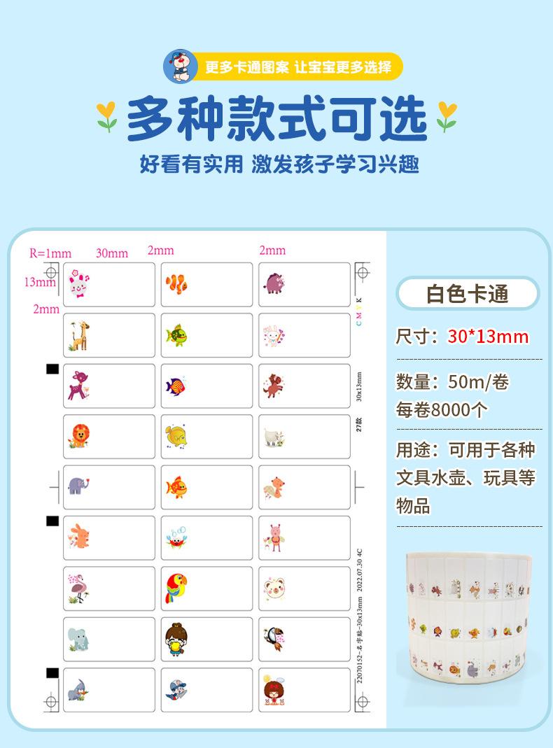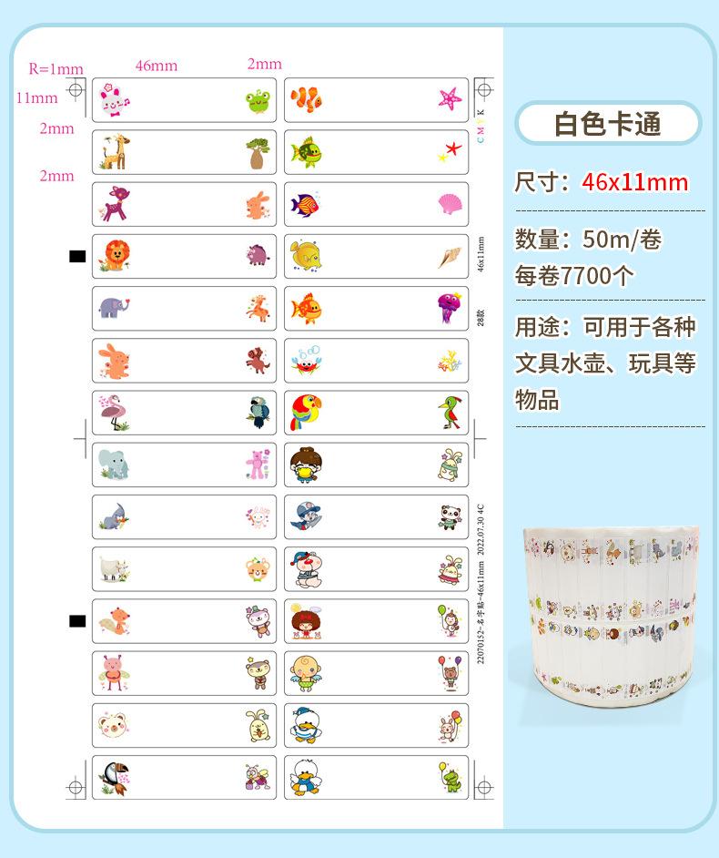 Pegatinas con nombre de generación puntual, rollo impermeable, papel adhesivo, pegatinas con dibujos animados para marcar el nombre del estudiante.