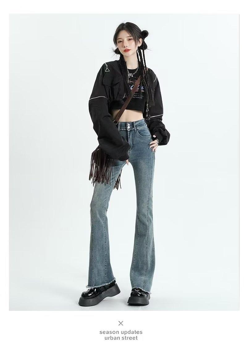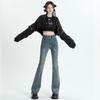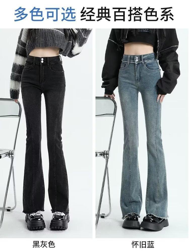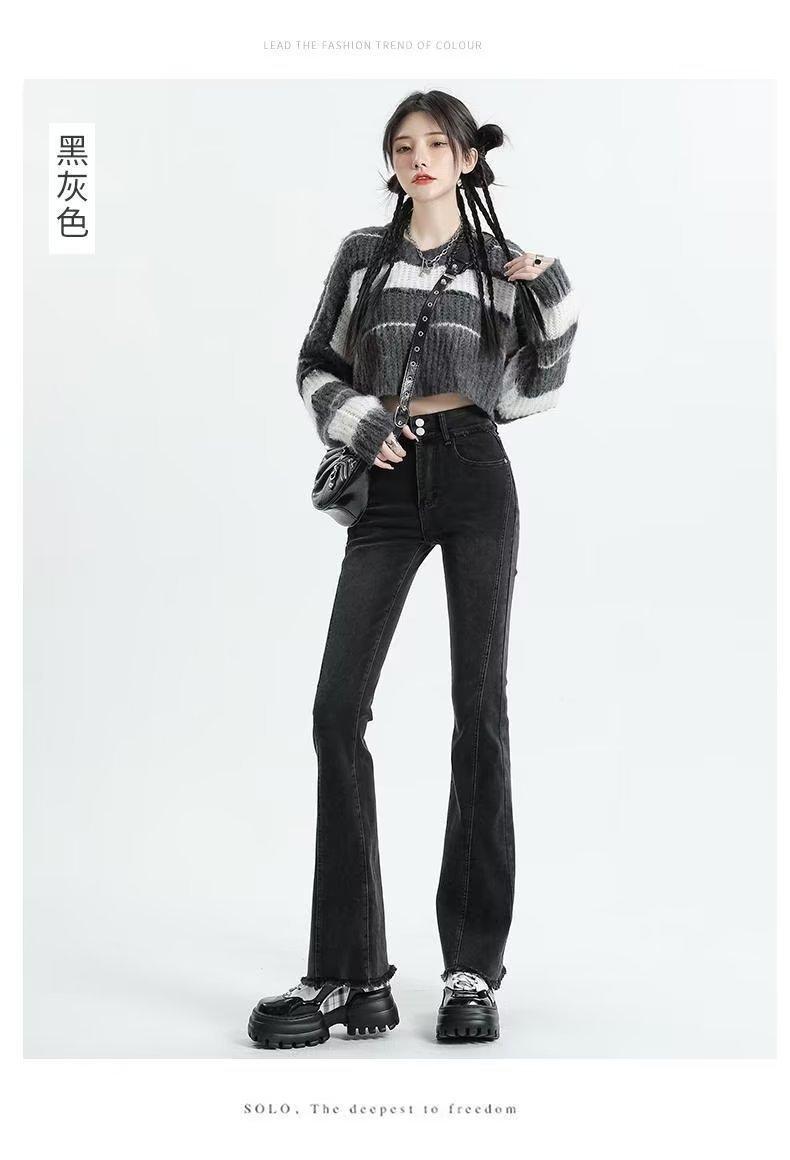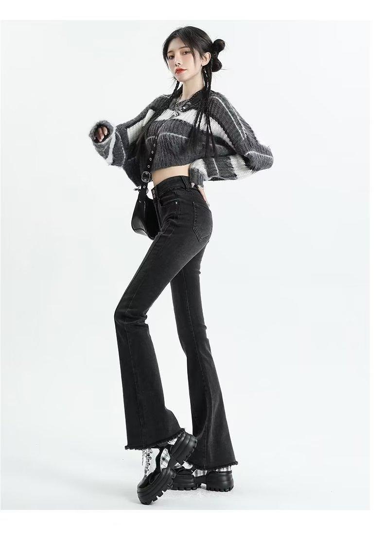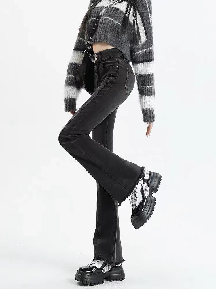 Vaqueros negros deshilachados micro acampanados para mujer Primavera y Otoño 2024 nuevos pantalones de herradura adelgazantes de cintura alta para mujer primavera y verano