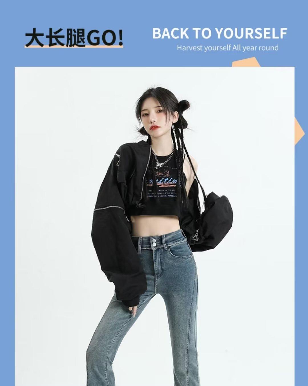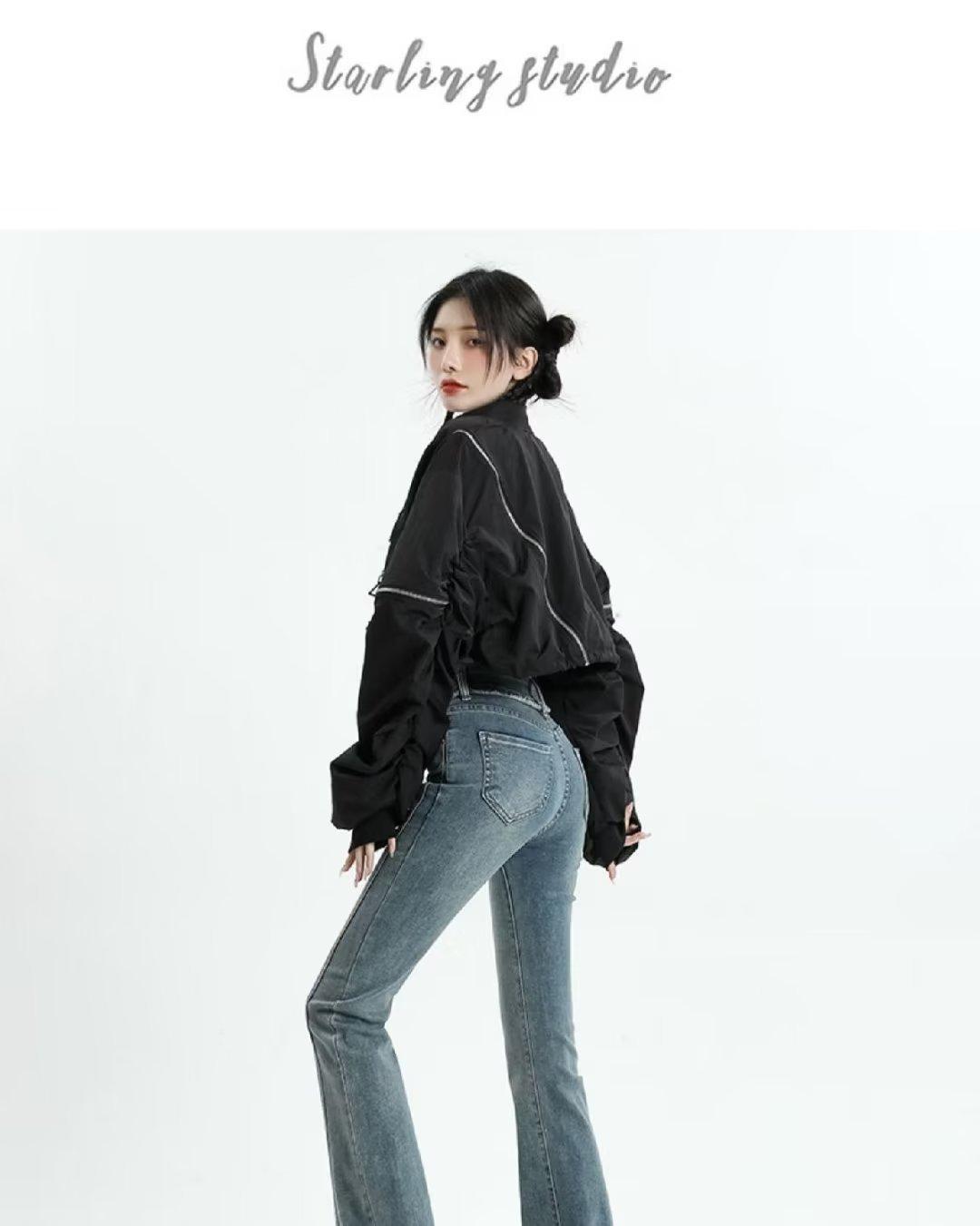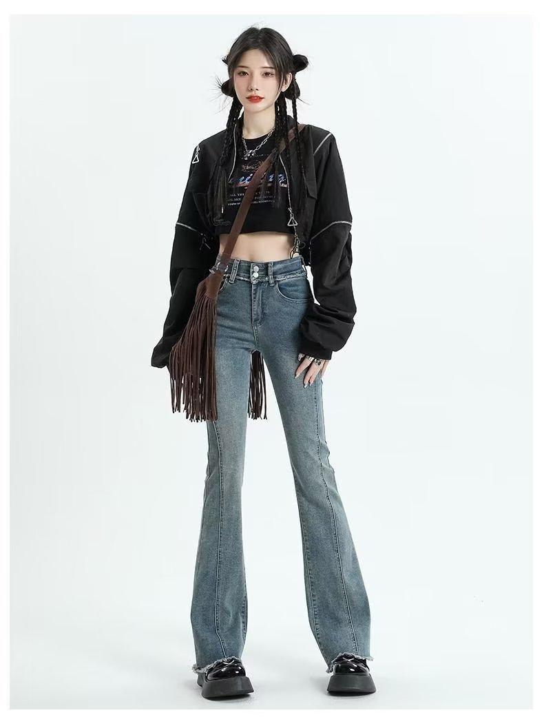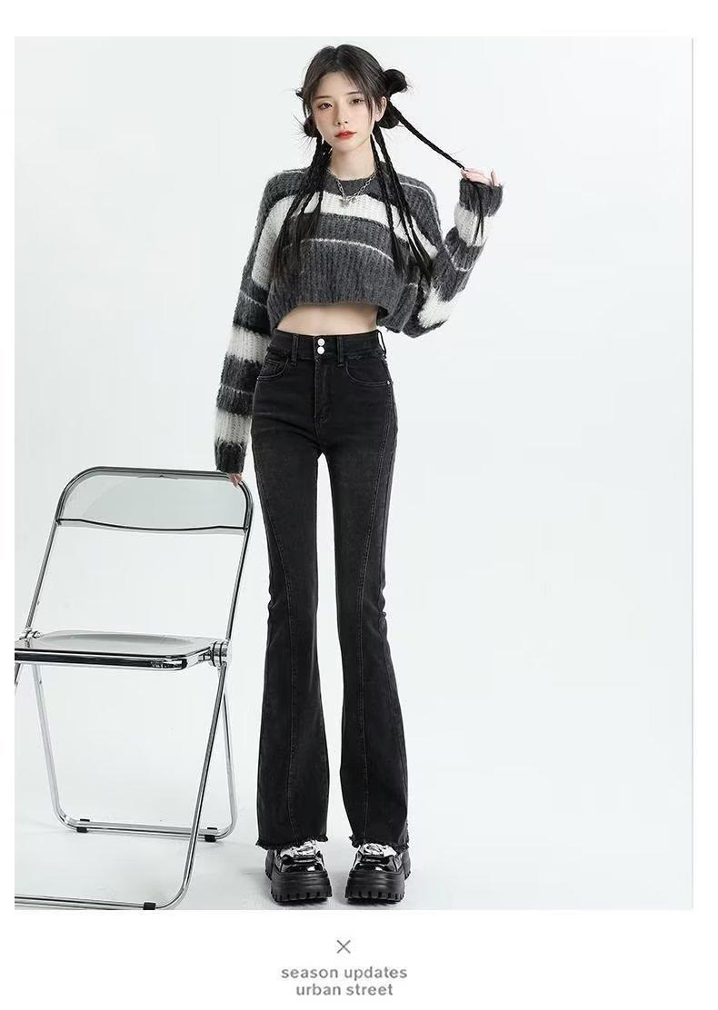 Vaqueros negros deshilachados micro acampanados para mujer Primavera y Otoño 2024 nuevos pantalones de herradura adelgazantes de cintura alta para mujer primavera y verano