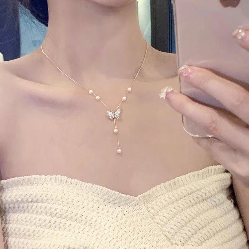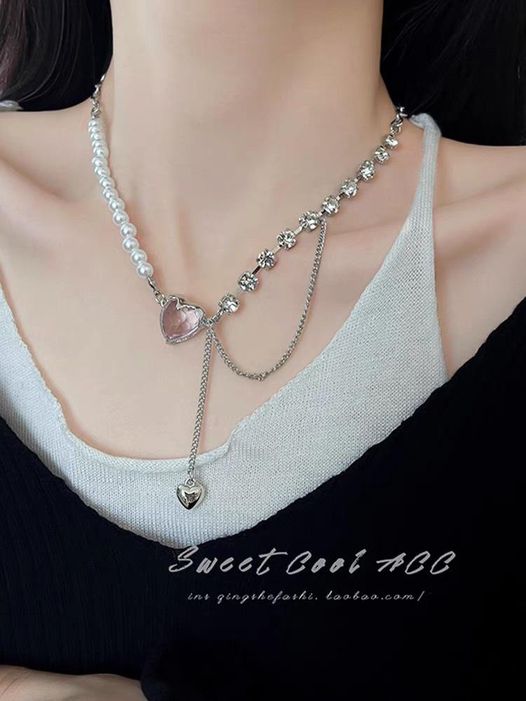 Nueva Celebridad de Internet Joker Temperamento de Hada Joyería Coreana Collar Cadena para el Cuello Nicho Diamante Amor Cadena Clavícula Venta al por Mayor