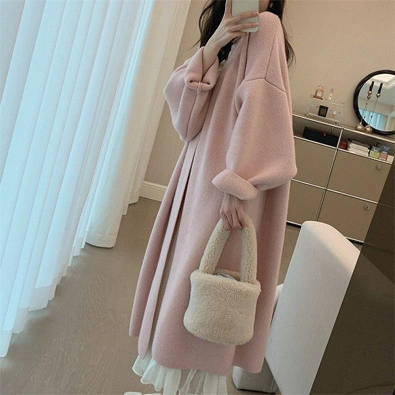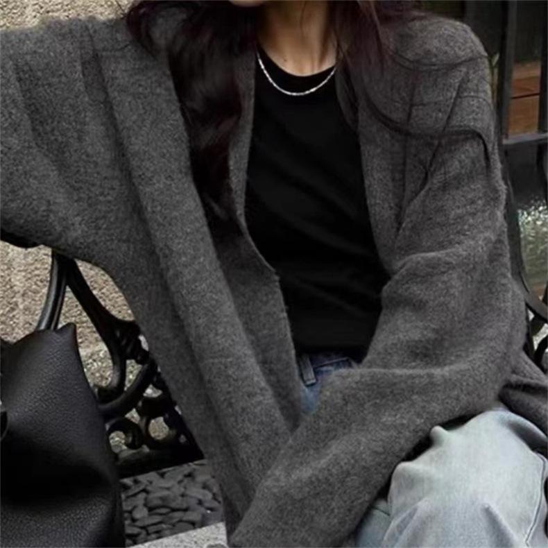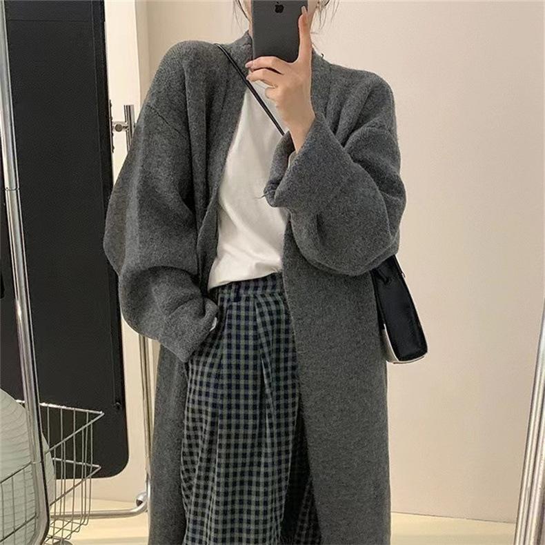 Abrigo de suéter de longitud media para mujer, diseño retro japonés, estilo perezoso, suelto, otoño 2023, nuevo cárdigan de punto
