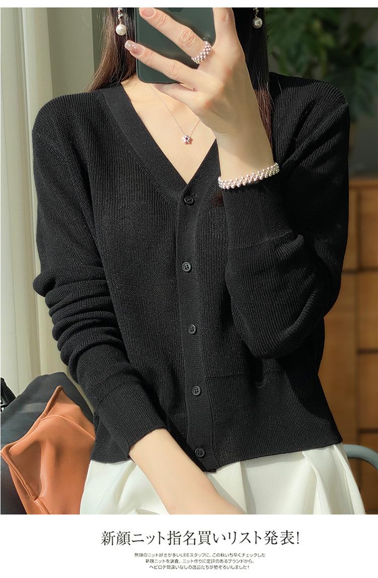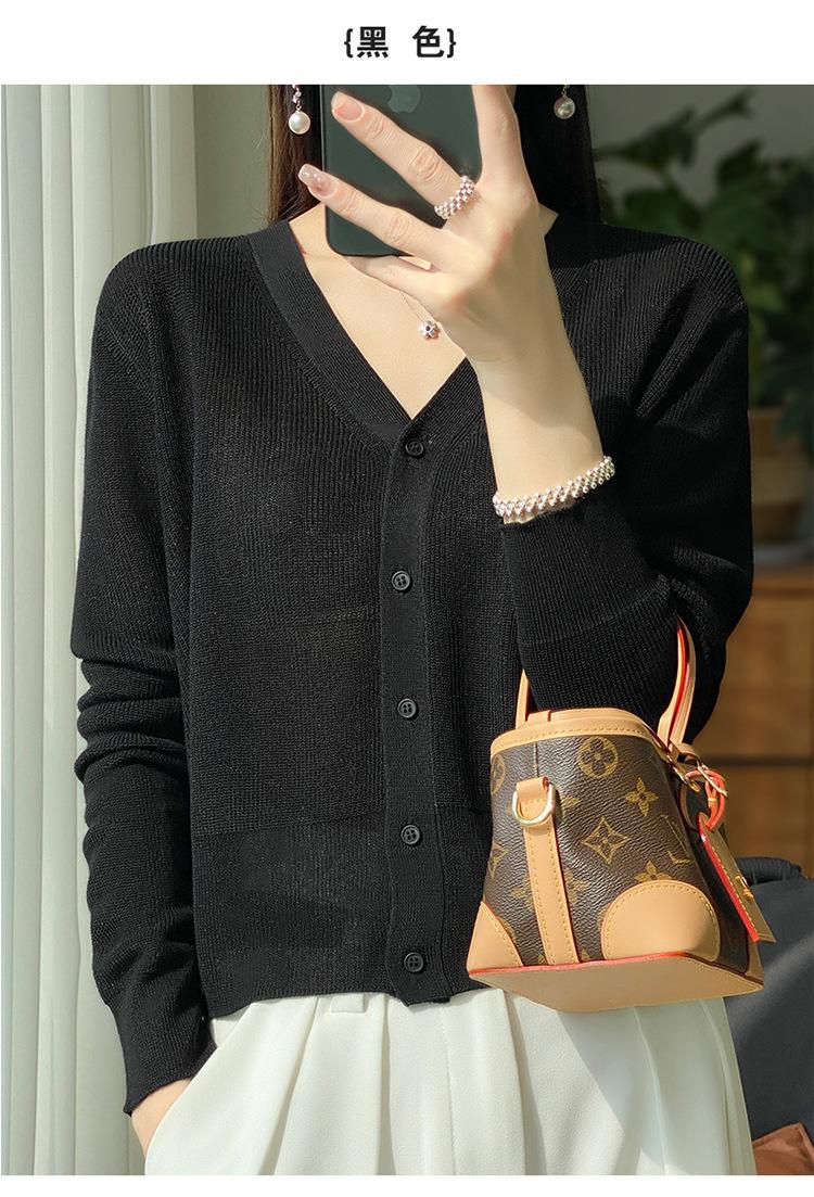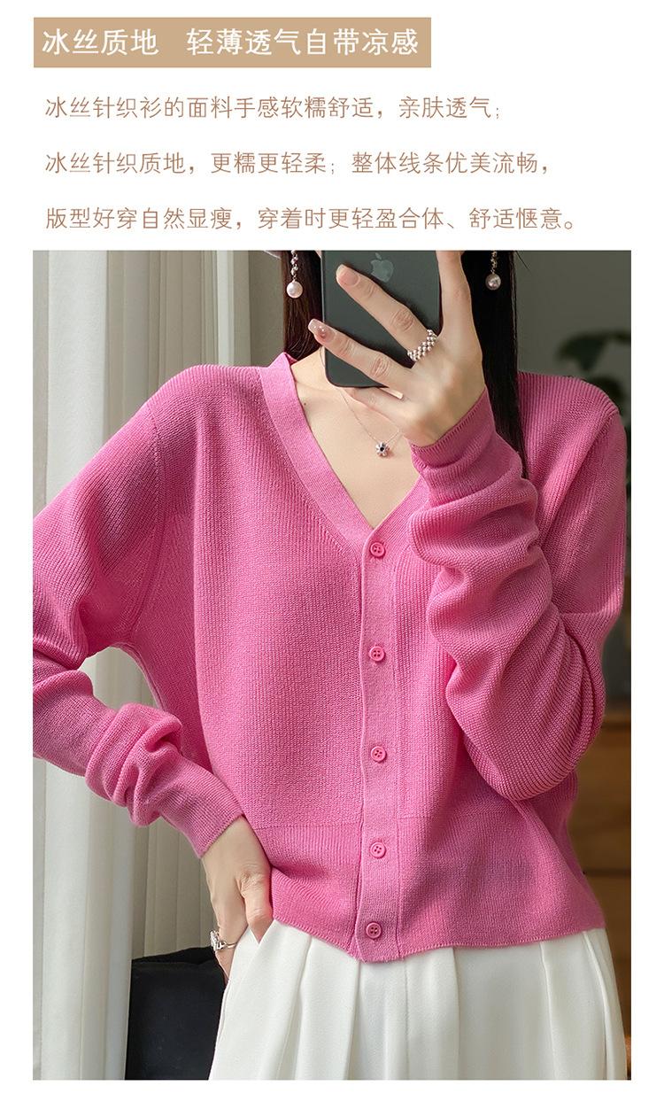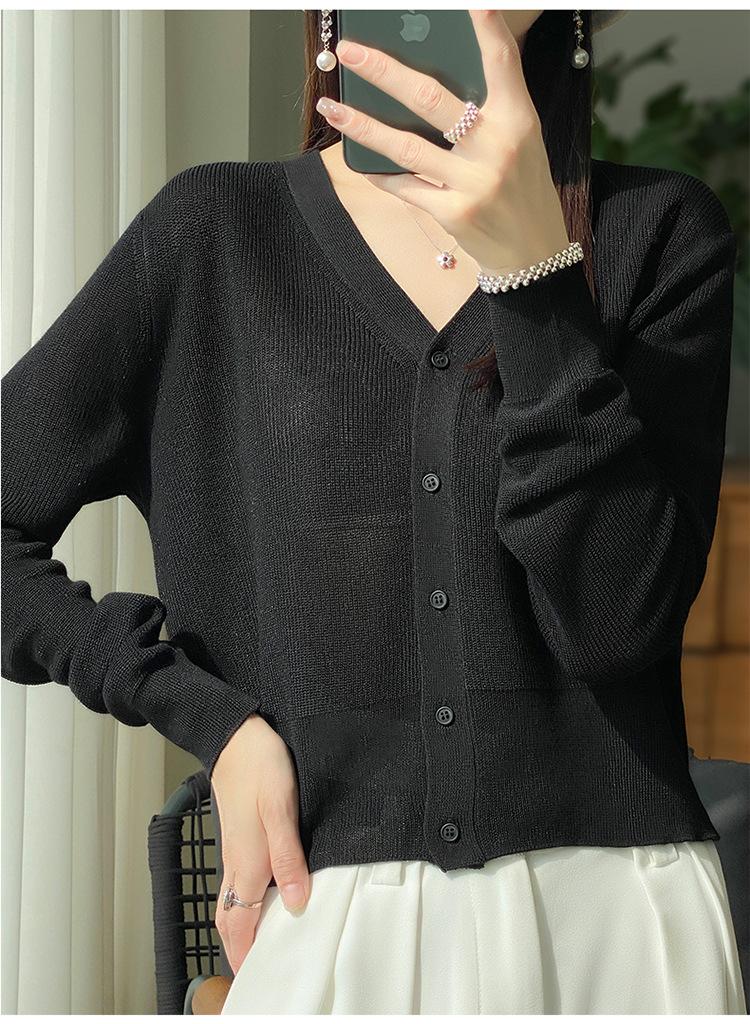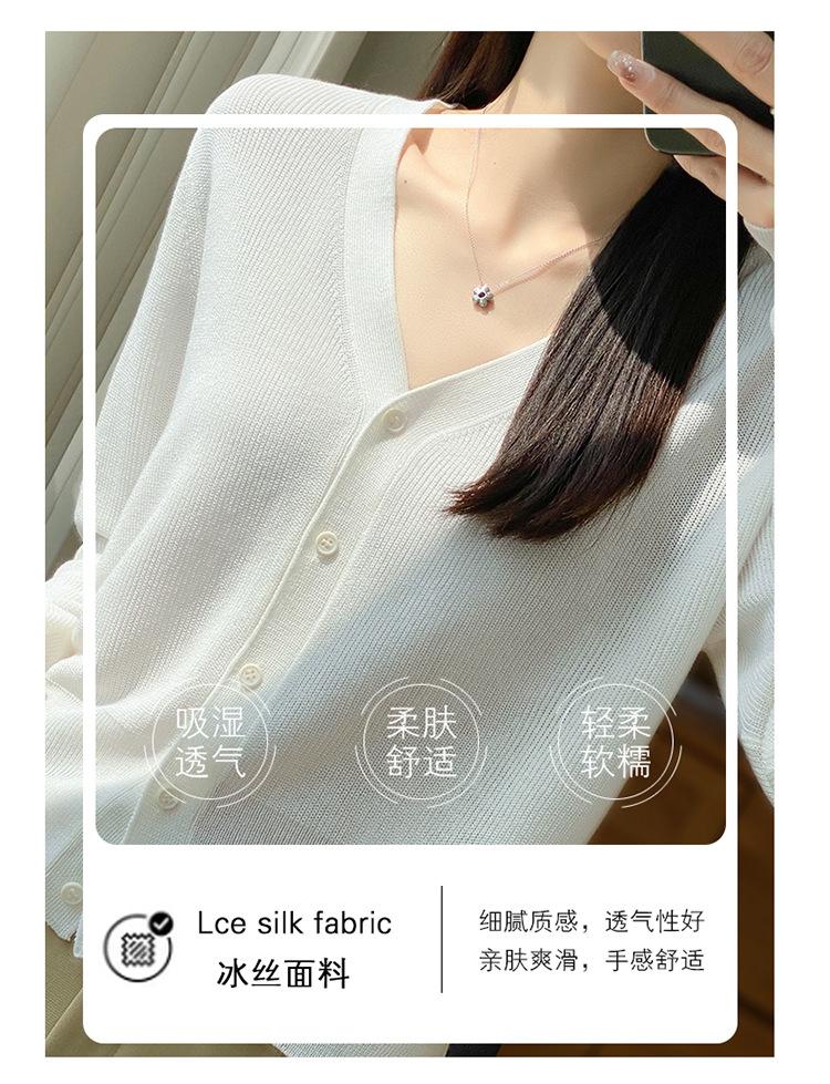 Cárdigan de punto fino de primavera y verano con cuello en V, manga larga, suelto, de seda helada, con aire acondicionado, protector solar, chaqueta holgada que combina con todo.