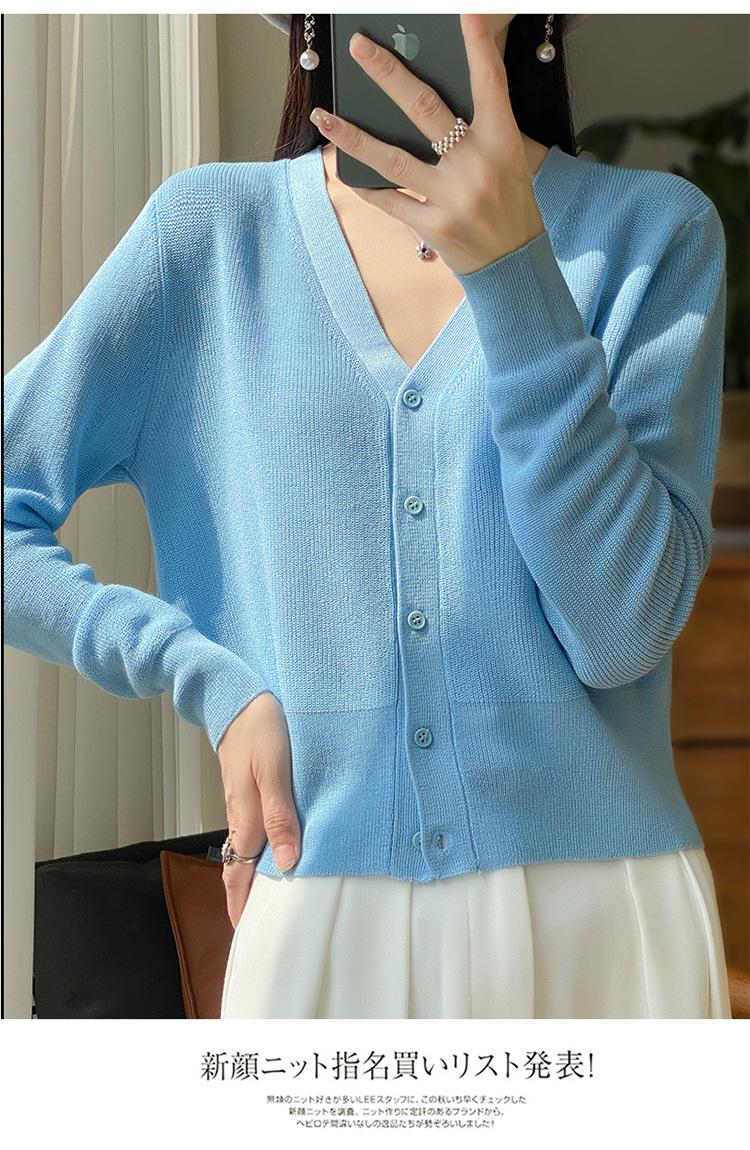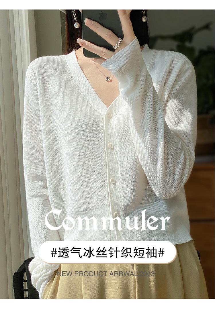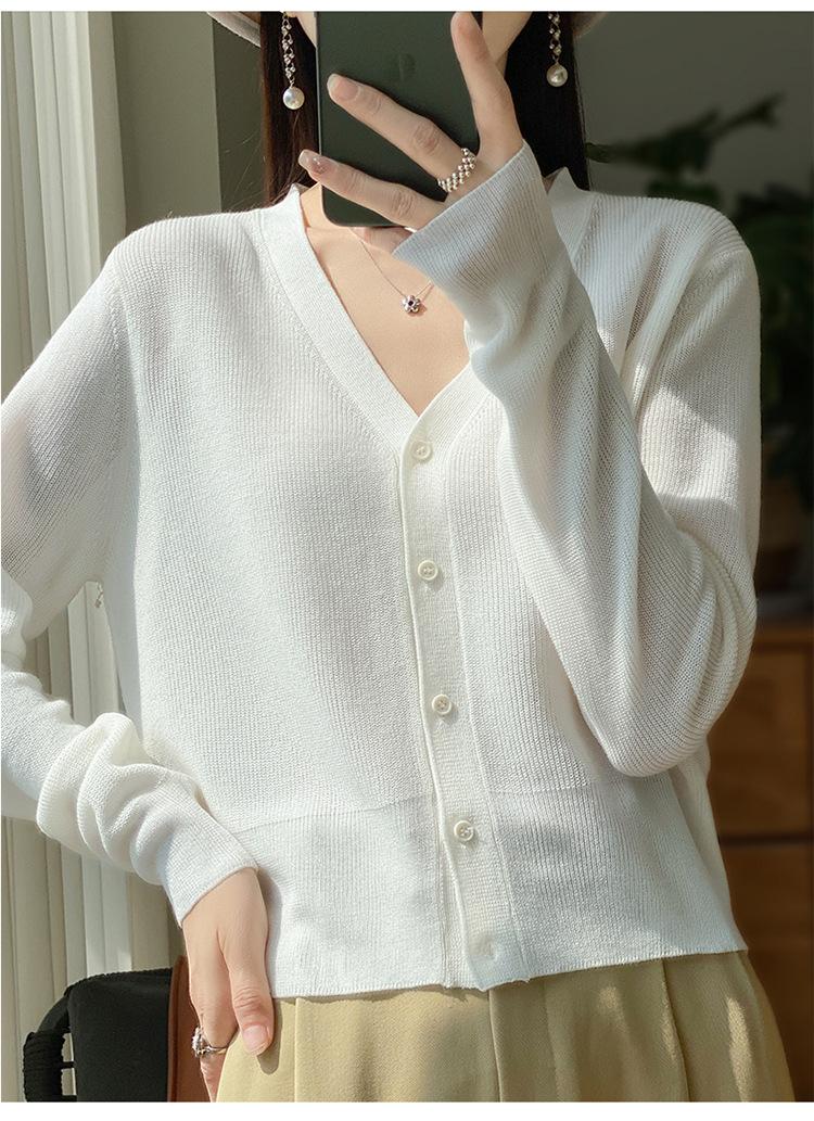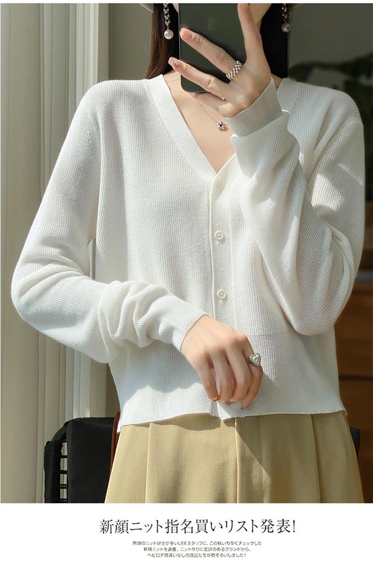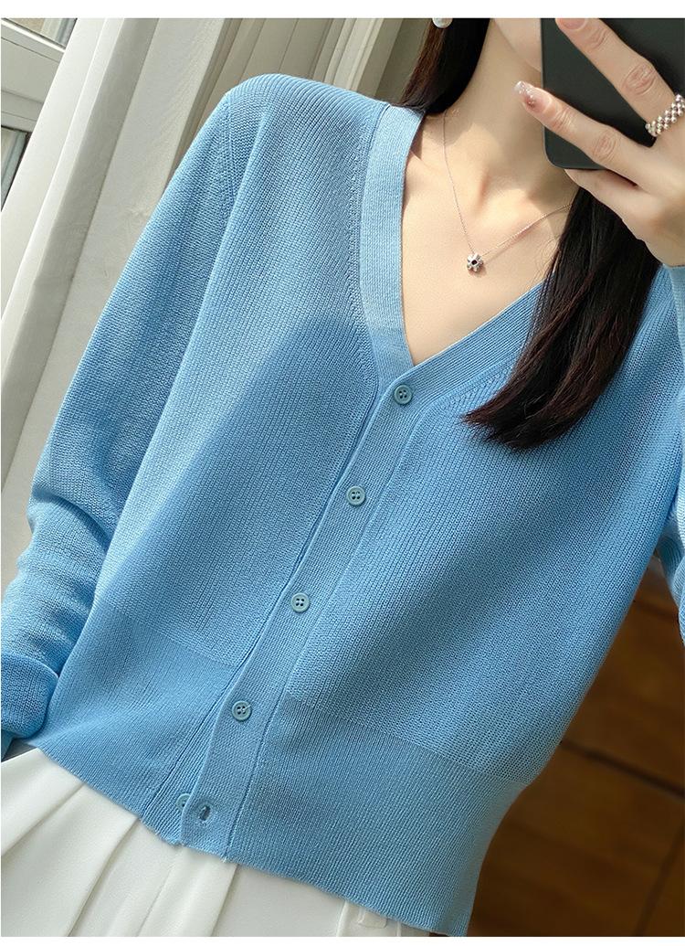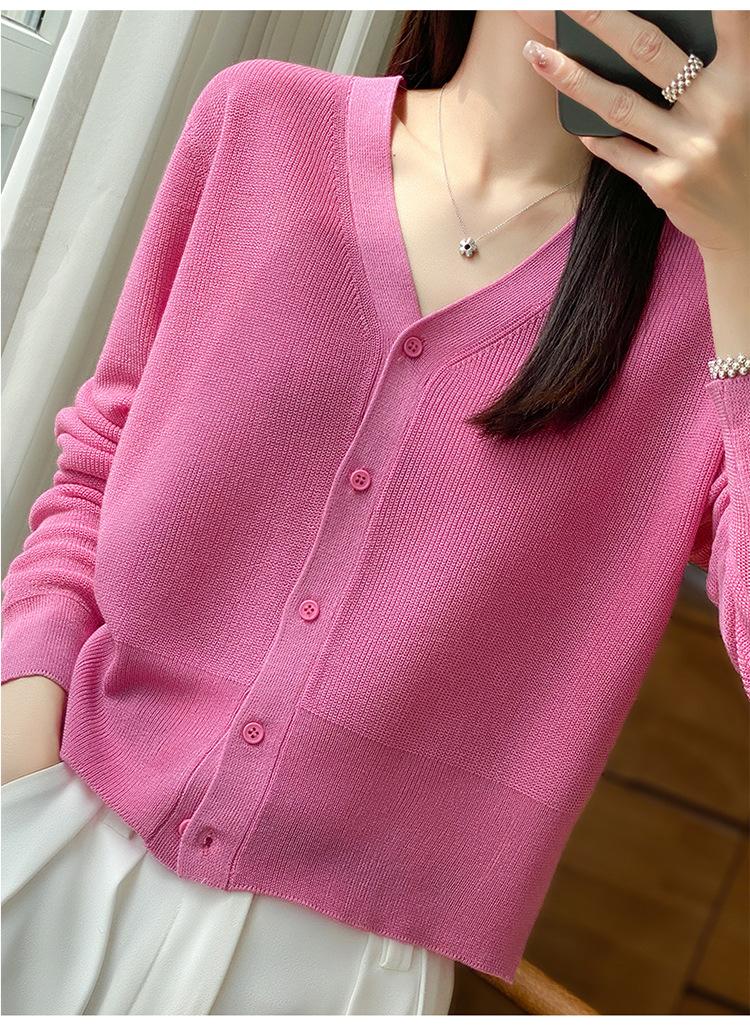 Cárdigan de punto fino de primavera y verano con cuello en V, manga larga, suelto, de seda helada, con aire acondicionado, protector solar, chaqueta holgada que combina con todo.