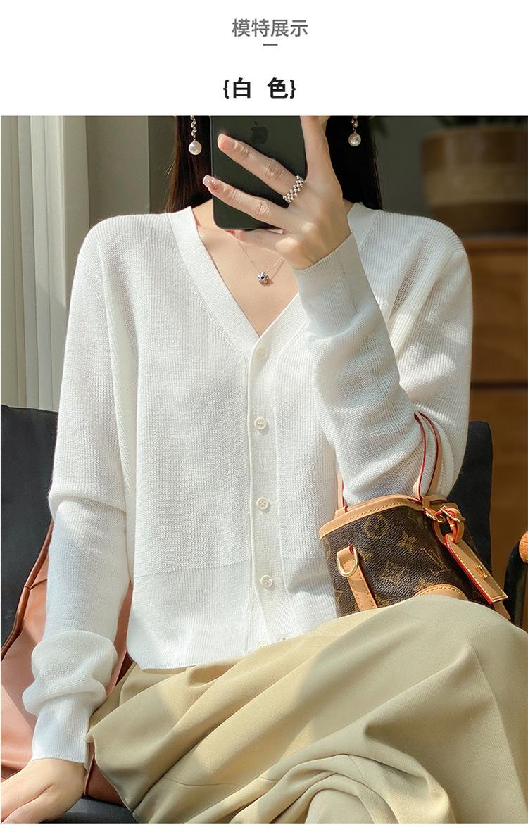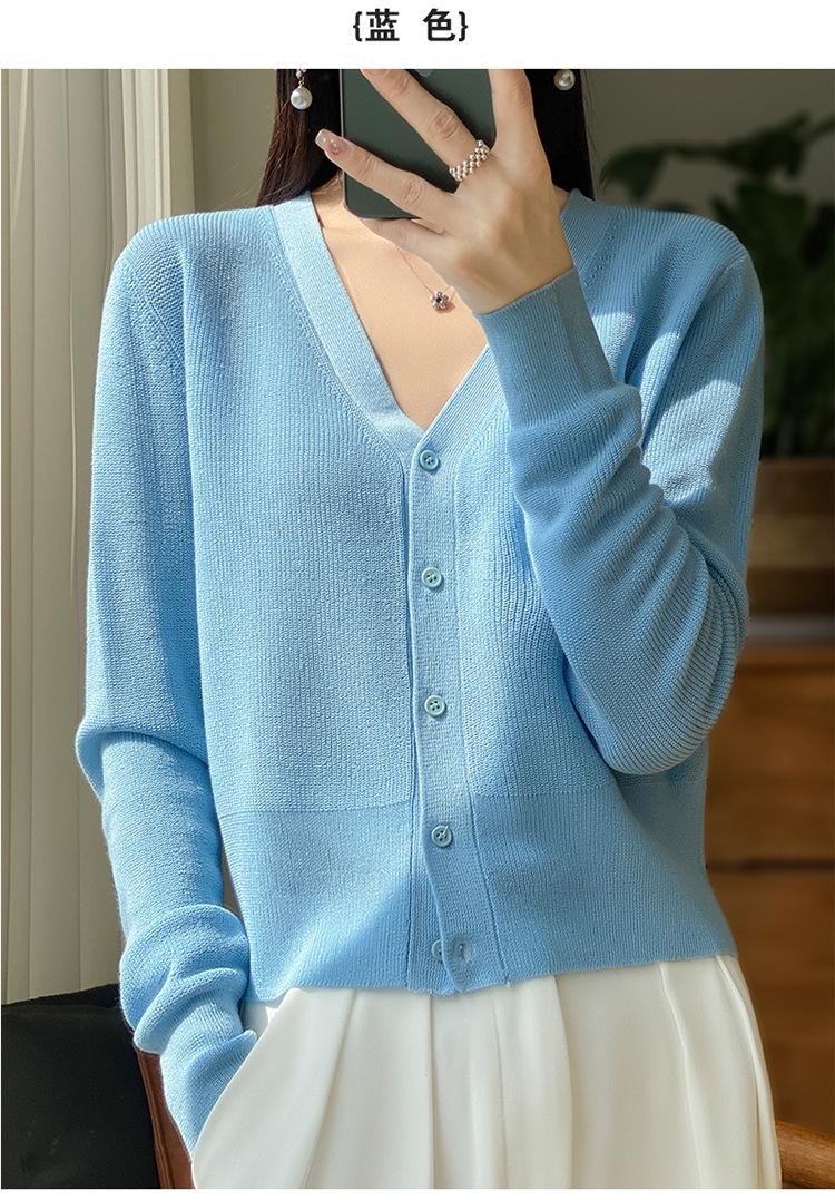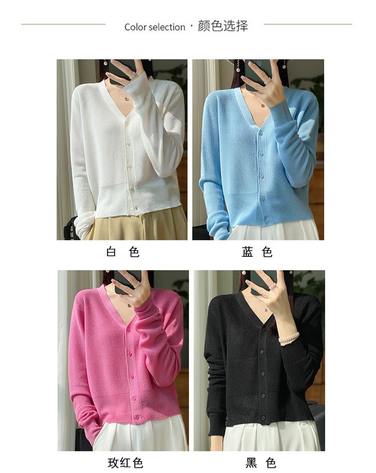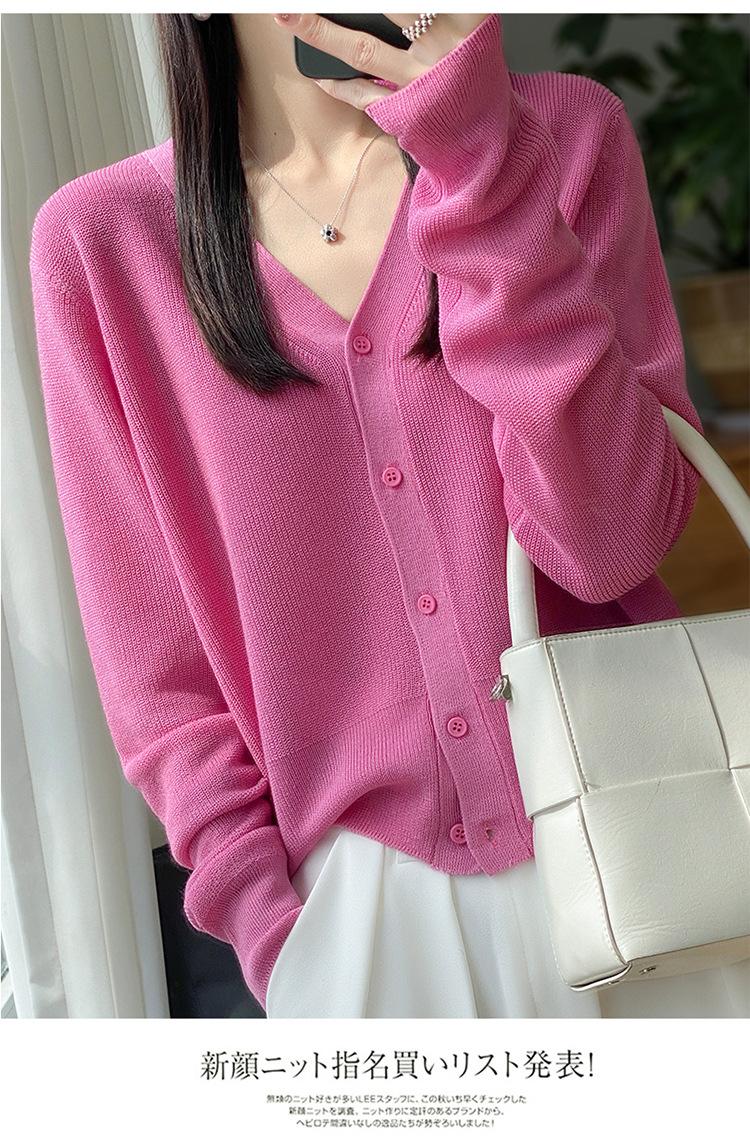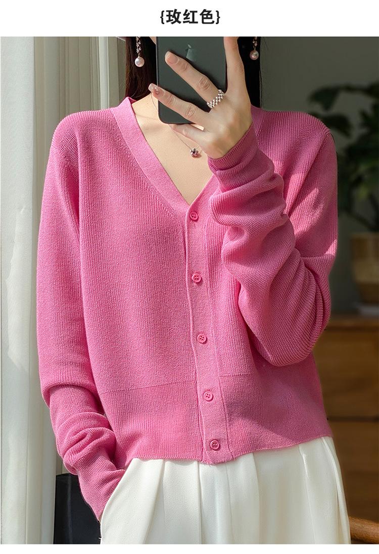 Cárdigan de punto fino de primavera y verano con cuello en V, manga larga, suelto, de seda helada, con aire acondicionado, protector solar, chaqueta holgada que combina con todo.