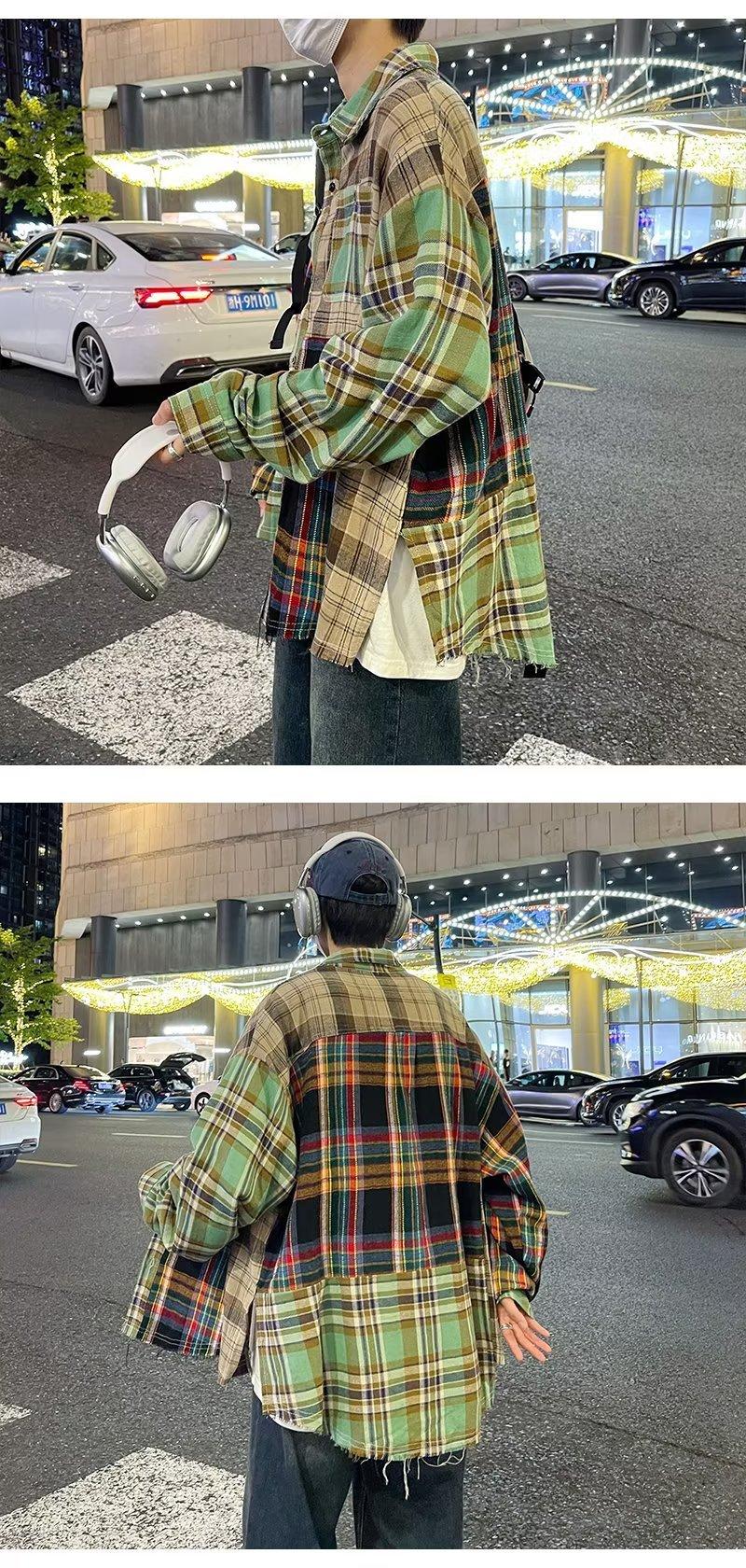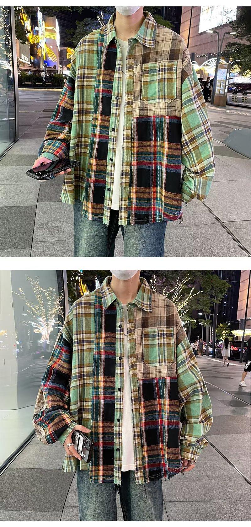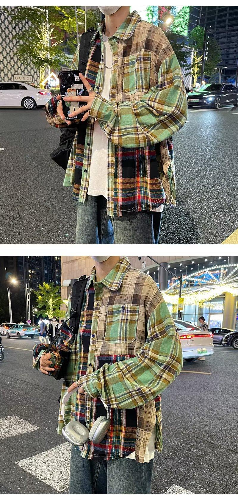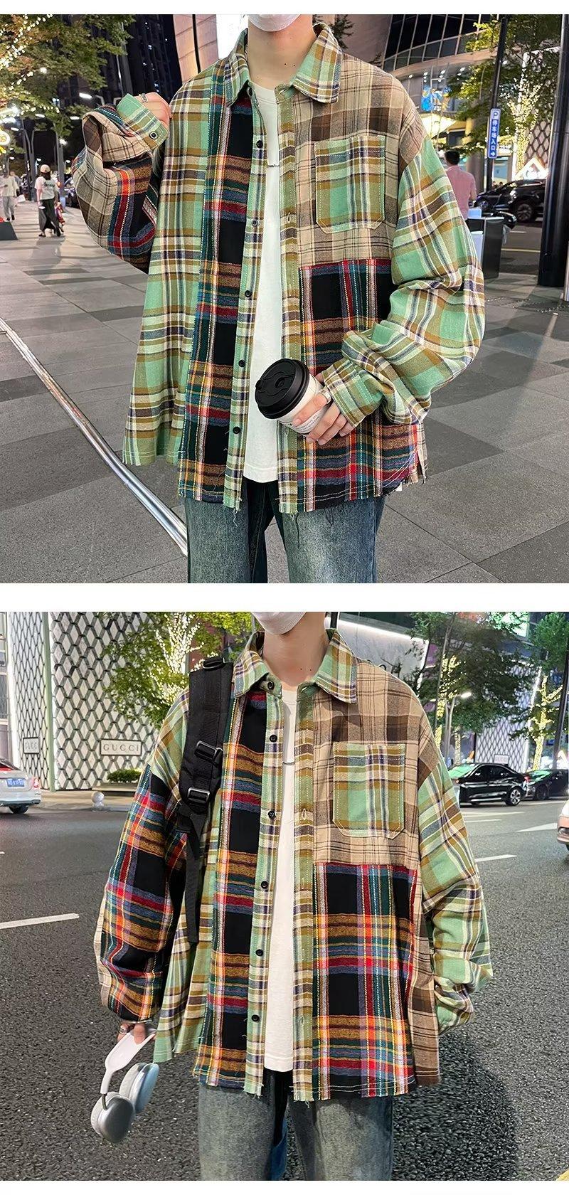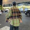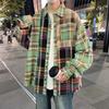 Camisa de manga larga a cuadros con colores a juego para hombre y mujer, estilo urbano americano, diseño de nicho de primavera y otoño, camisa informal holgada, abrigo de moda