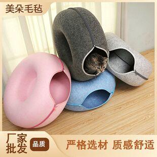 Los fabricantes suministran túnel para gatos de dona de fieltro cuatro estaciones Nido para gatos de fieltro universal Nido desmontable para mascotas gato