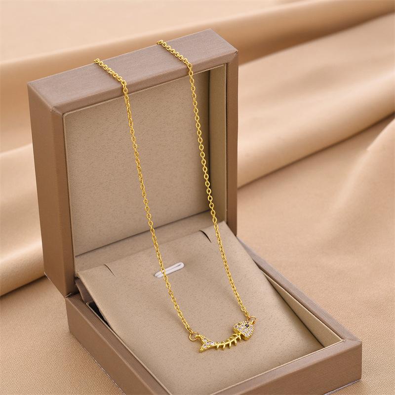 Collar de Acero de Titanio con Colgante de Espiga de Pescado Transfronterizo para Mujer, Diseño de Nicho de Celebridad de Internet de Moda, Elegante Cadena de Clavícula de Acero de Titanio